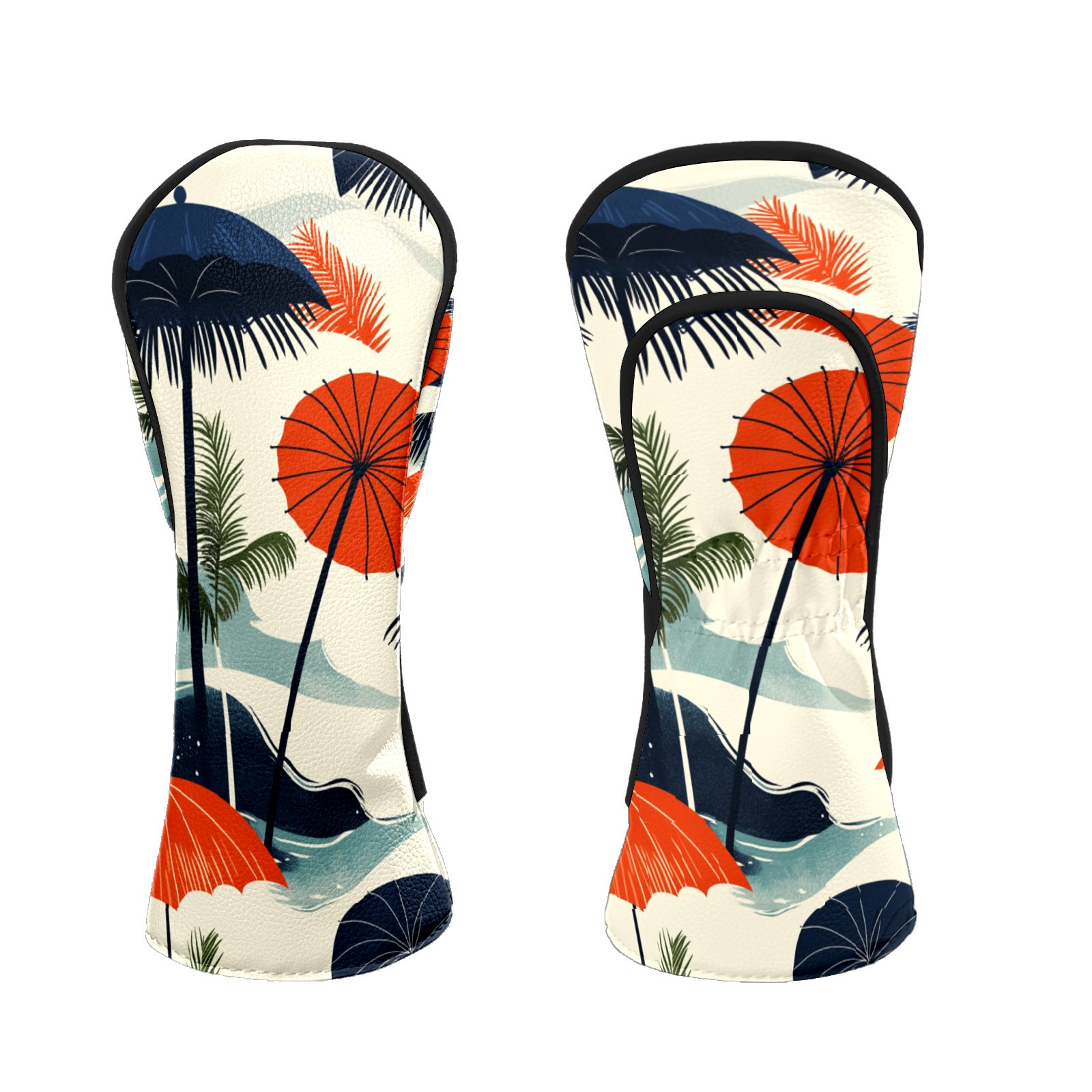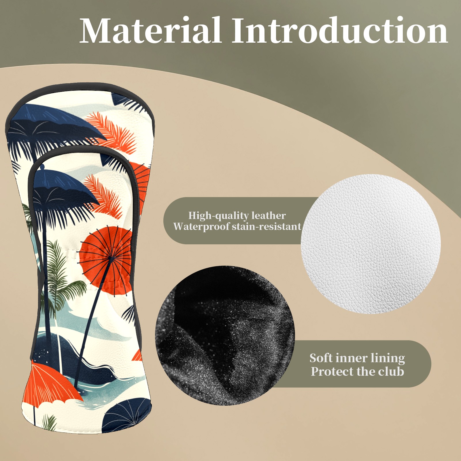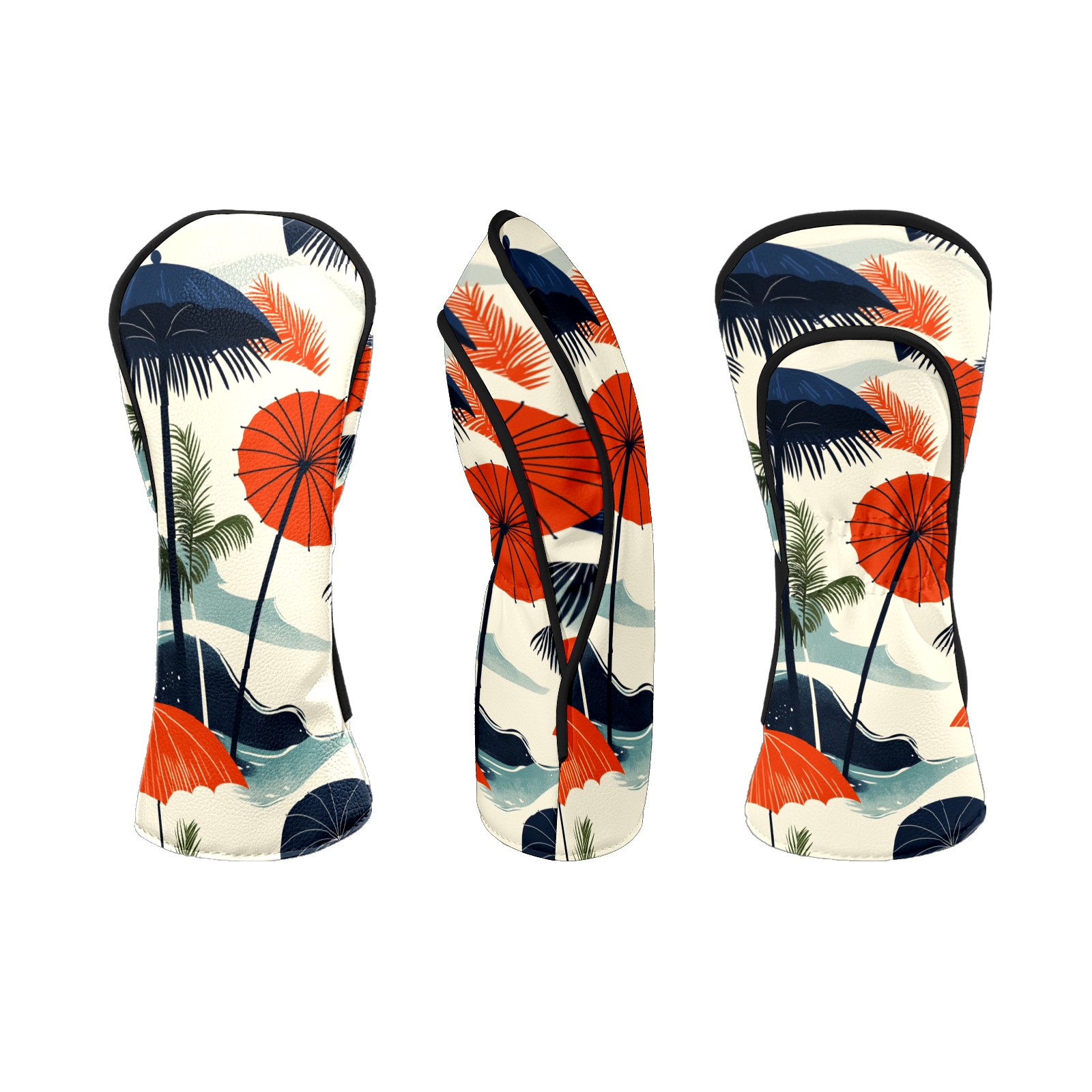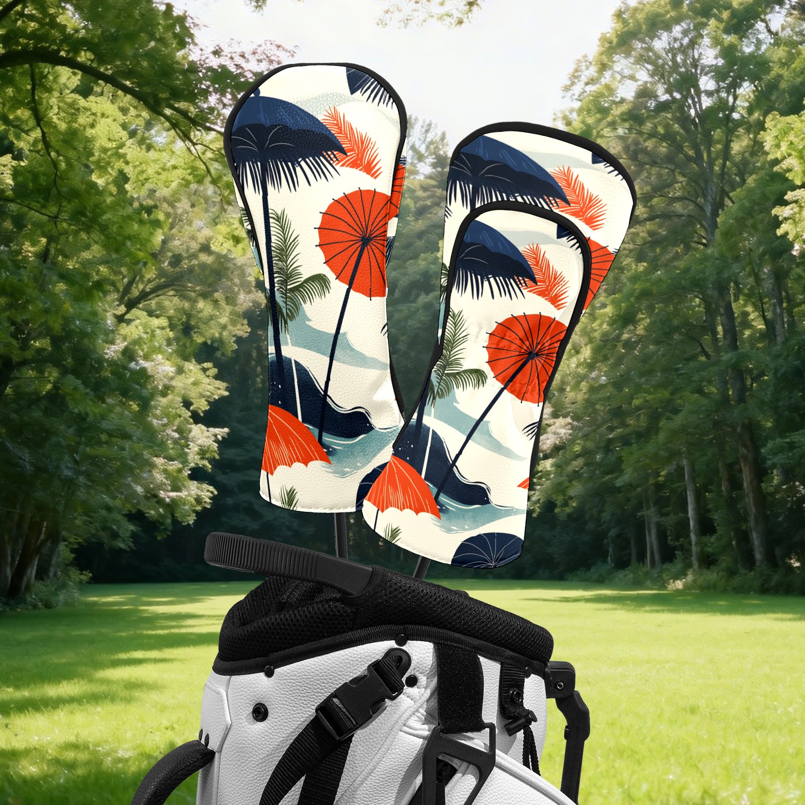 Golf Head Covers Fit Driver Headcover, Fairway Wood, and Hybrid Covers for Beach Umbrella Pattern Design, Waterproof PU Leather, Classic Golf Gift & Accessories for Golfers