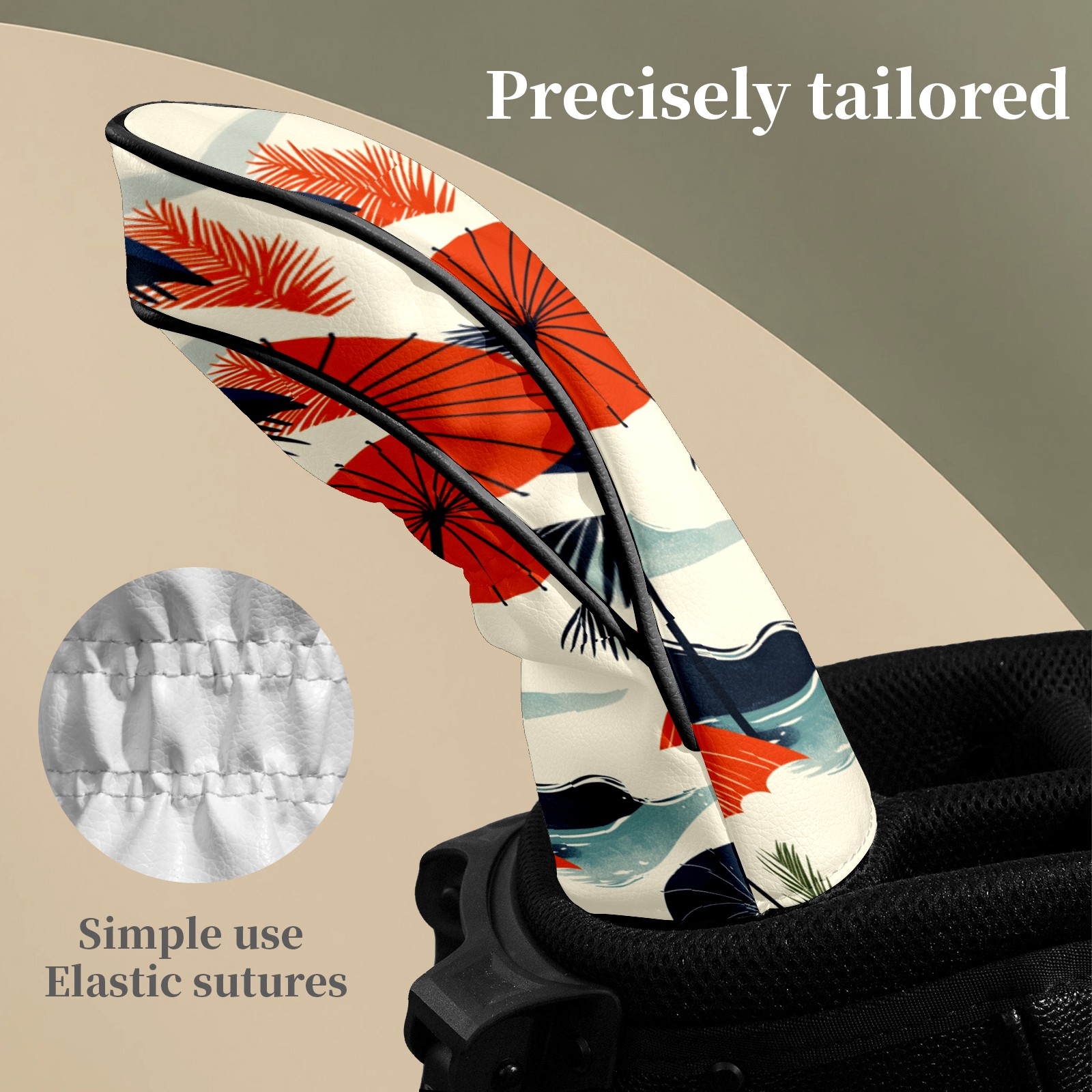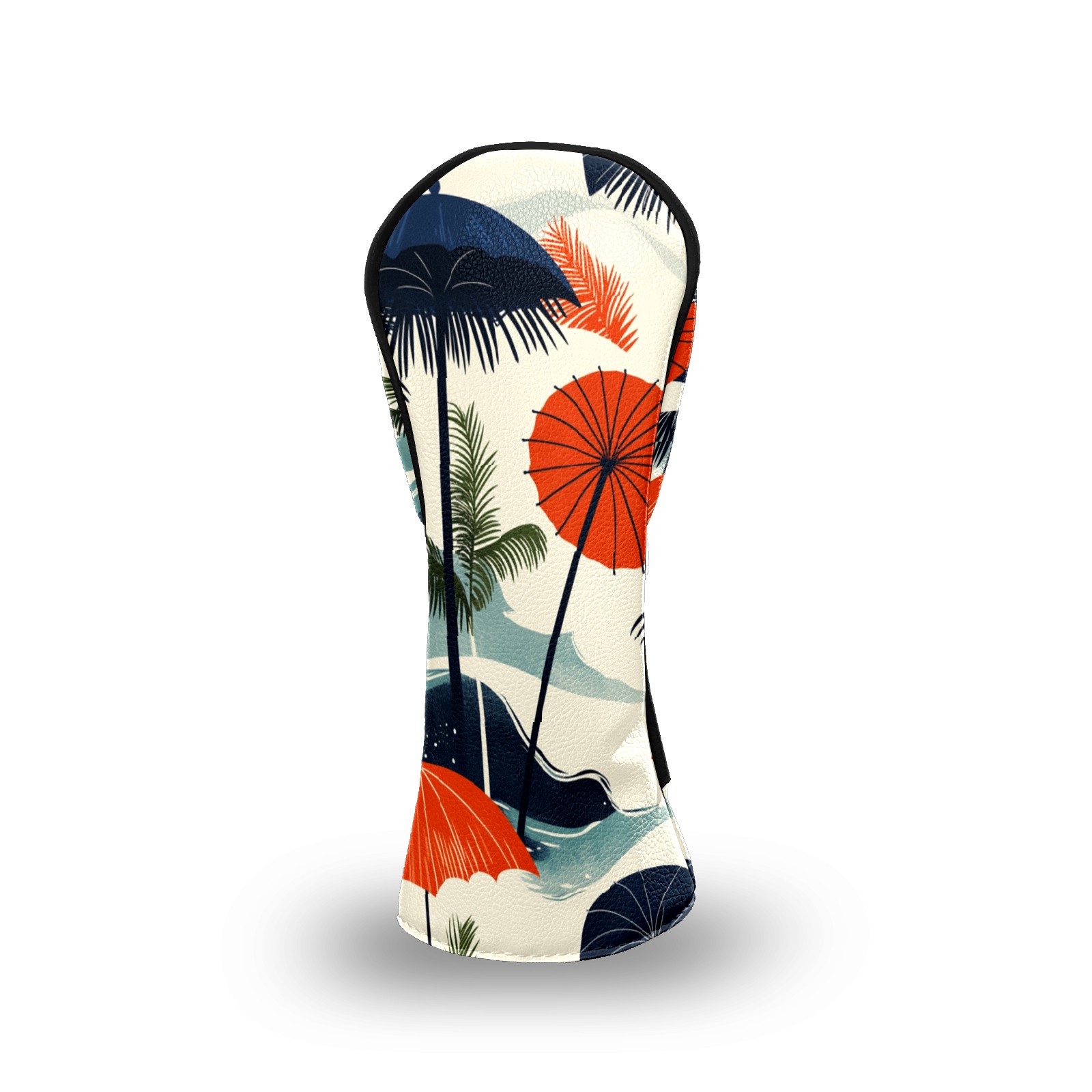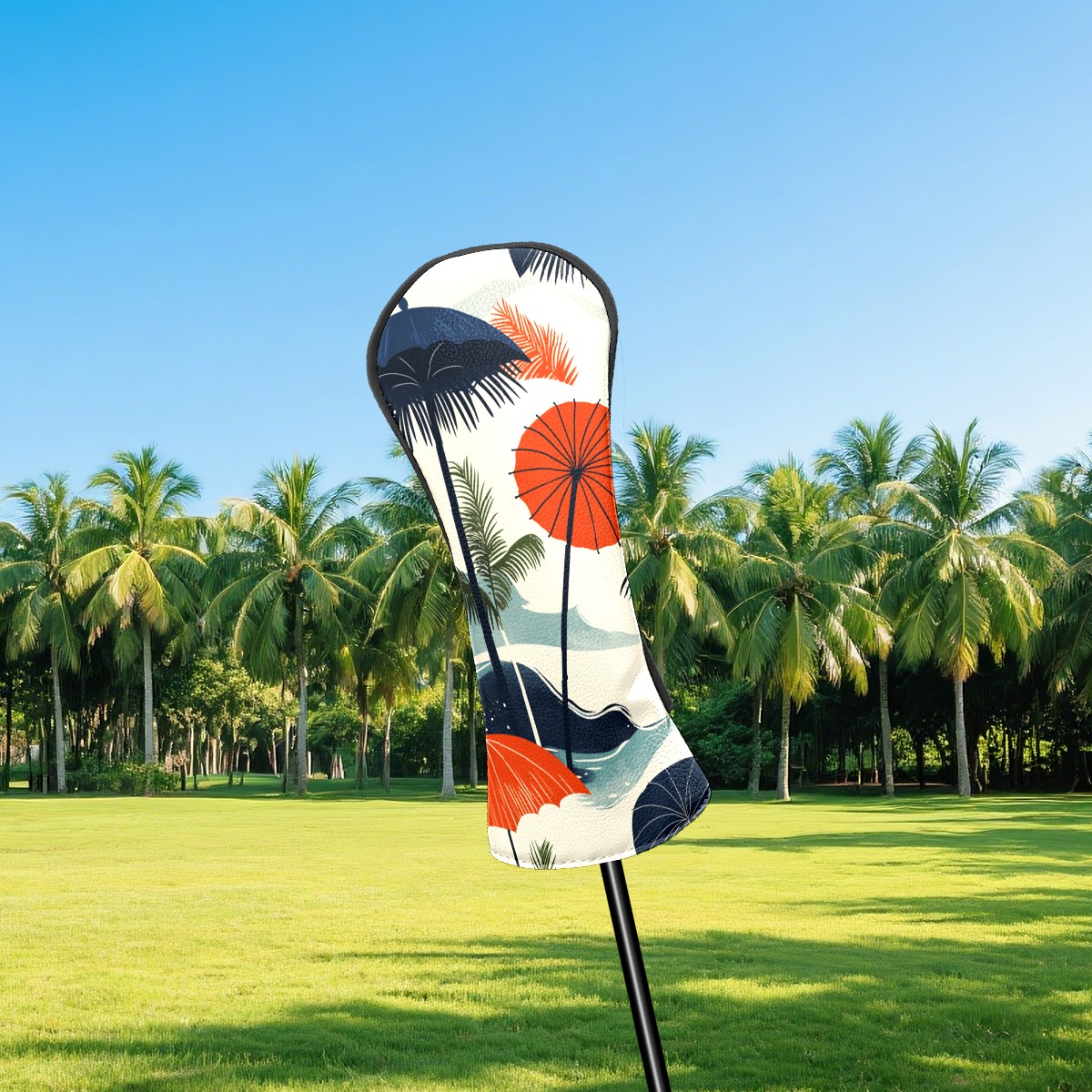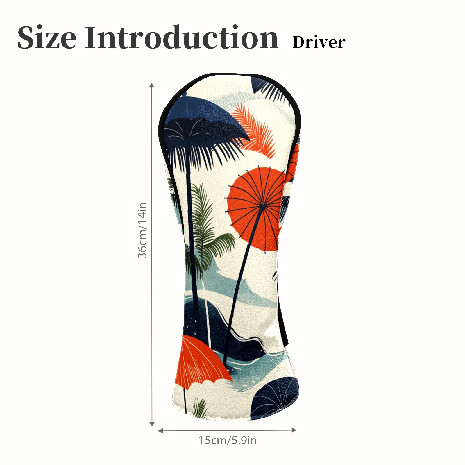 Golf Head Covers Fit Driver Headcover, Fairway Wood, and Hybrid Covers for Beach Umbrella Pattern Design, Waterproof PU Leather, Classic Golf Gift & Accessories for Golfers