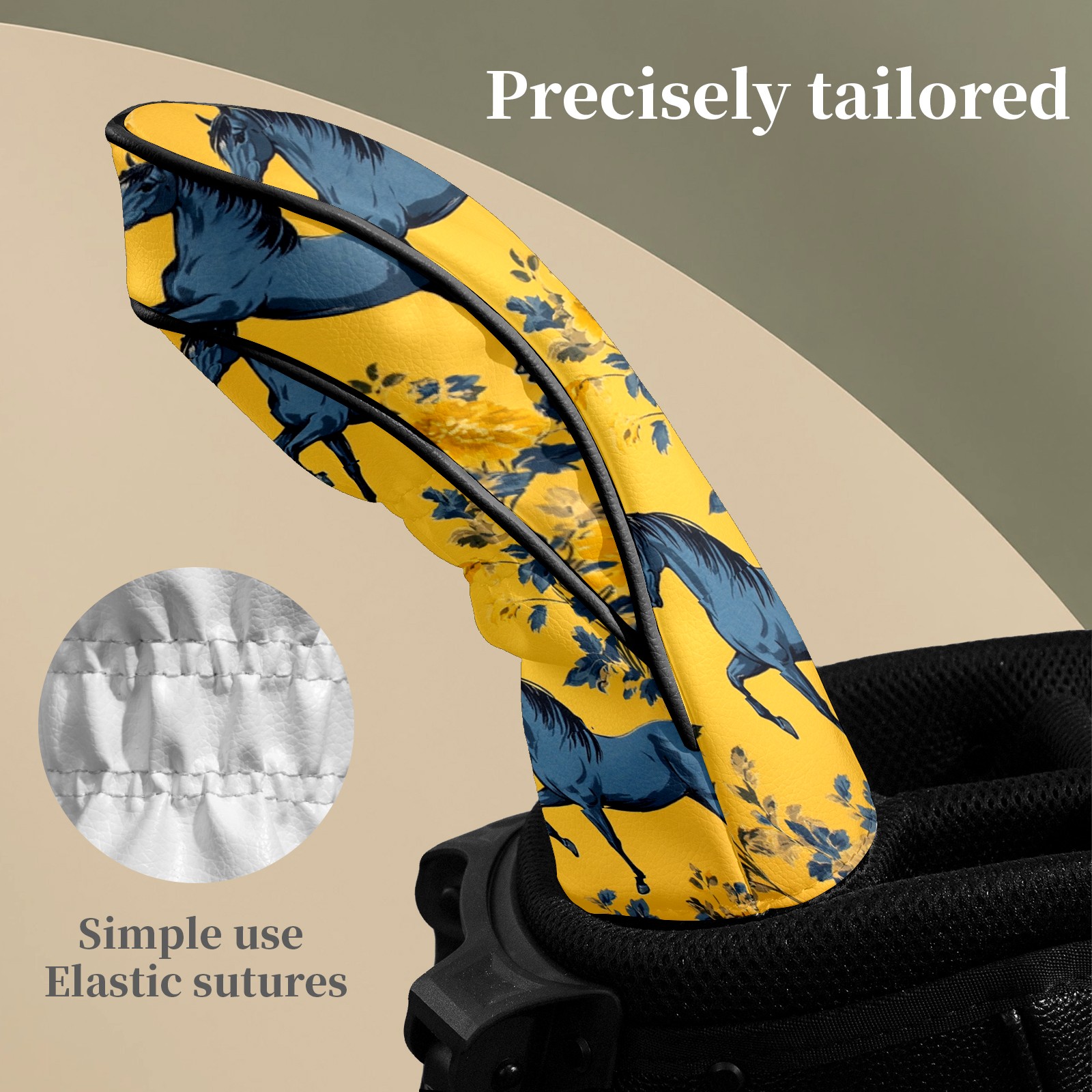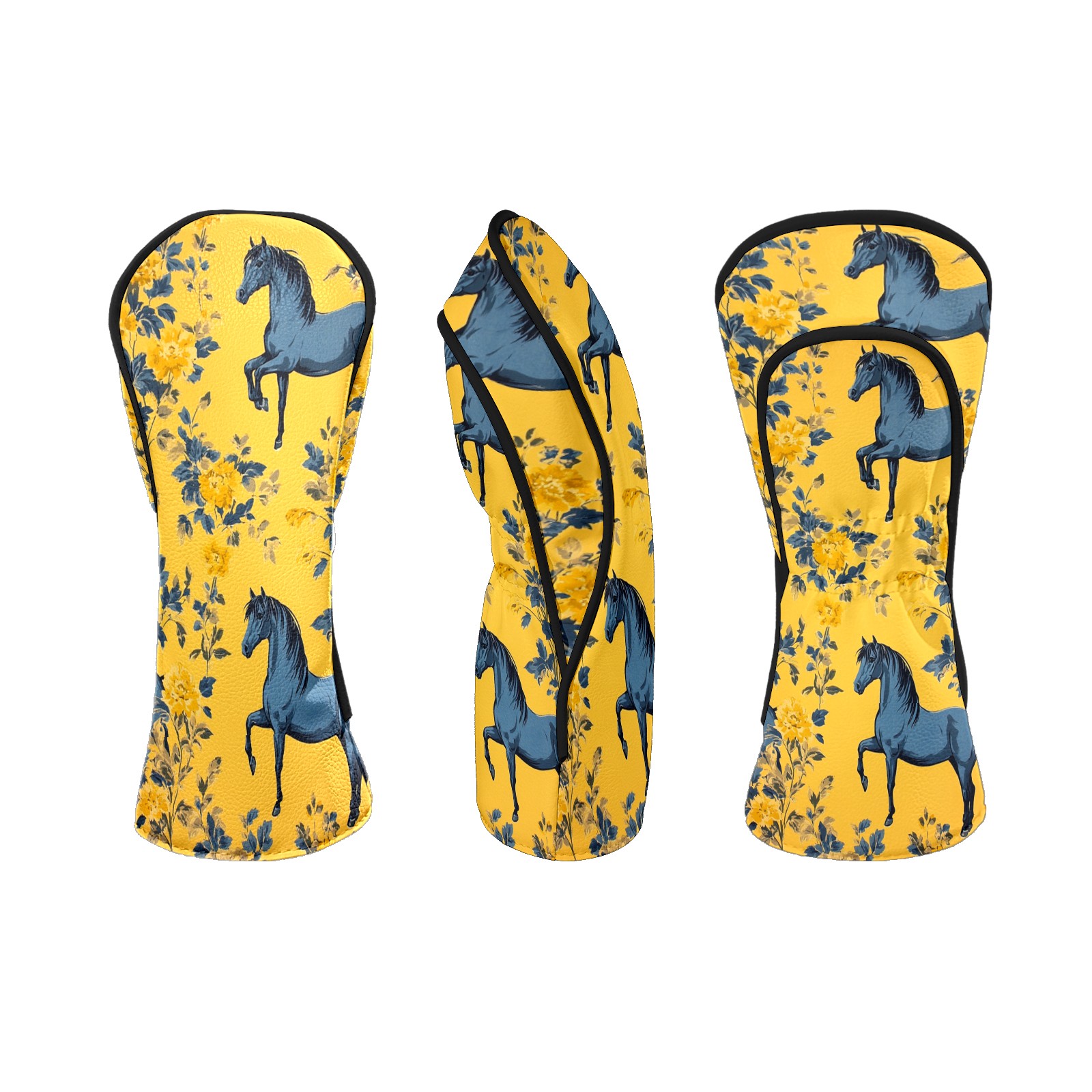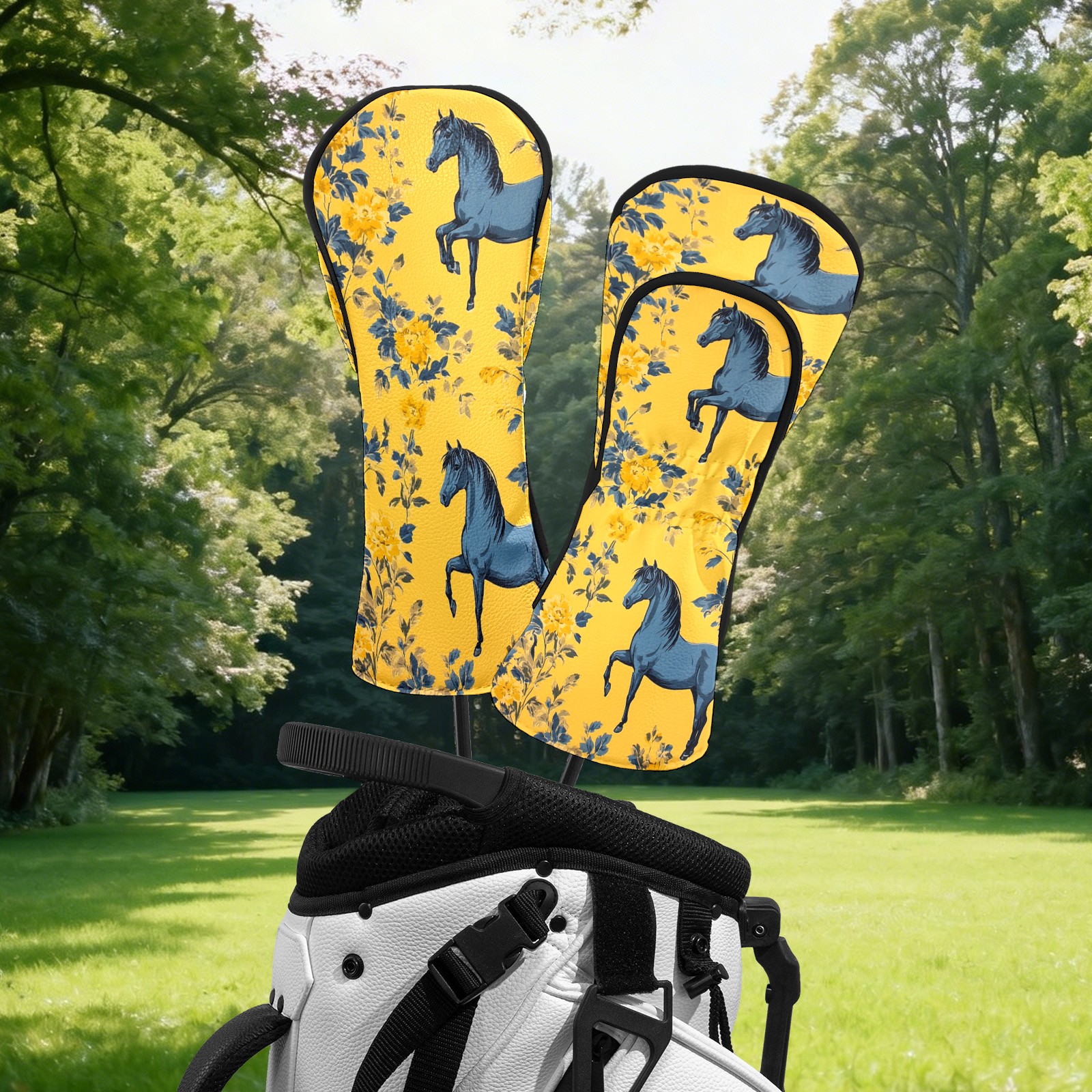 Golf Head Covers Fit Driver Headcover, Fairway Wood, and Hybrid Covers for Mustang Pattern Design, Waterproof PU Leather, Classic Golf Gift & Accessories for Golfers