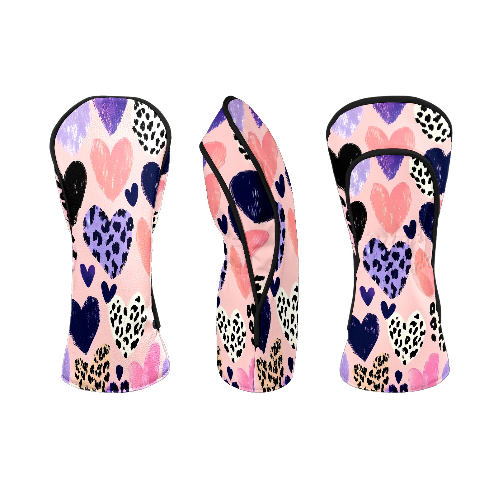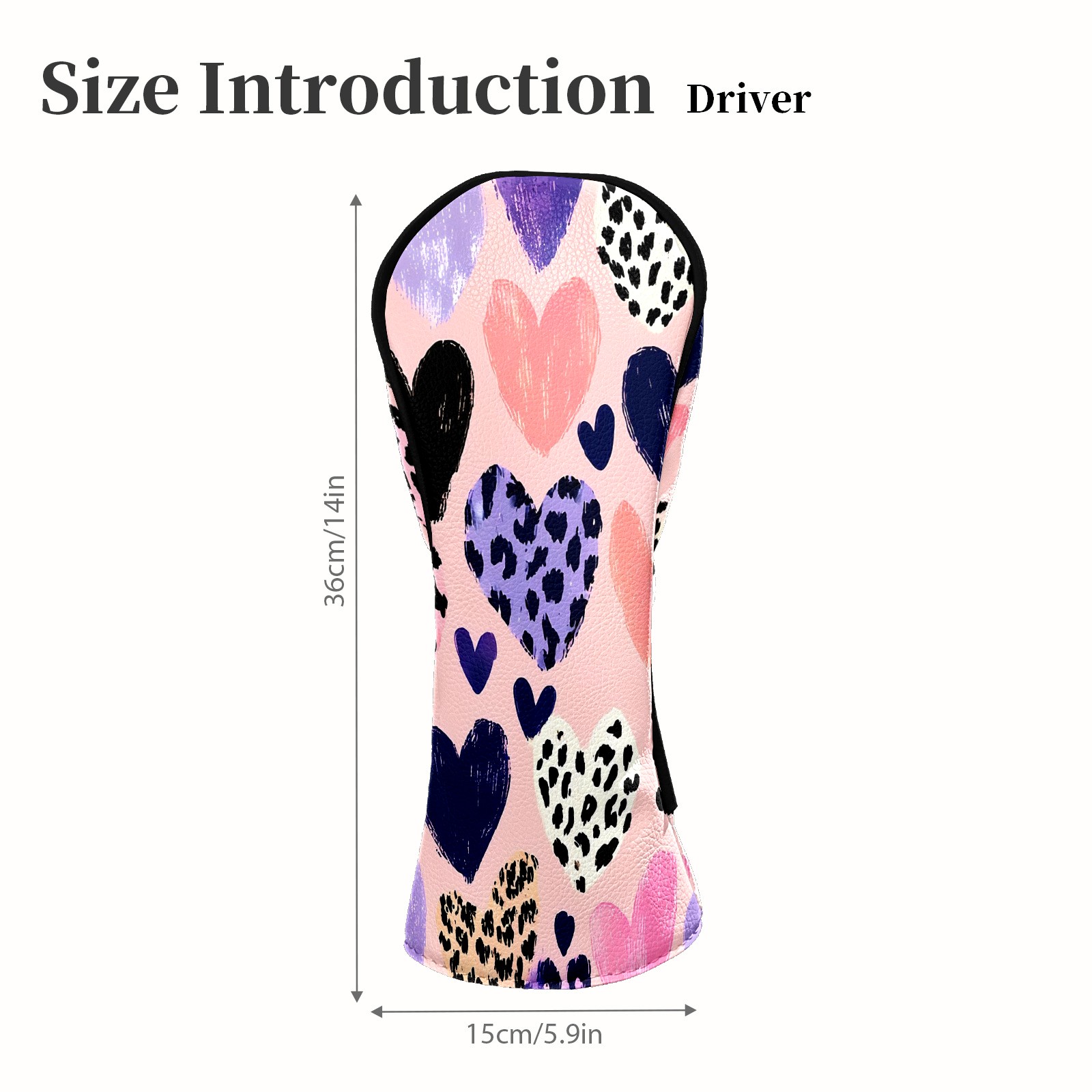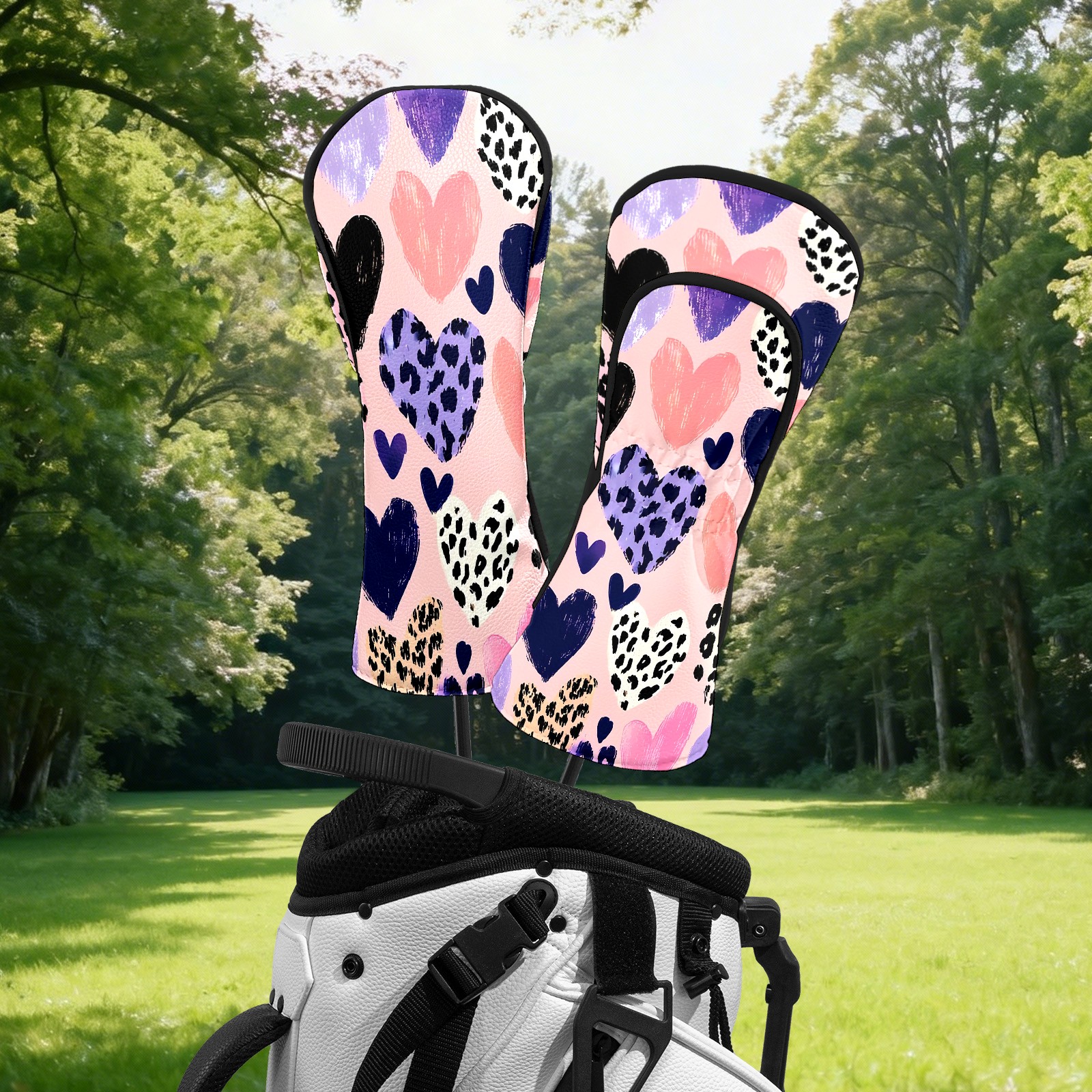Golf Head Covers Fit Driver Headcover, Fairway Wood, and Hybrid Covers for Gentle Heart Pink Design, Waterproof PU Leather, Classic Golf Gift & Accessories for Golfers