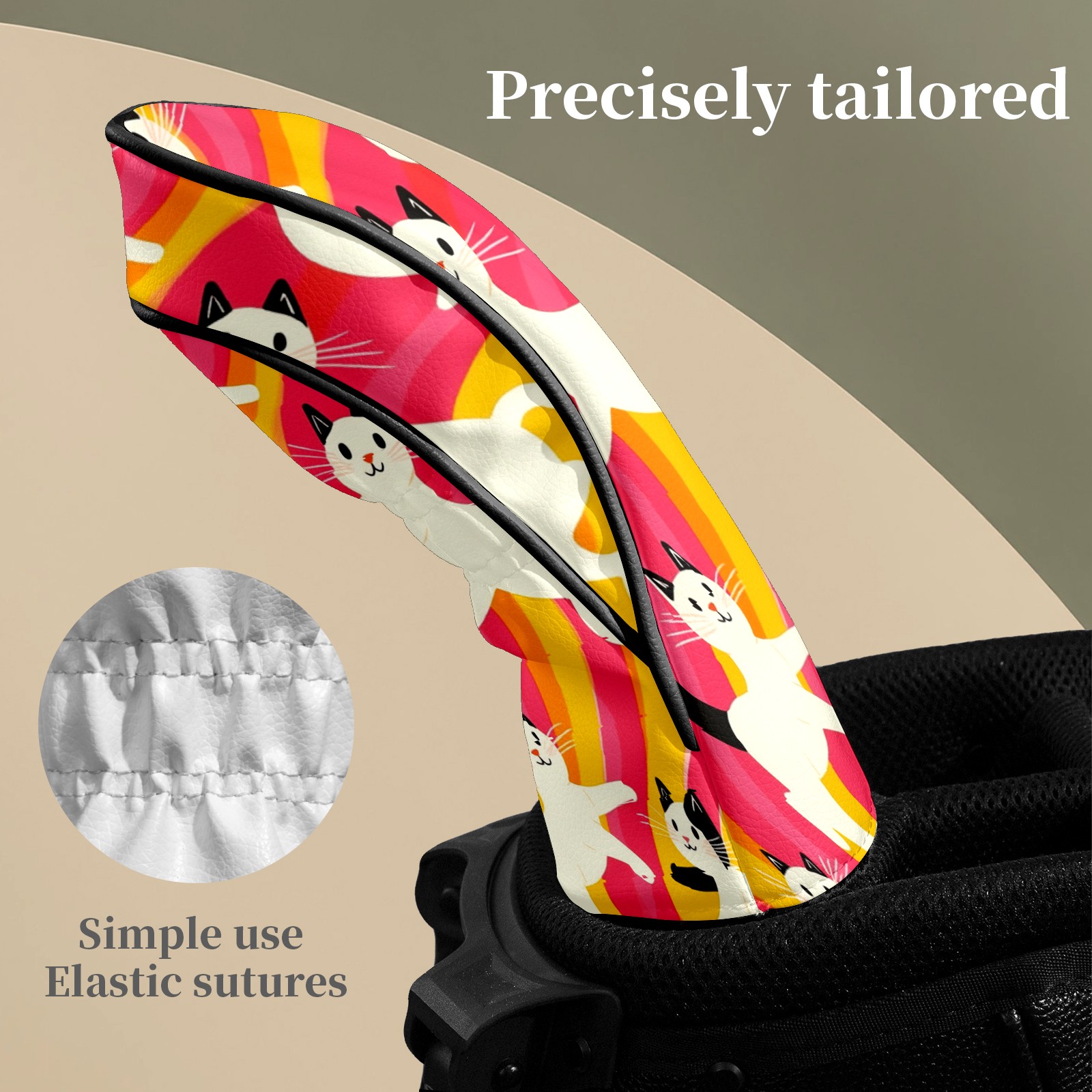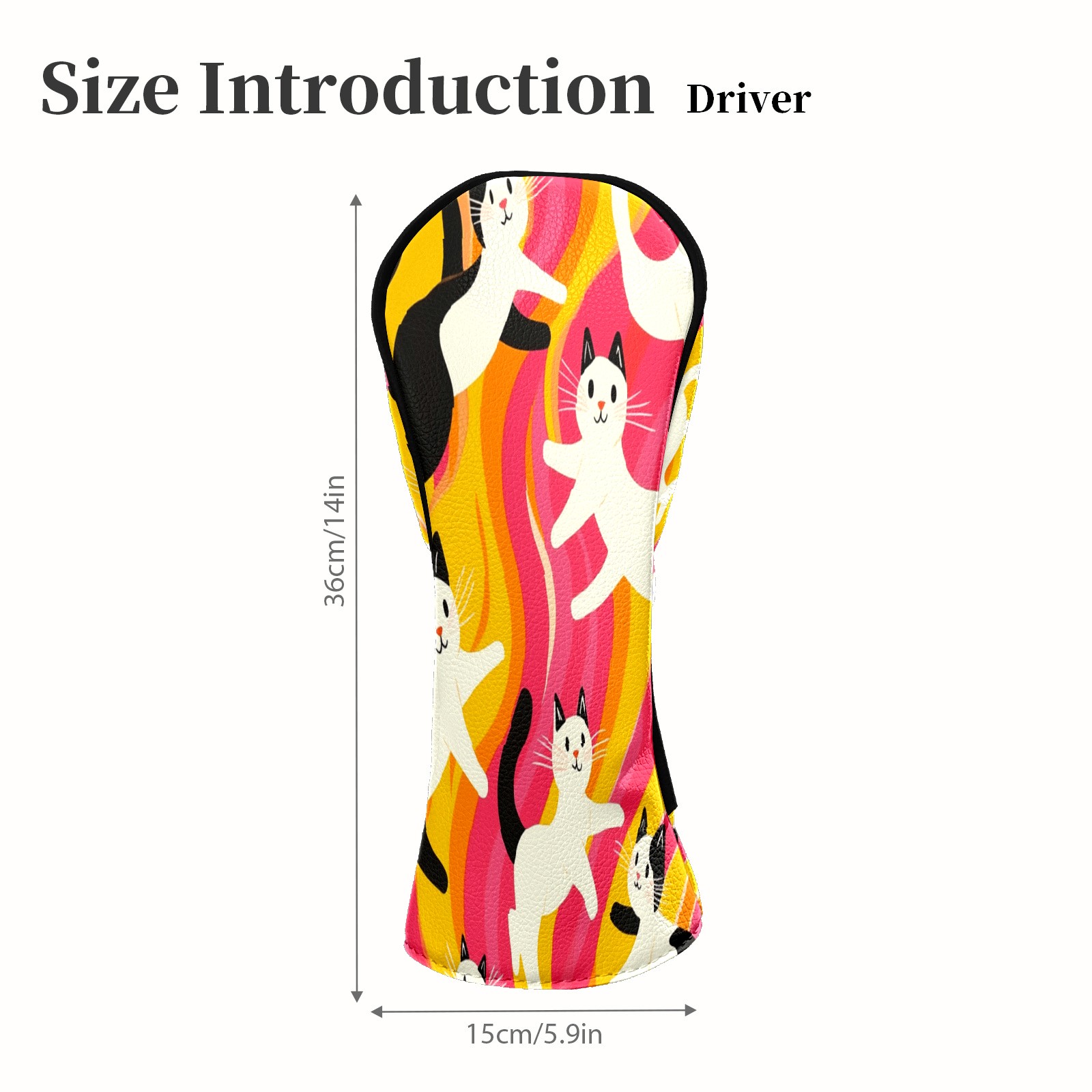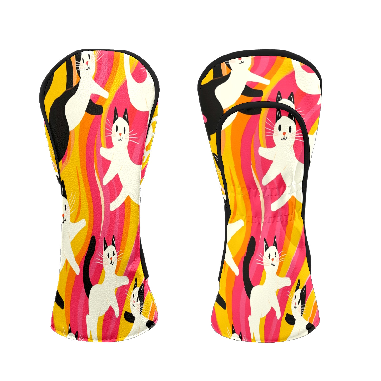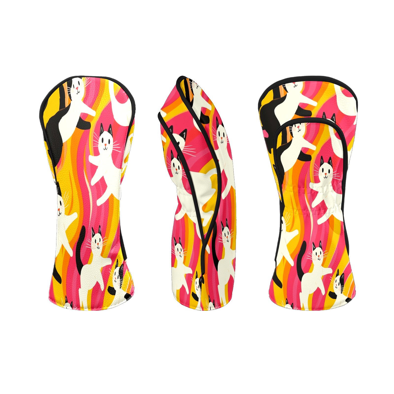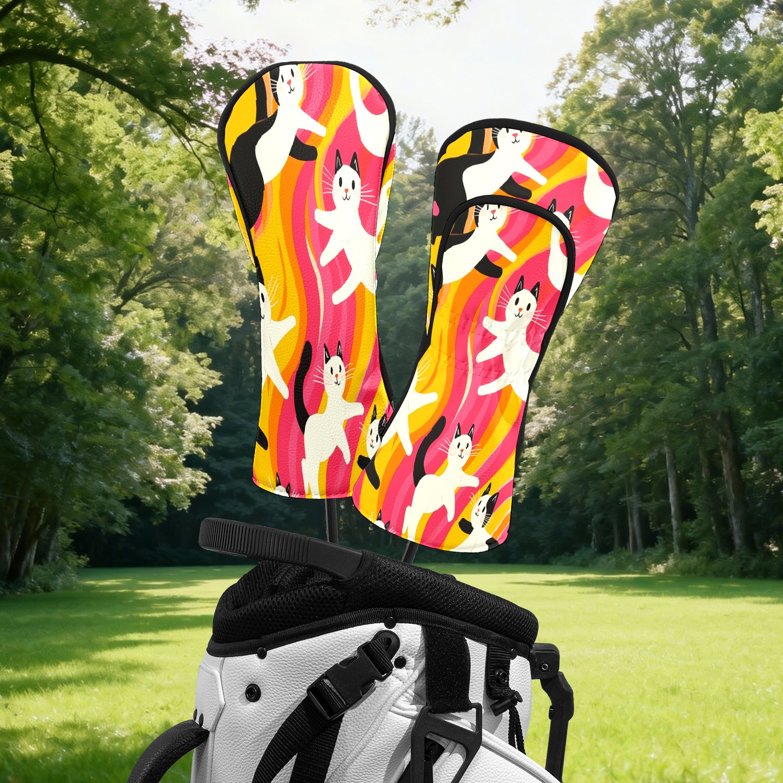 Golf Head Covers Fit Driver Headcover, Fairway Wood, and Hybrid Covers for Black and White Cat Design, Waterproof PU Leather, Classic Golf Gift & Accessories for Golfers