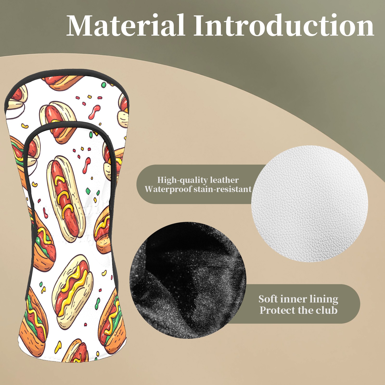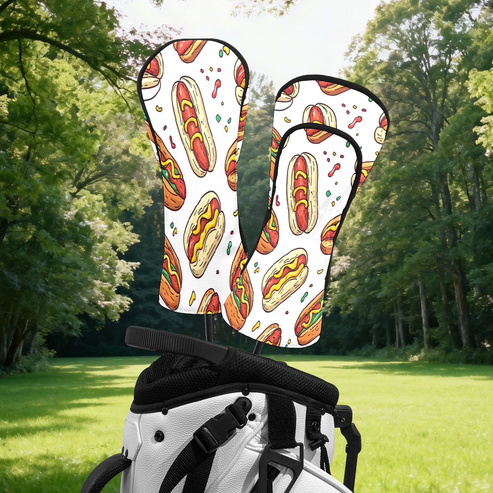 Golf Head Covers Fit Driver Headcover, Fairway Wood, and Hybrid Covers for Hot Dog Design, Waterproof PU Leather, Classic Golf Gift & Accessories for Golfers