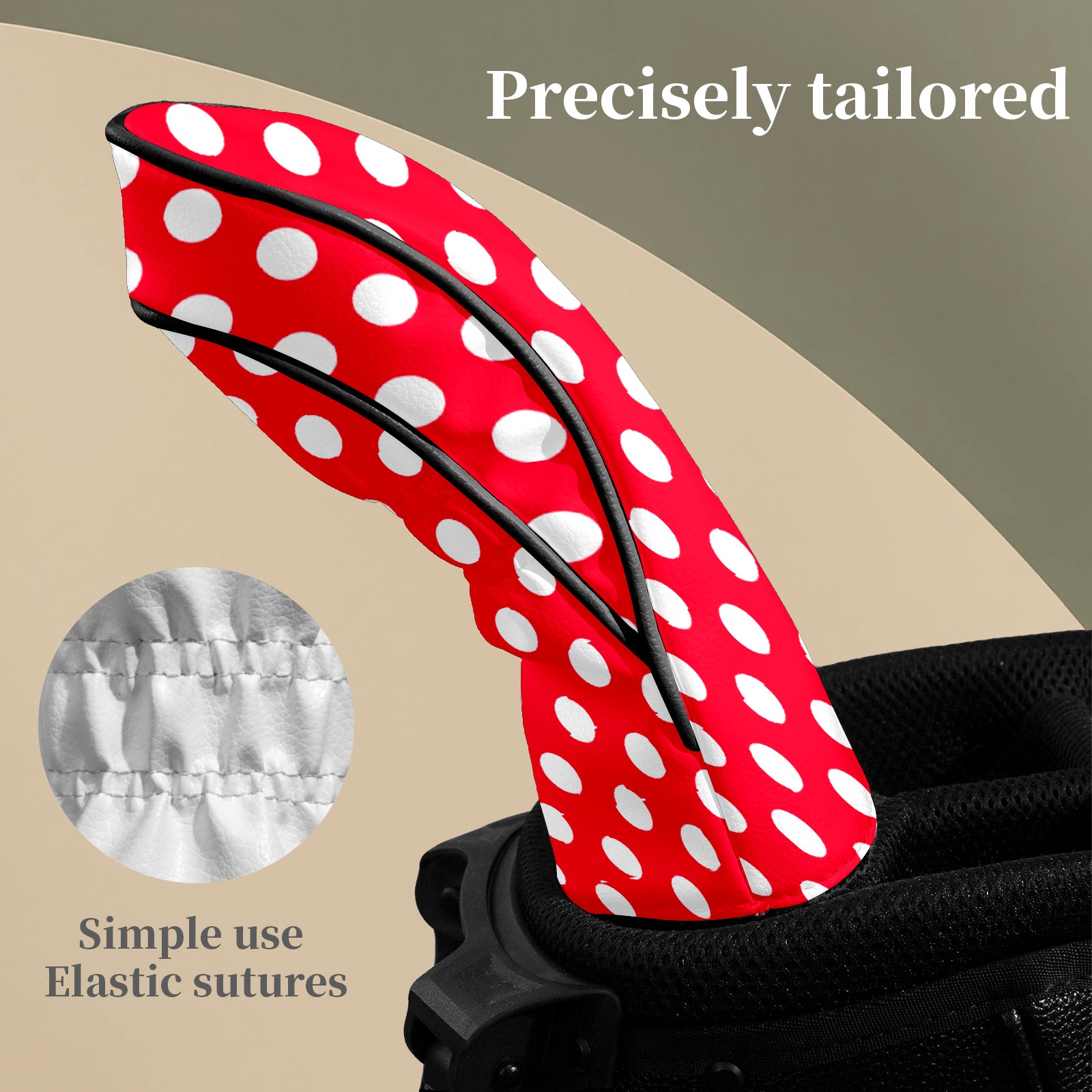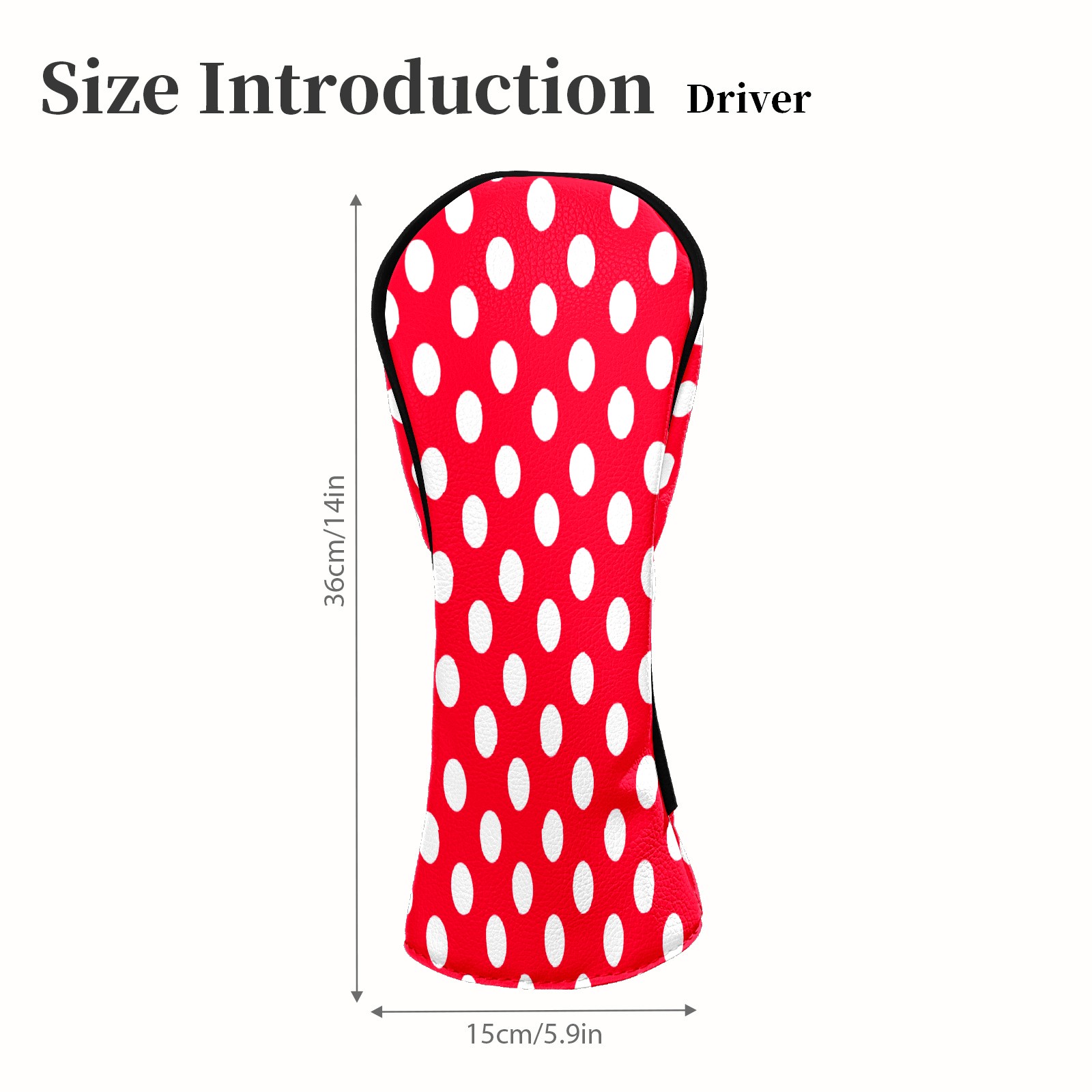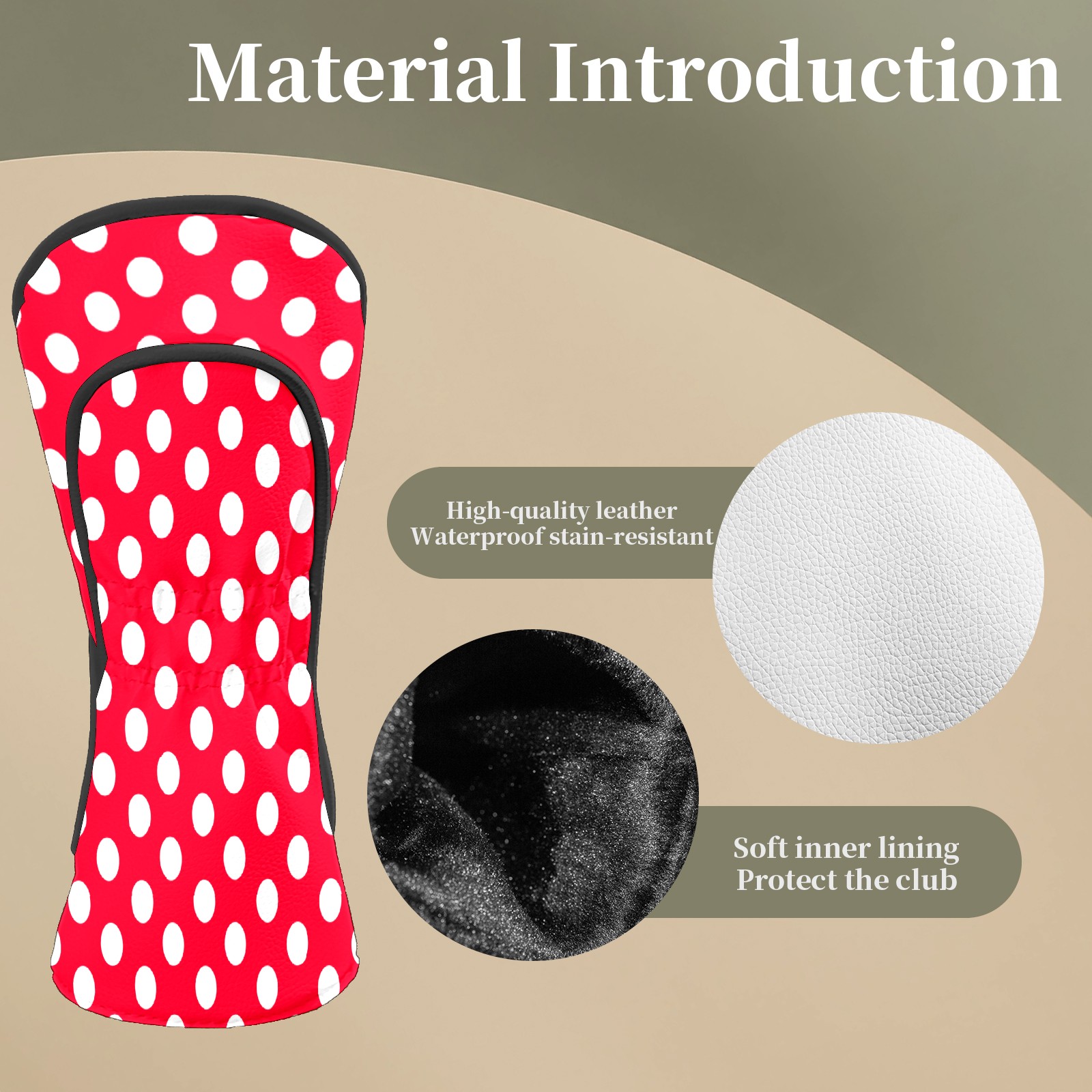 Golf Head Covers Fit Driver Headcover, Fairway Wood, and Hybrid Covers for Modern Red White Polka Dot Design, Waterproof PU Leather, Classic Golf Gift & Accessories for Golfers
