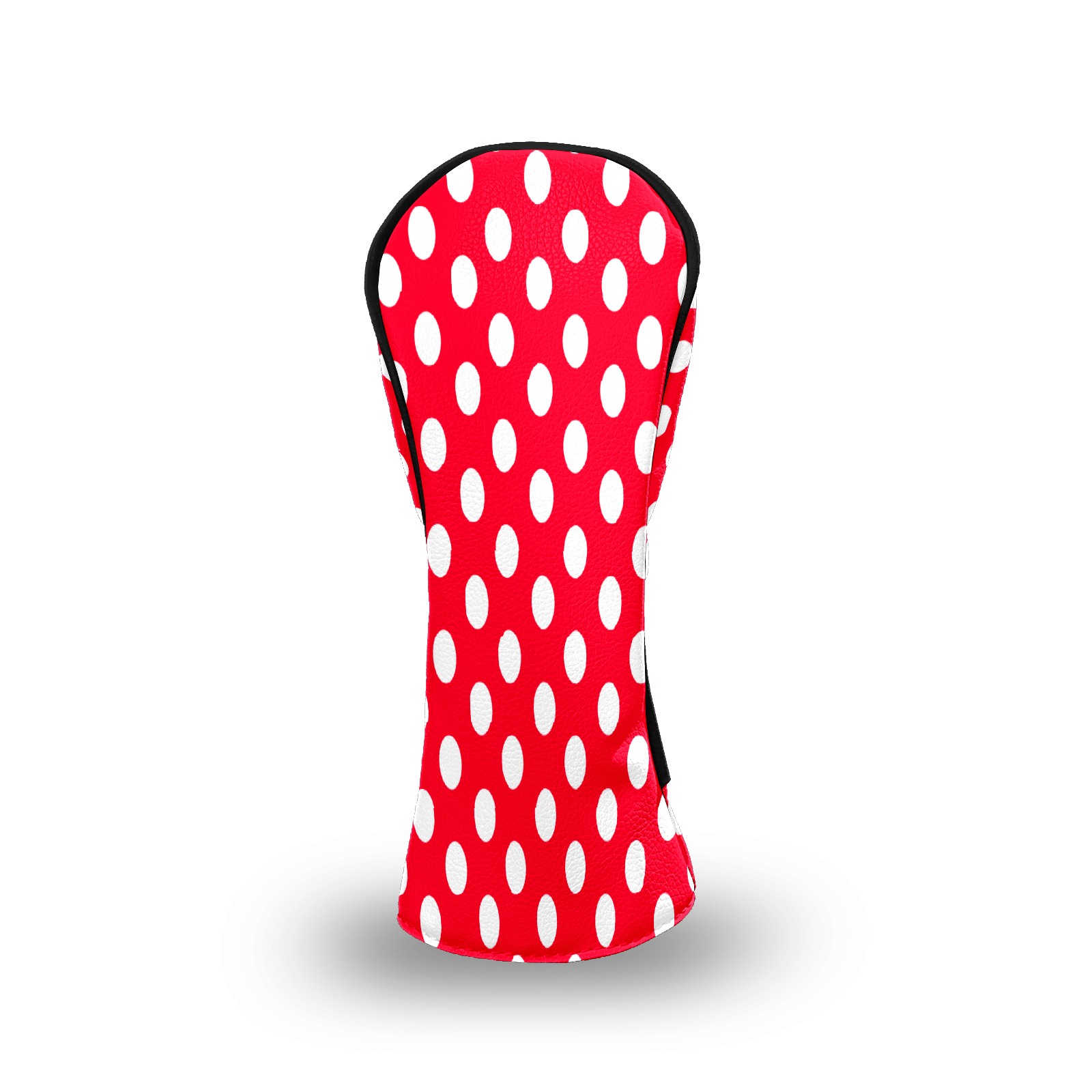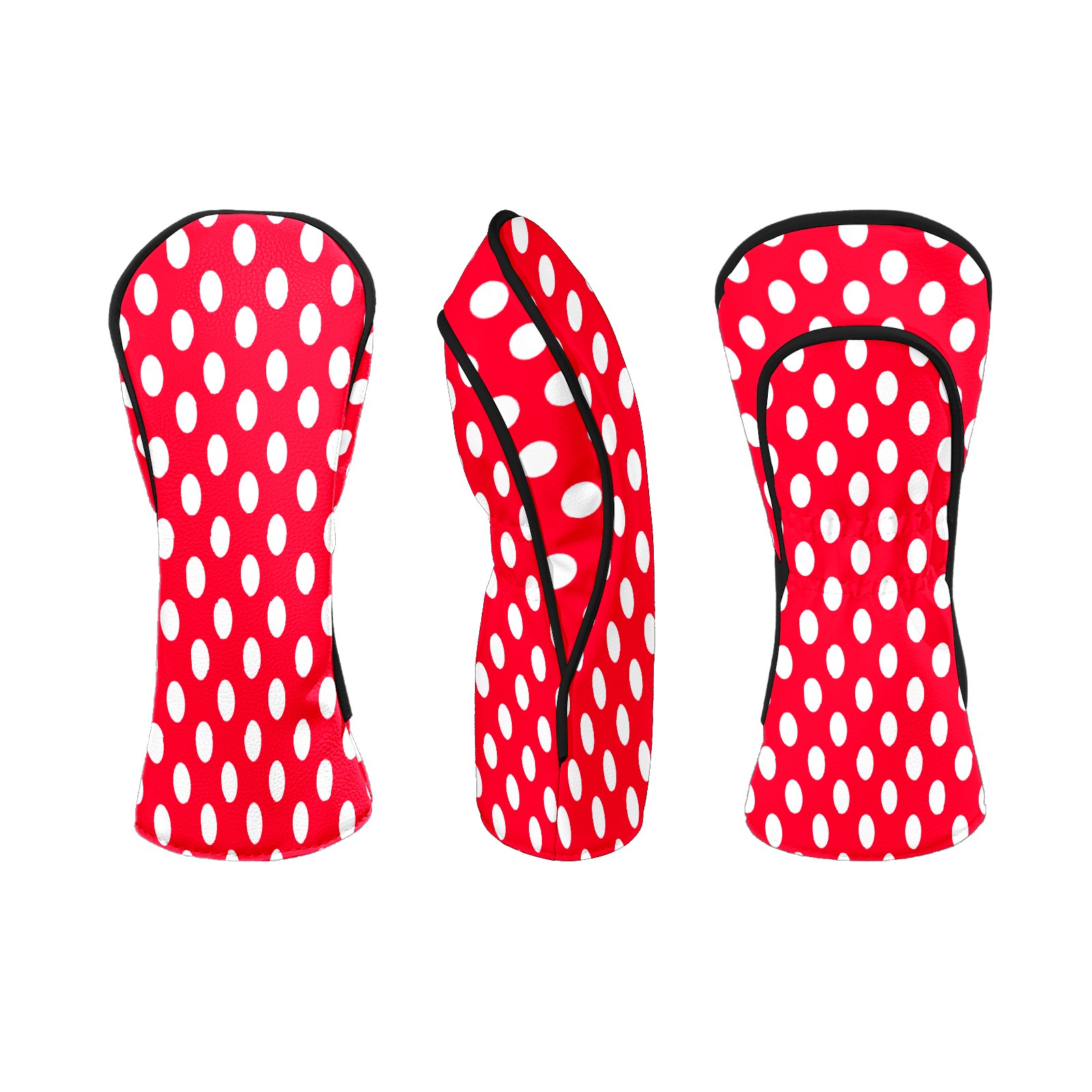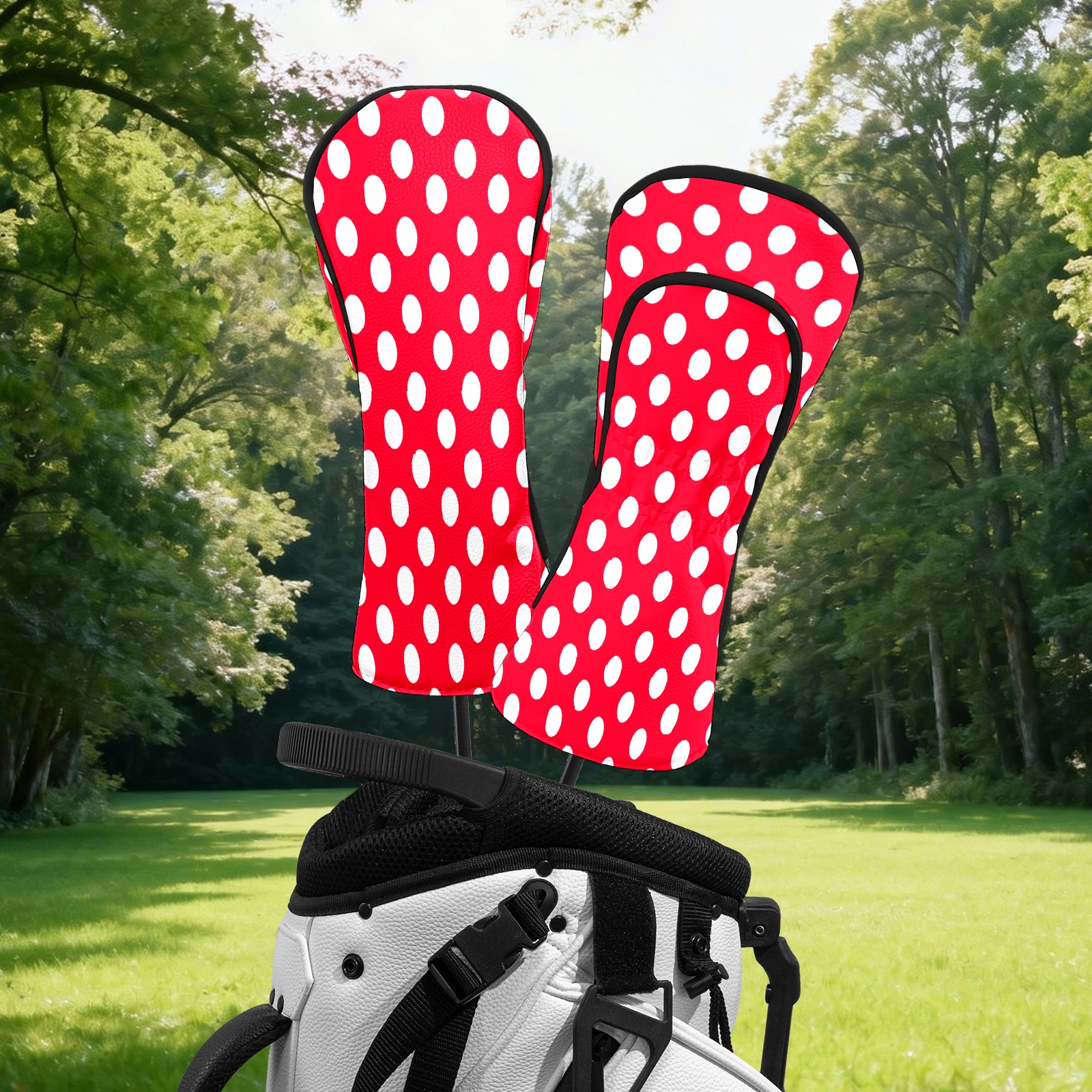 Golf Head Covers Fit Driver Headcover, Fairway Wood, and Hybrid Covers for Modern Red White Polka Dot Design, Waterproof PU Leather, Classic Golf Gift & Accessories for Golfers