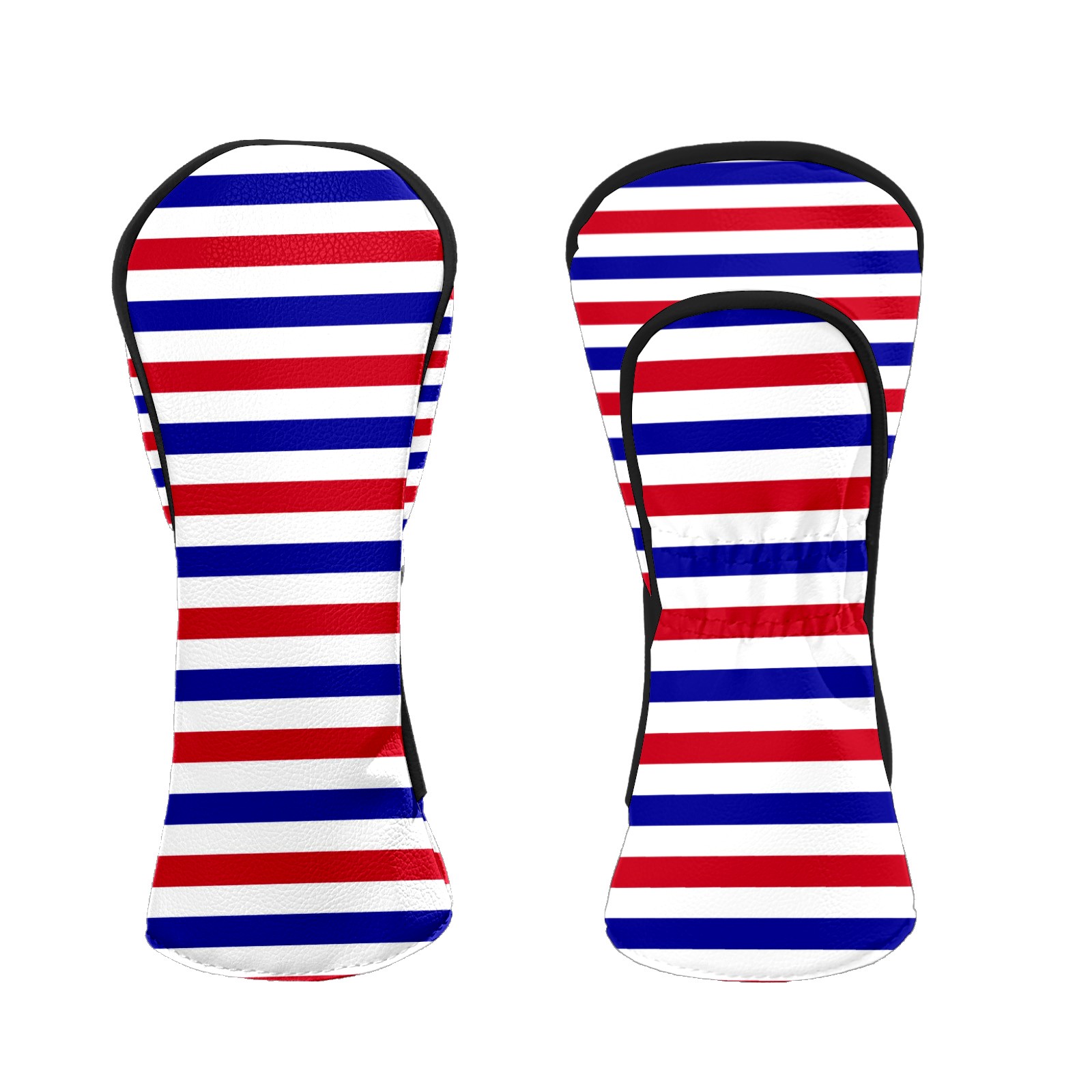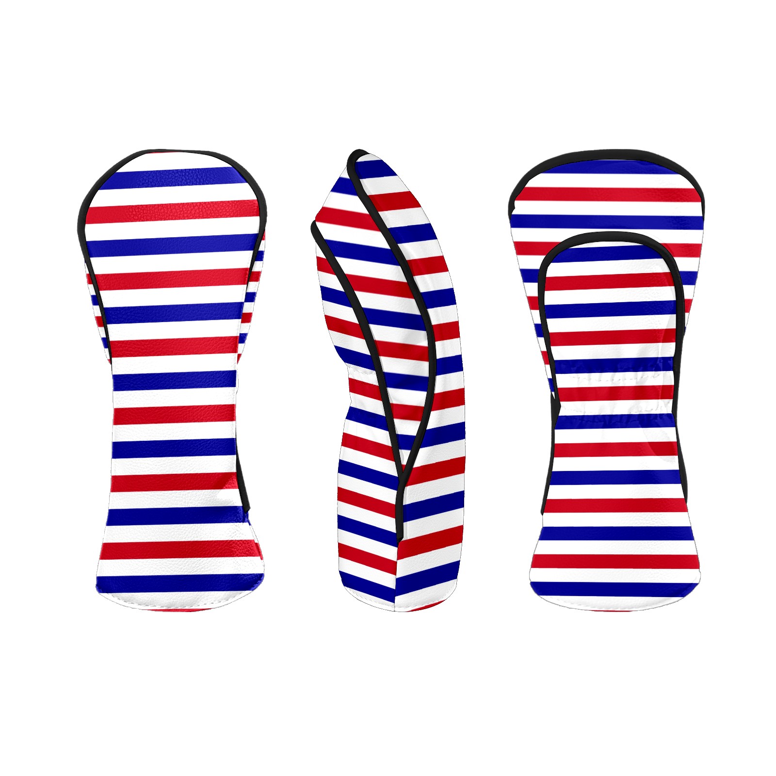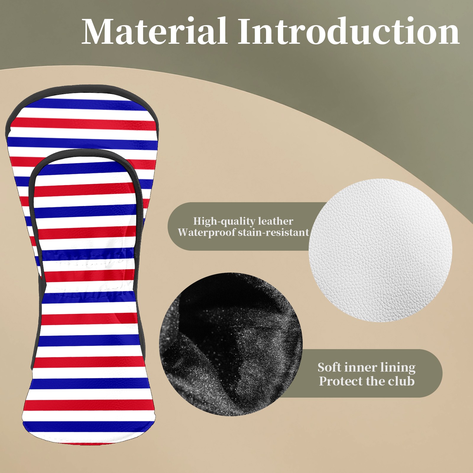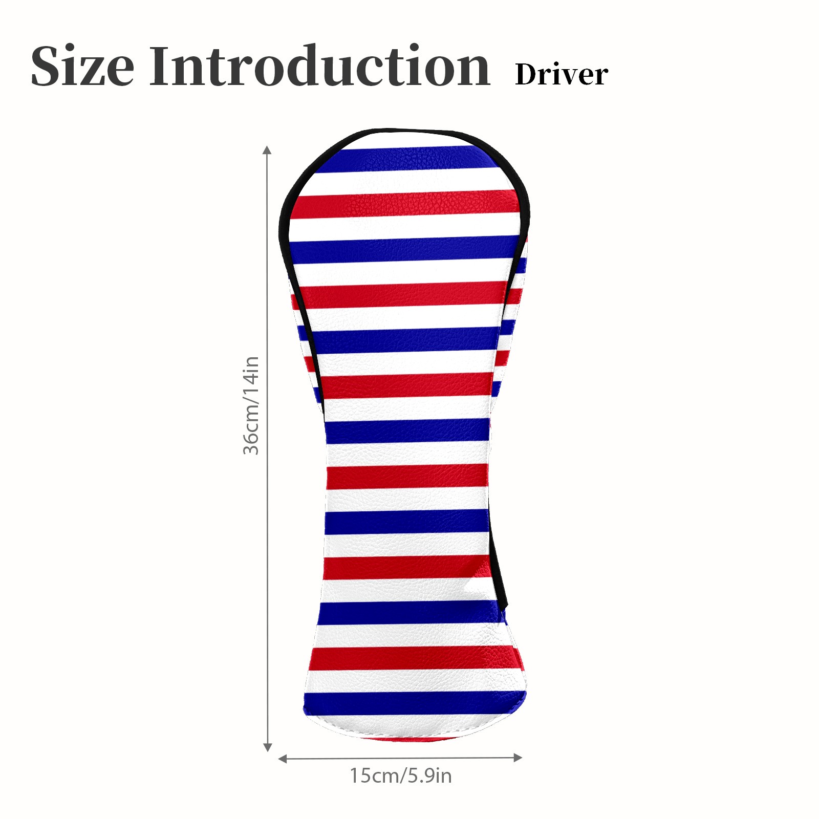 Golf Head Covers Fit Driver Headcover, Fairway Wood, and Hybrid Covers for Navy Blue Red White Striped Design, Waterproof PU Leather, Classic Golf Gift & Accessories for Golfers