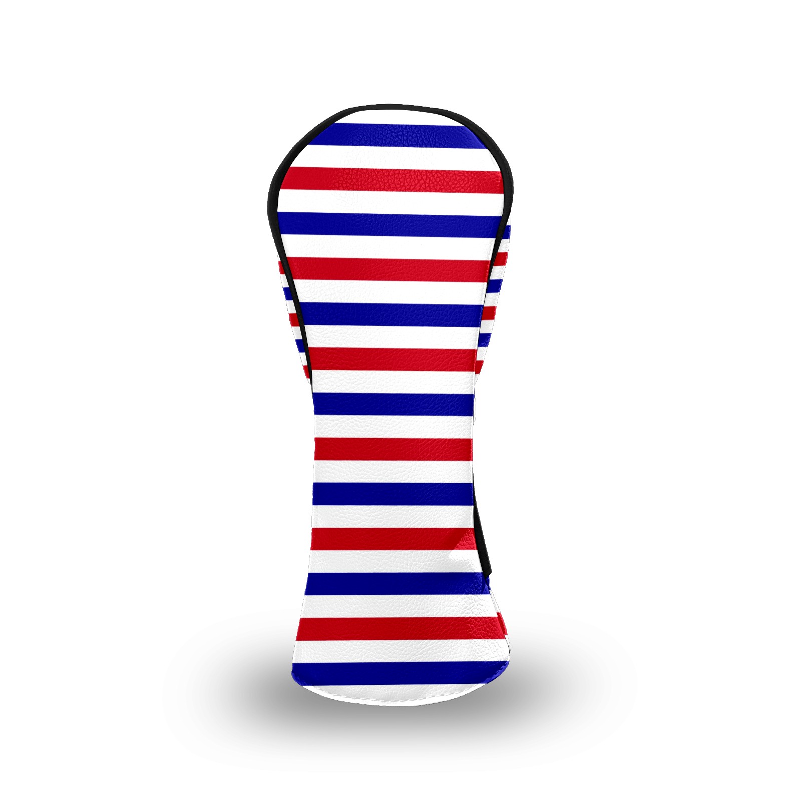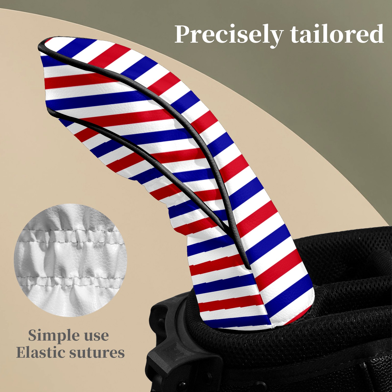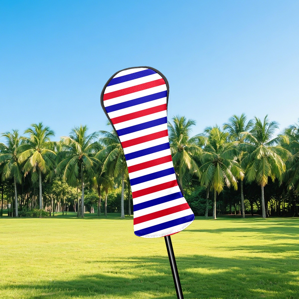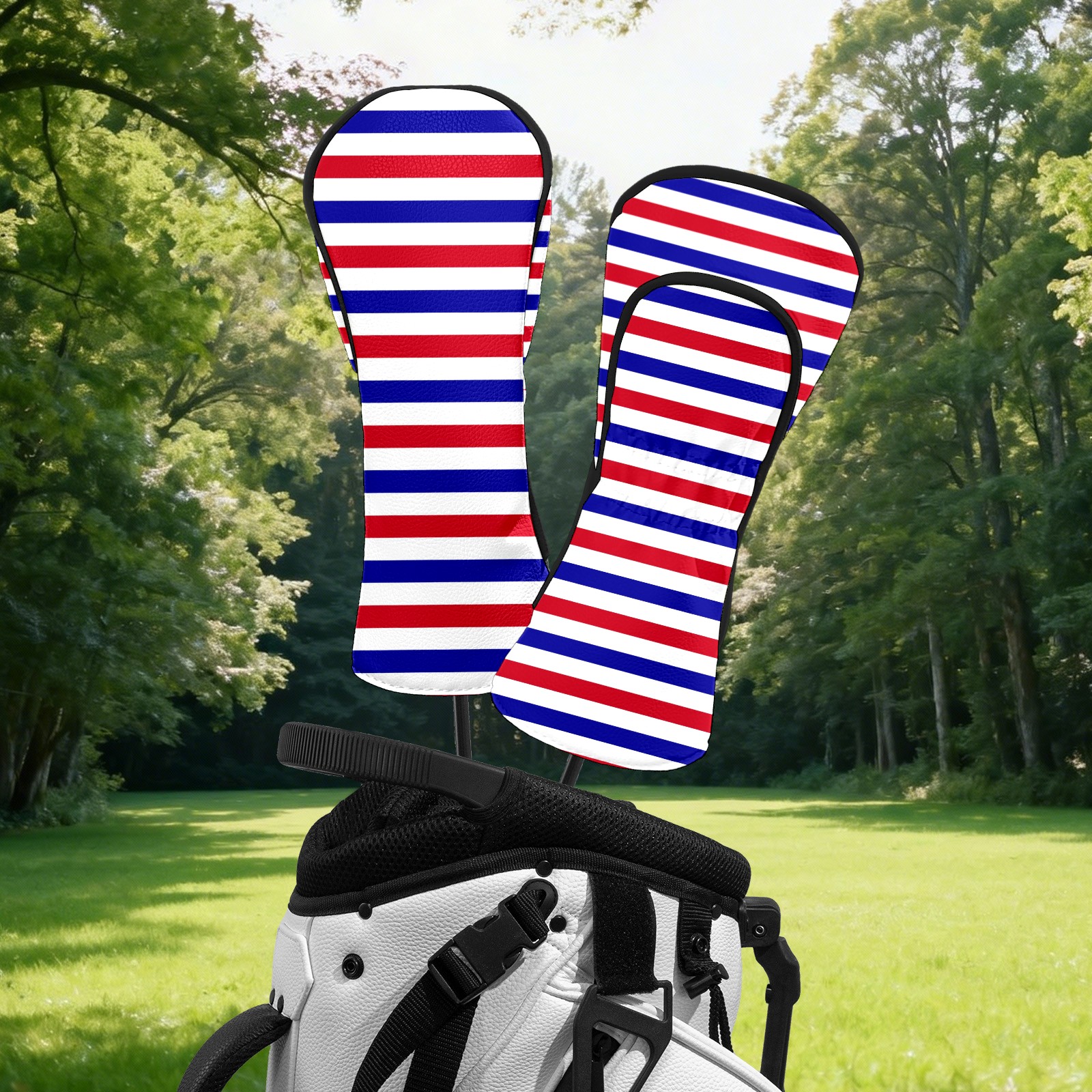 Golf Head Covers Fit Driver Headcover, Fairway Wood, and Hybrid Covers for Navy Blue Red White Striped Design, Waterproof PU Leather, Classic Golf Gift & Accessories for Golfers