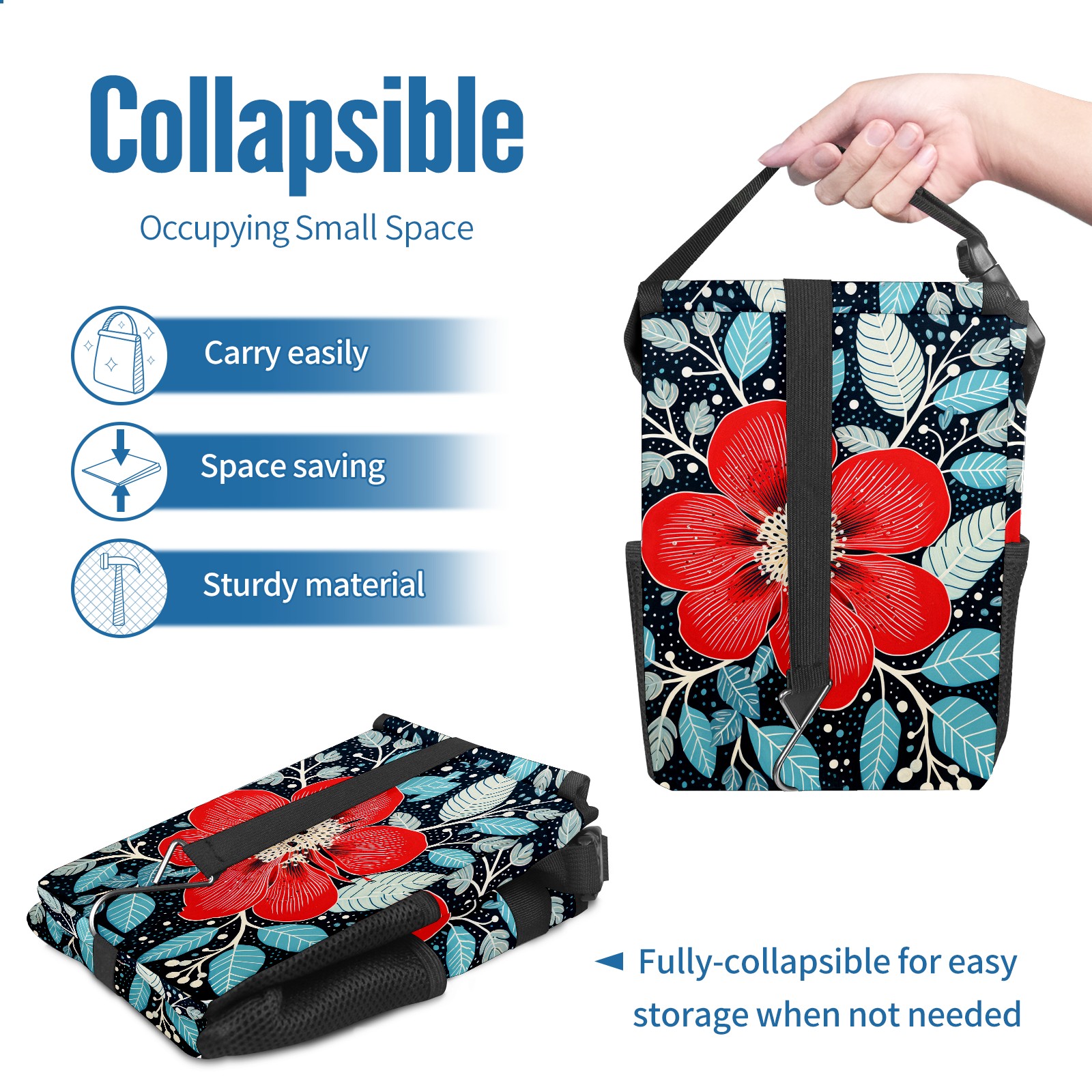• <p>【FOLDABLE &amp; SPACE-SAVING】</p> <p>✔ Compact 9.5"×6.7"×6.3" size fits perfectly in any vehicle space.</p> <p>✔ Instantly folds flat when not in use - stores effortlessly under seats or in door pockets.</p> <p>【MULTI-FUNCTION ORGANIZER】</p> <p>✔ Large main compartment holds bottles, wrappers and tissues.</p> <p>✔ Additional pockets for wet wipes, masks or small accessories.</p> <p>【WATERPROOF &amp; LEAKPROOF】</p> <p>✔ Made with premium leak-proof polyester material.</p> <p>✔ Contains messy spills from drinks, snacks, and food. </p> <p>✔ Wipe-clean surface resists stains and eliminates odors.</p> <p>Package Includes:</p> <p>1× Car Trash Can</p>