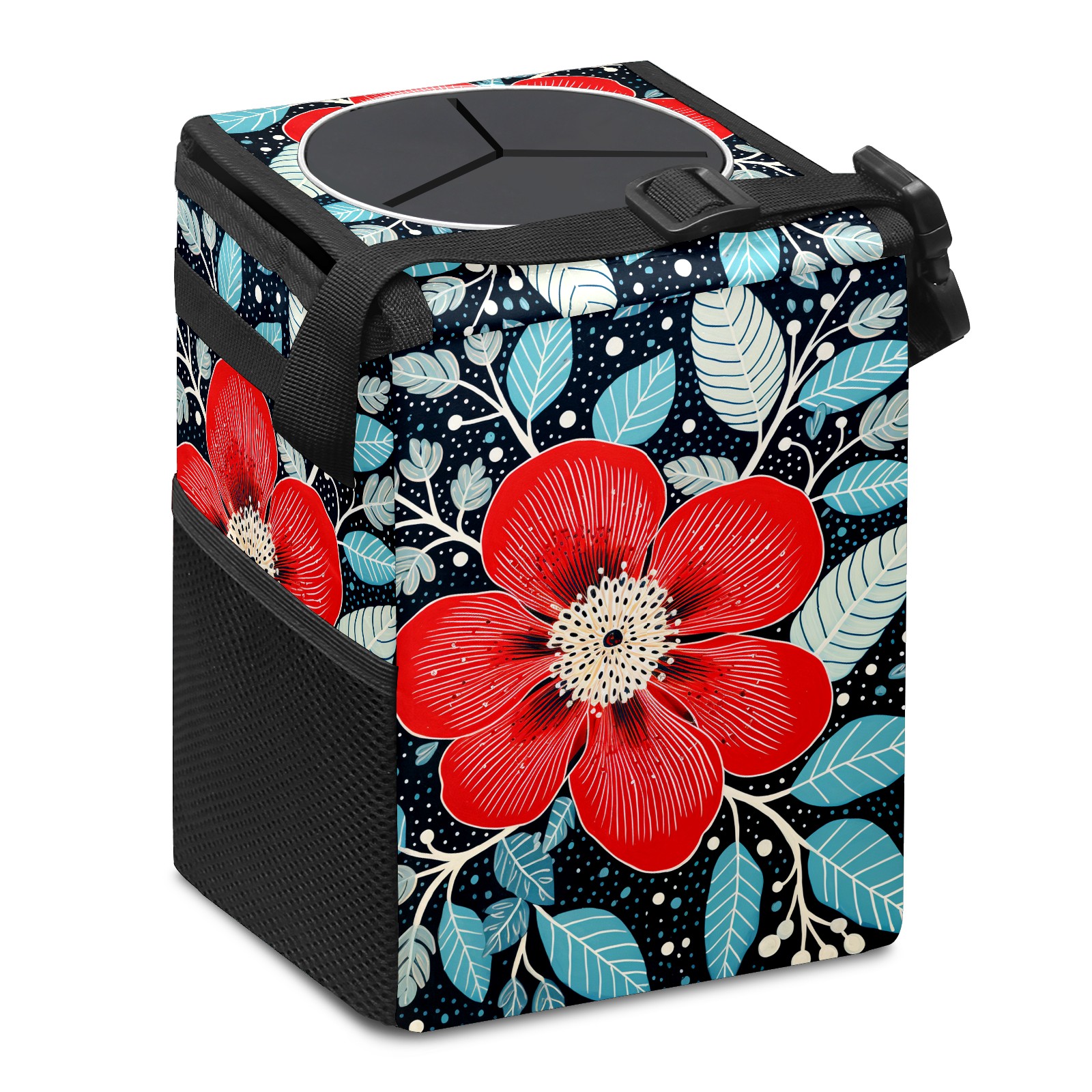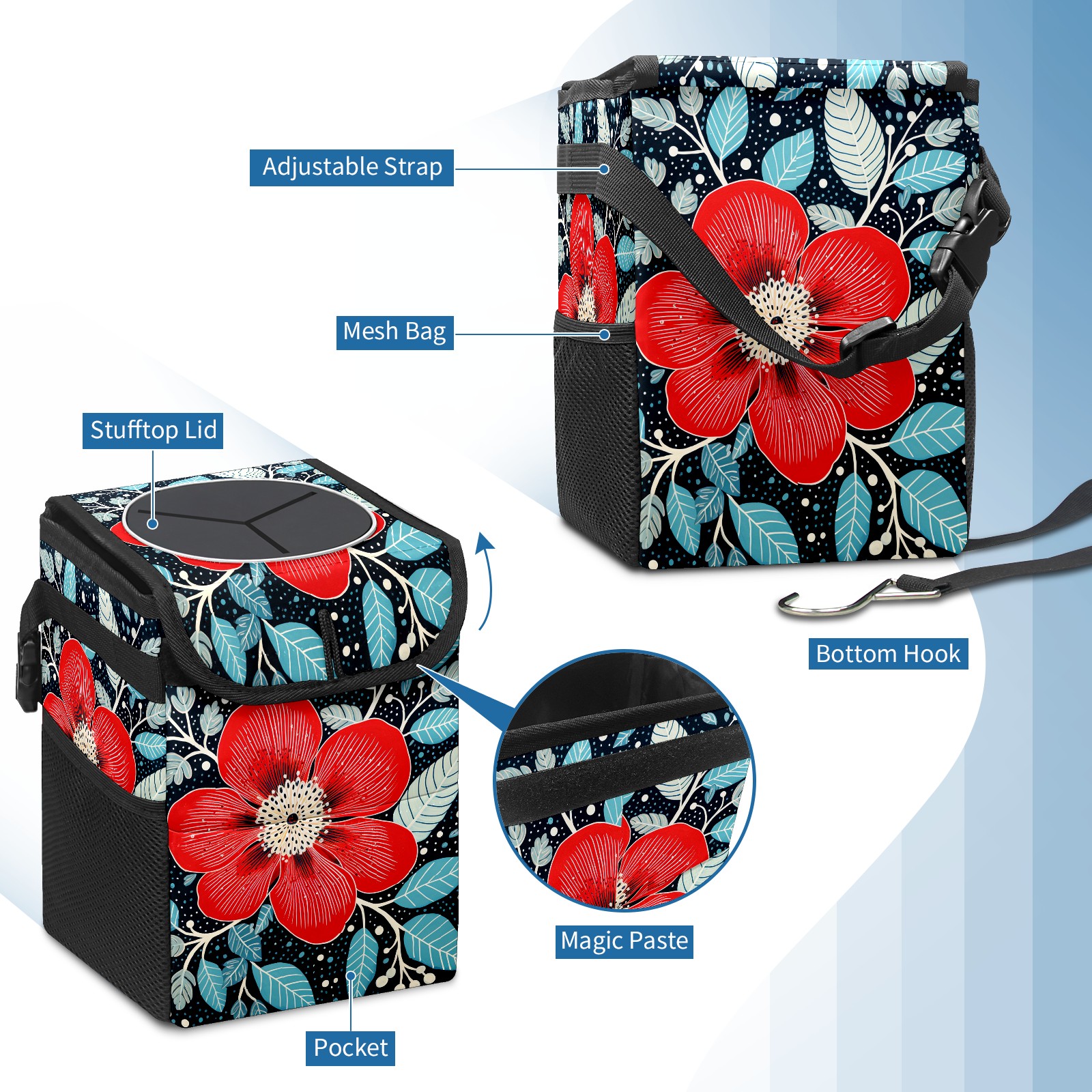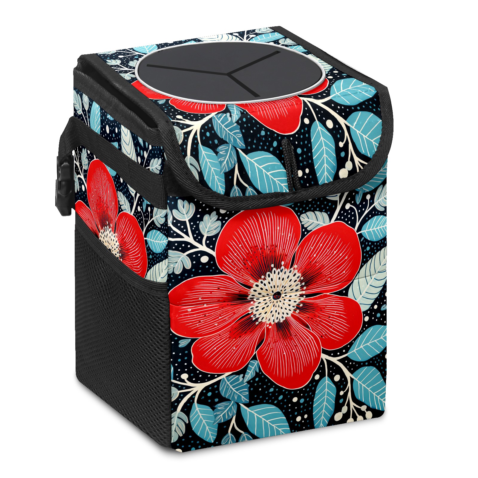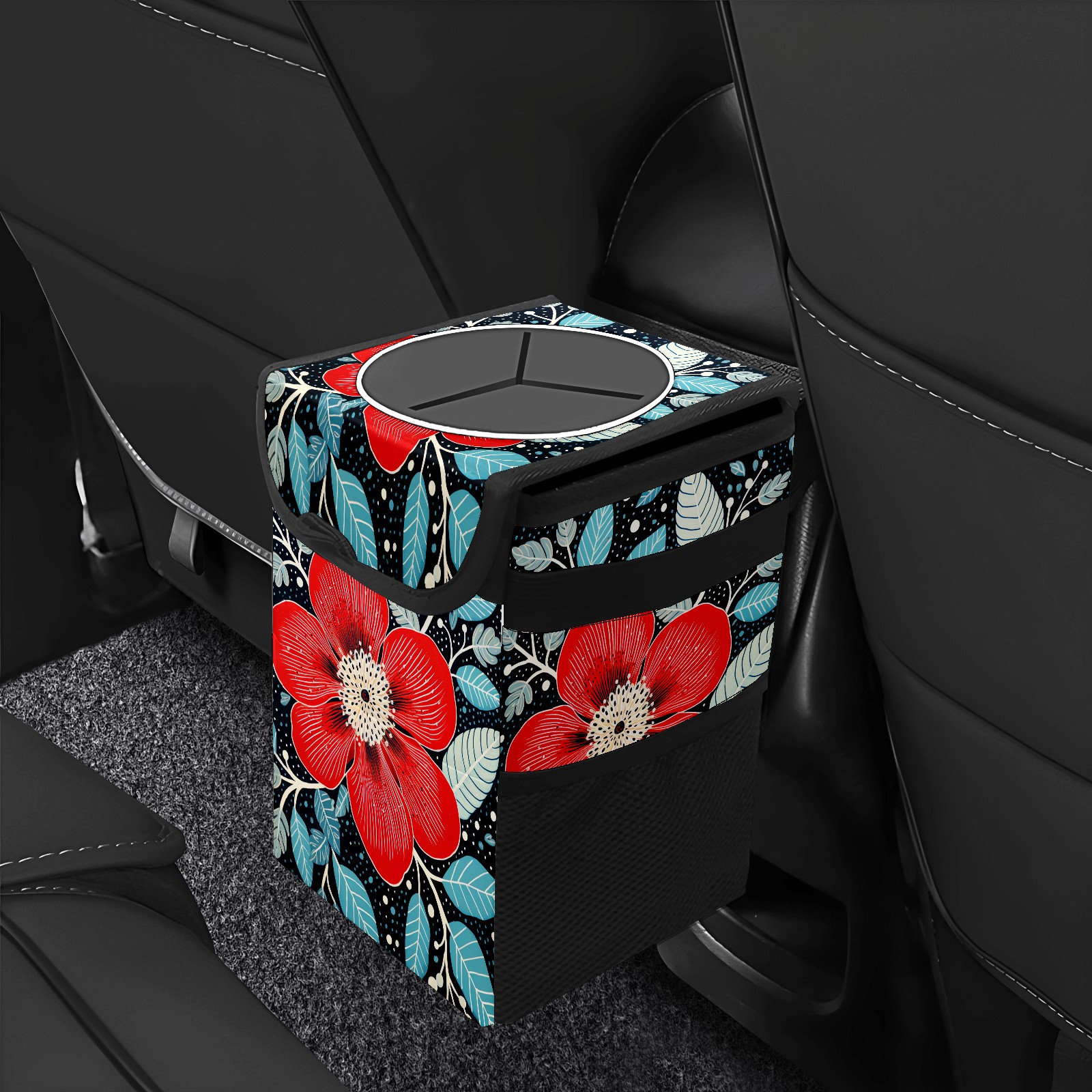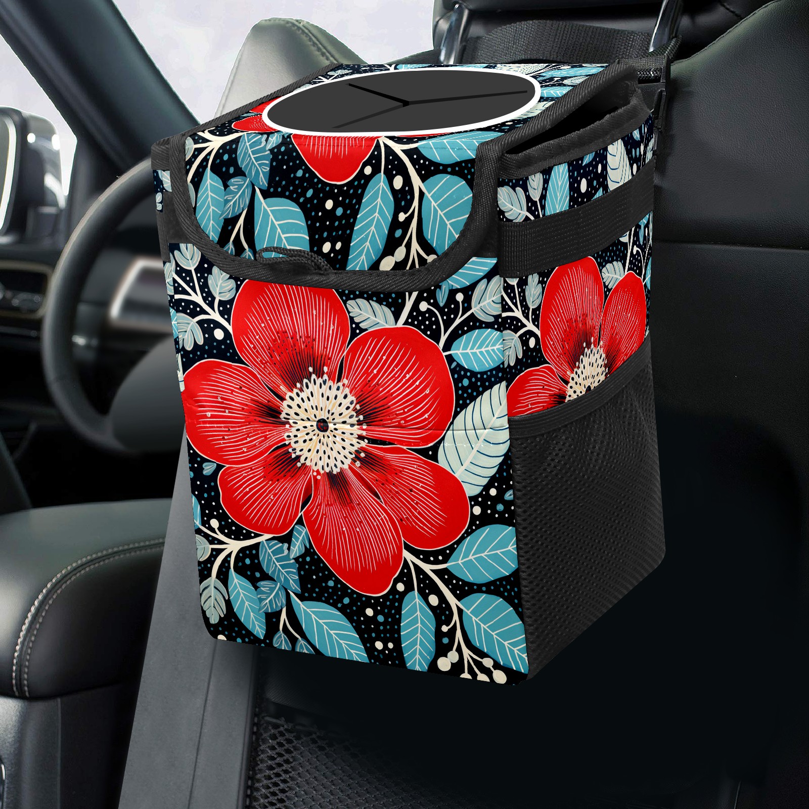 MSINMKOK Car Trash Bin with Lid Auto Garbage Bag Hanging for Back Seat - Leakproof Trash Can for Cars SUVs Trucks Vehicle Car Accessories (Floral Red)