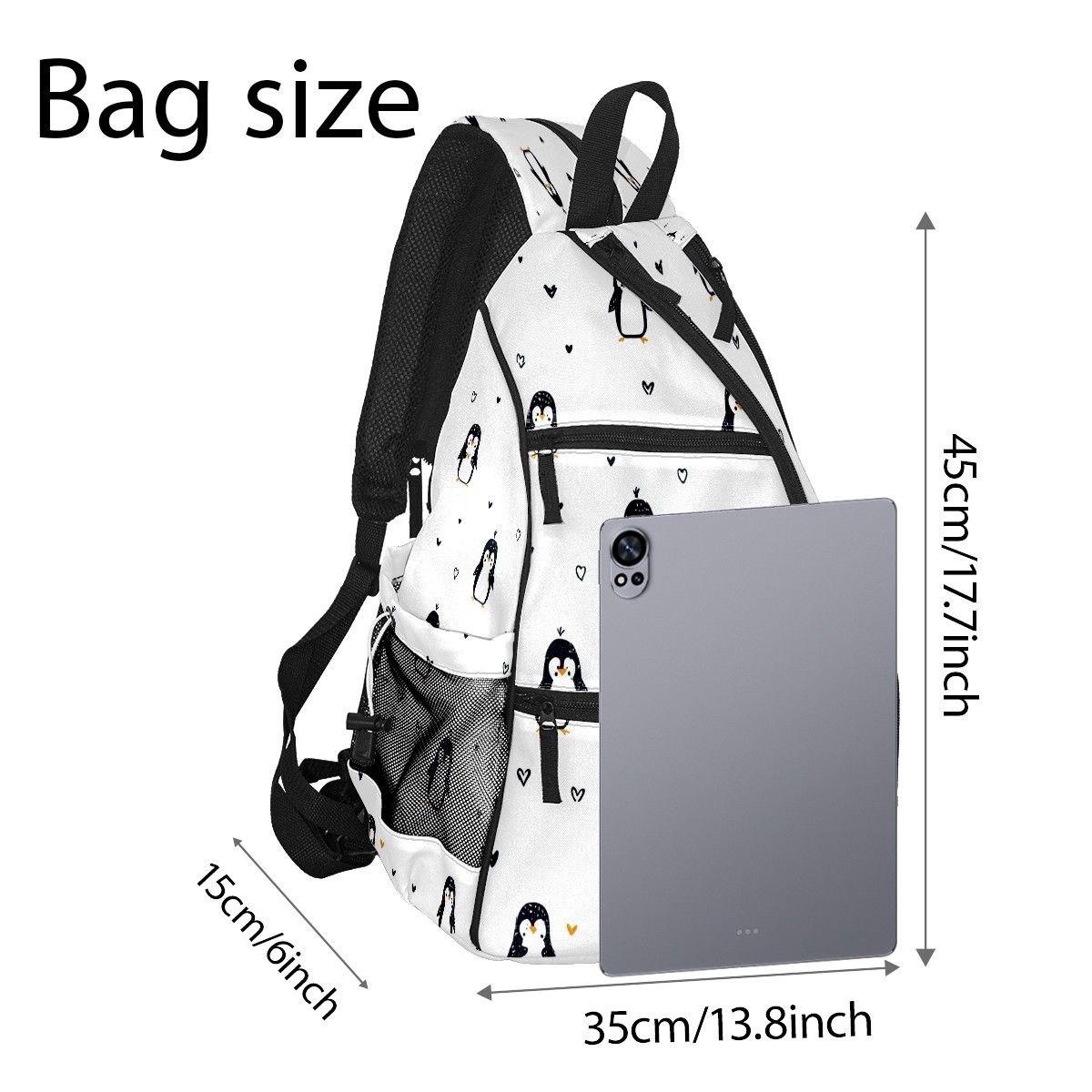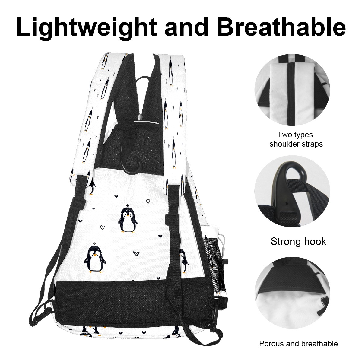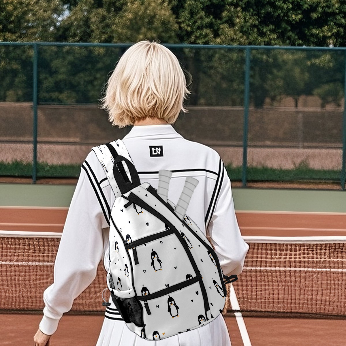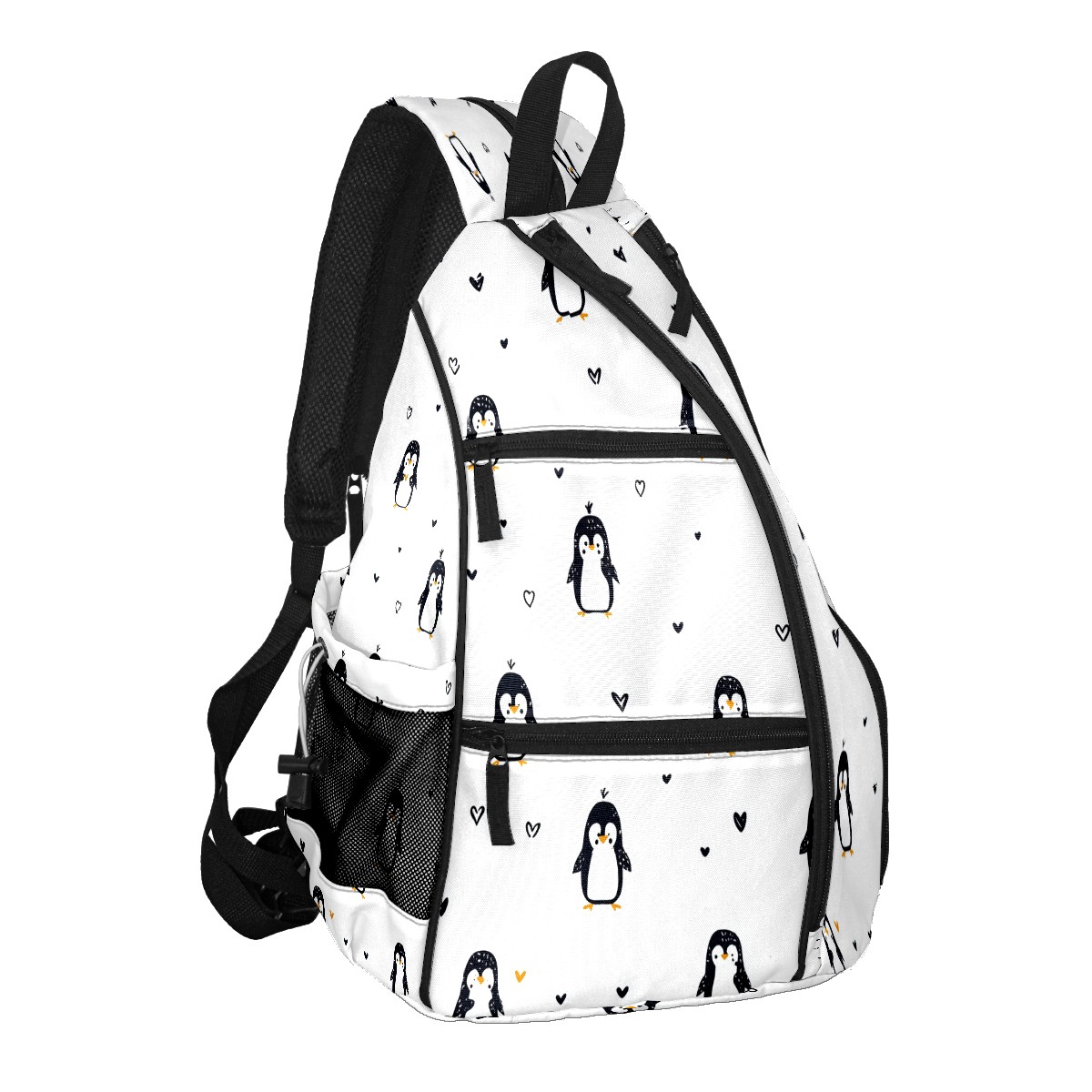 Counullo Penguins White 3-in-1 Premium Nylon Pickleball Backpack, Convertible Shoulder & Crossbody Bag for Women & Men, Holds 2-4 Paddles & Sports Gear