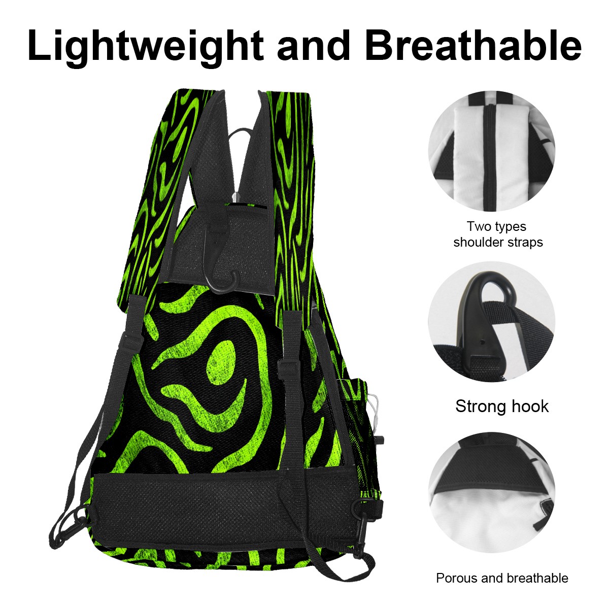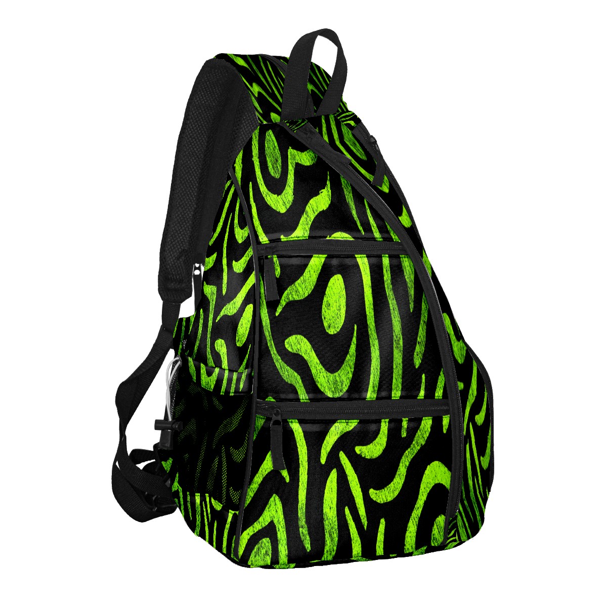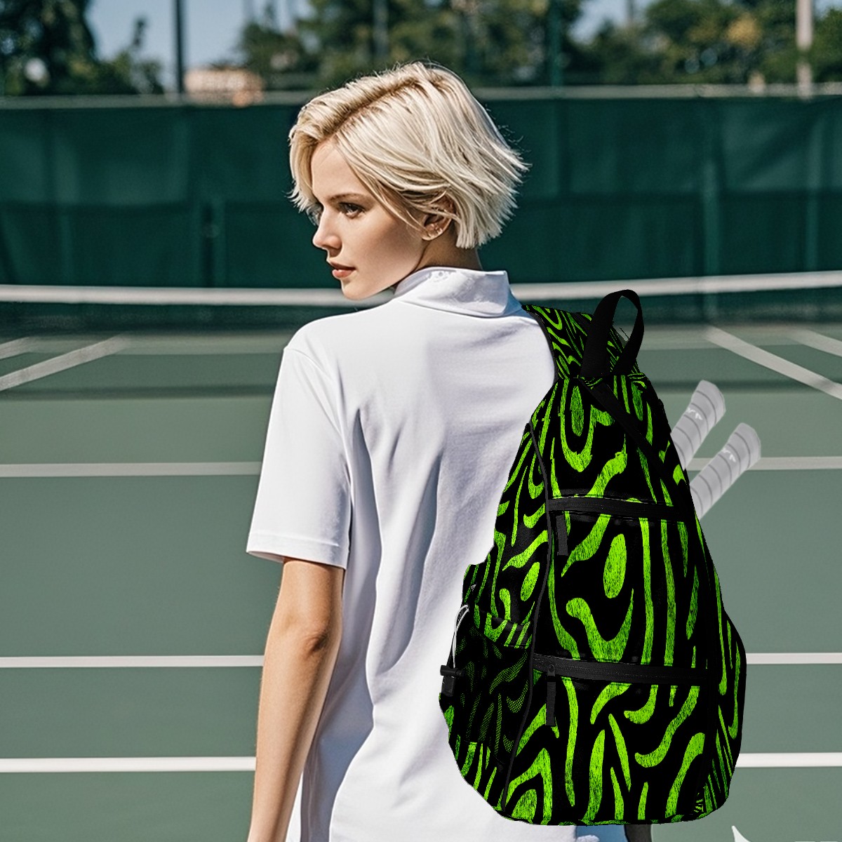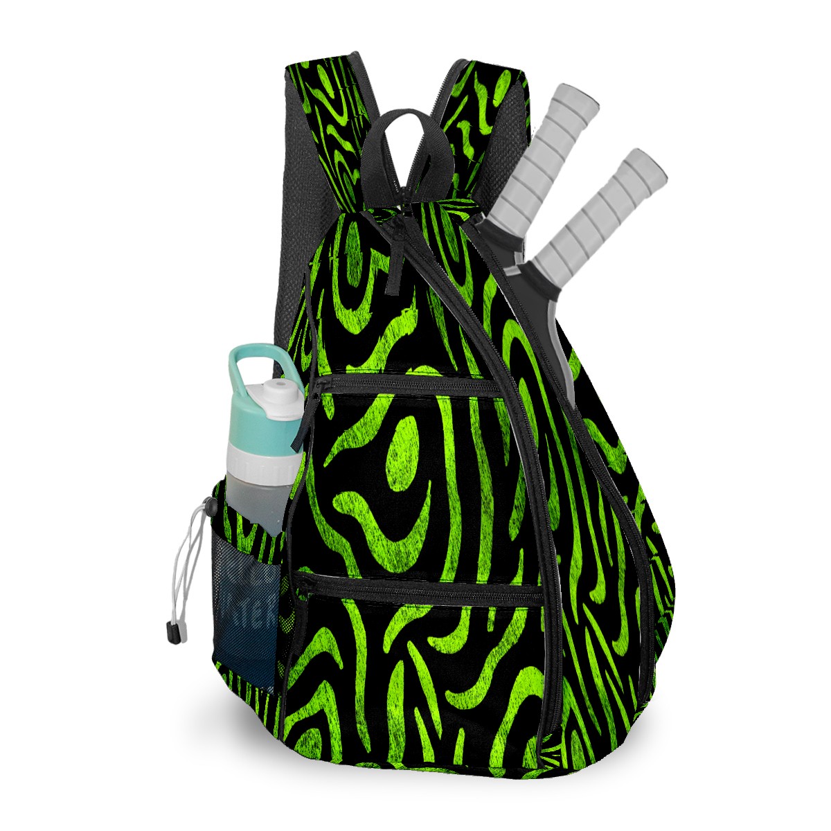 Counullo Spiral Pattern Green 3-in-1 Premium Nylon Pickleball Backpack, Convertible Shoulder & Crossbody Bag for Women & Men, Holds 2-4 Paddles & Sports Gear