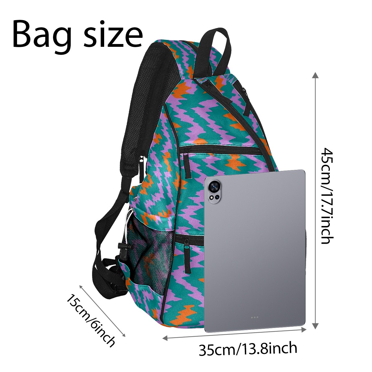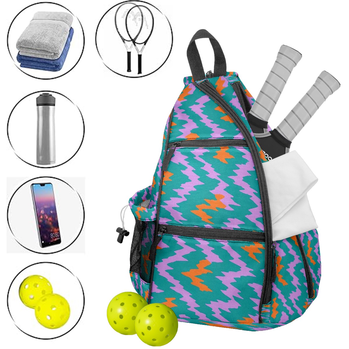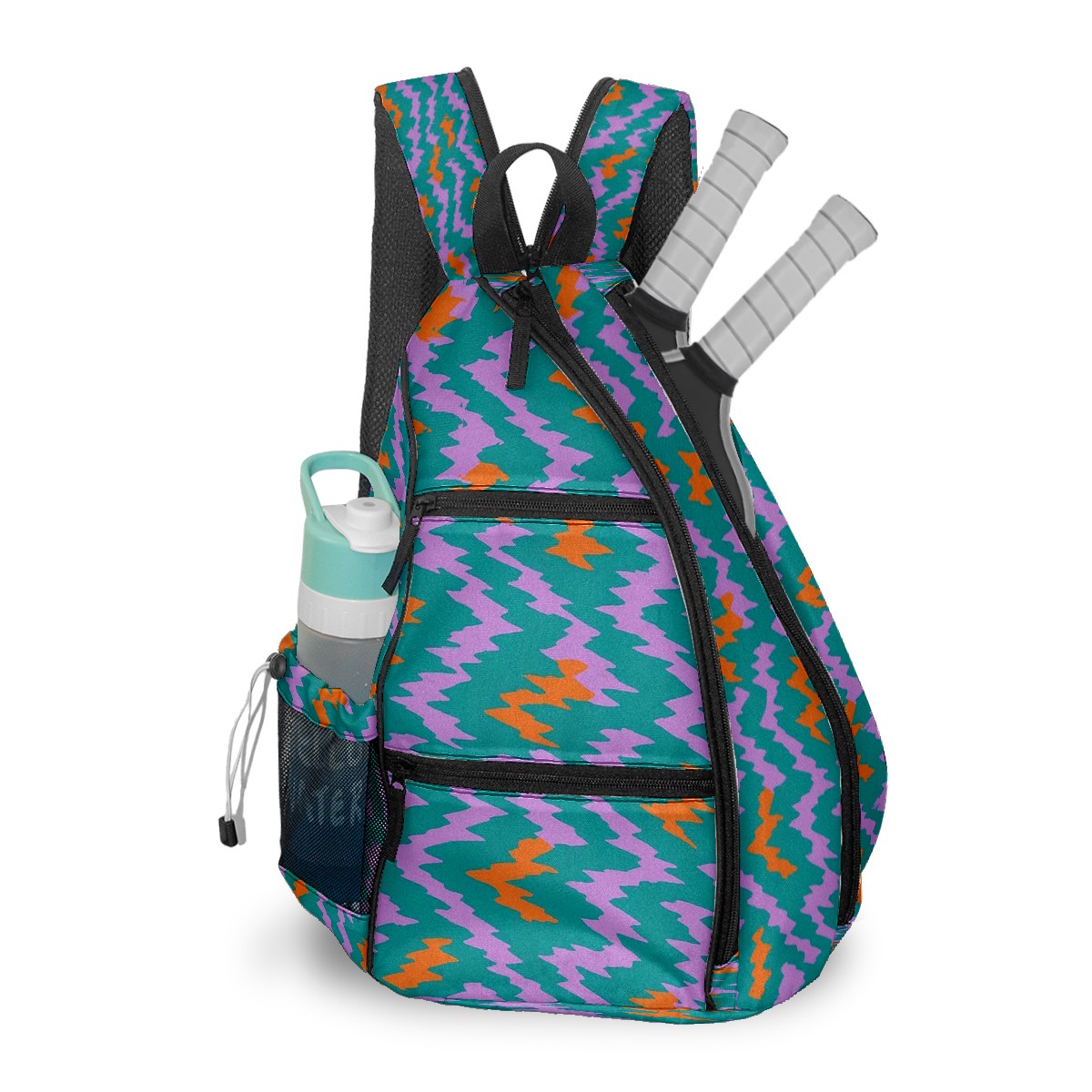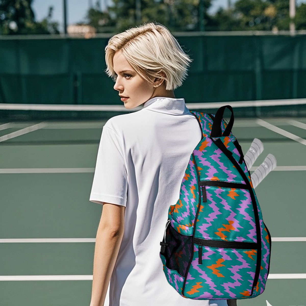 Counullo Wave Pattern Green 3-in-1 Premium Nylon Pickleball Backpack, Convertible Shoulder & Crossbody Bag for Women & Men, Holds 2-4 Paddles & Sports Gear
