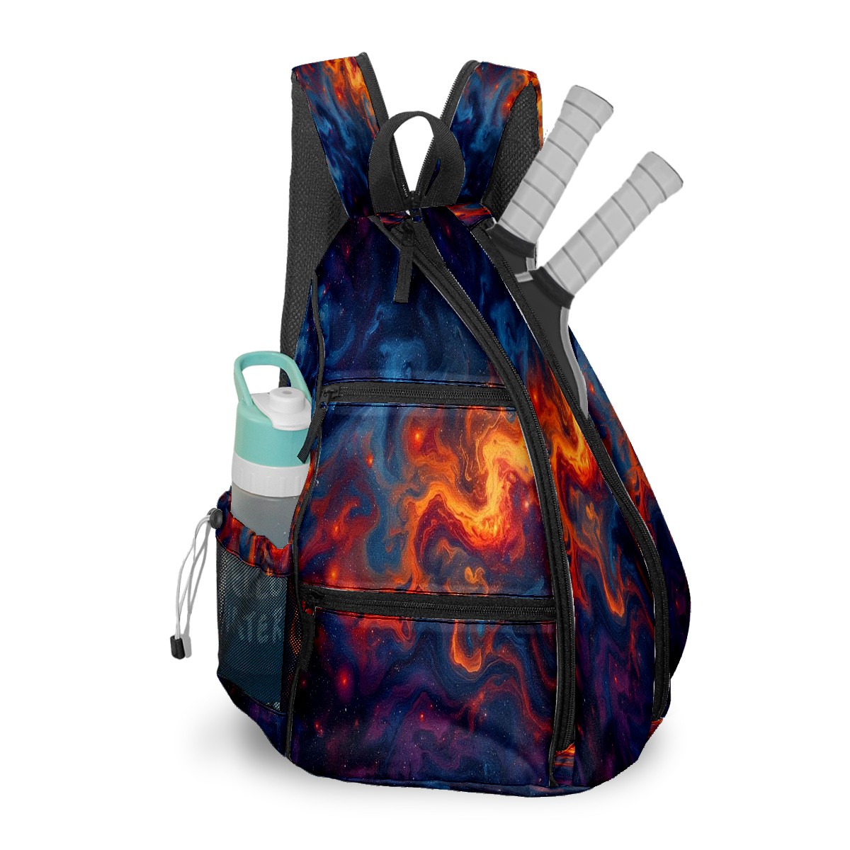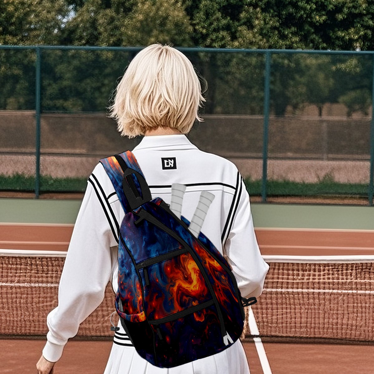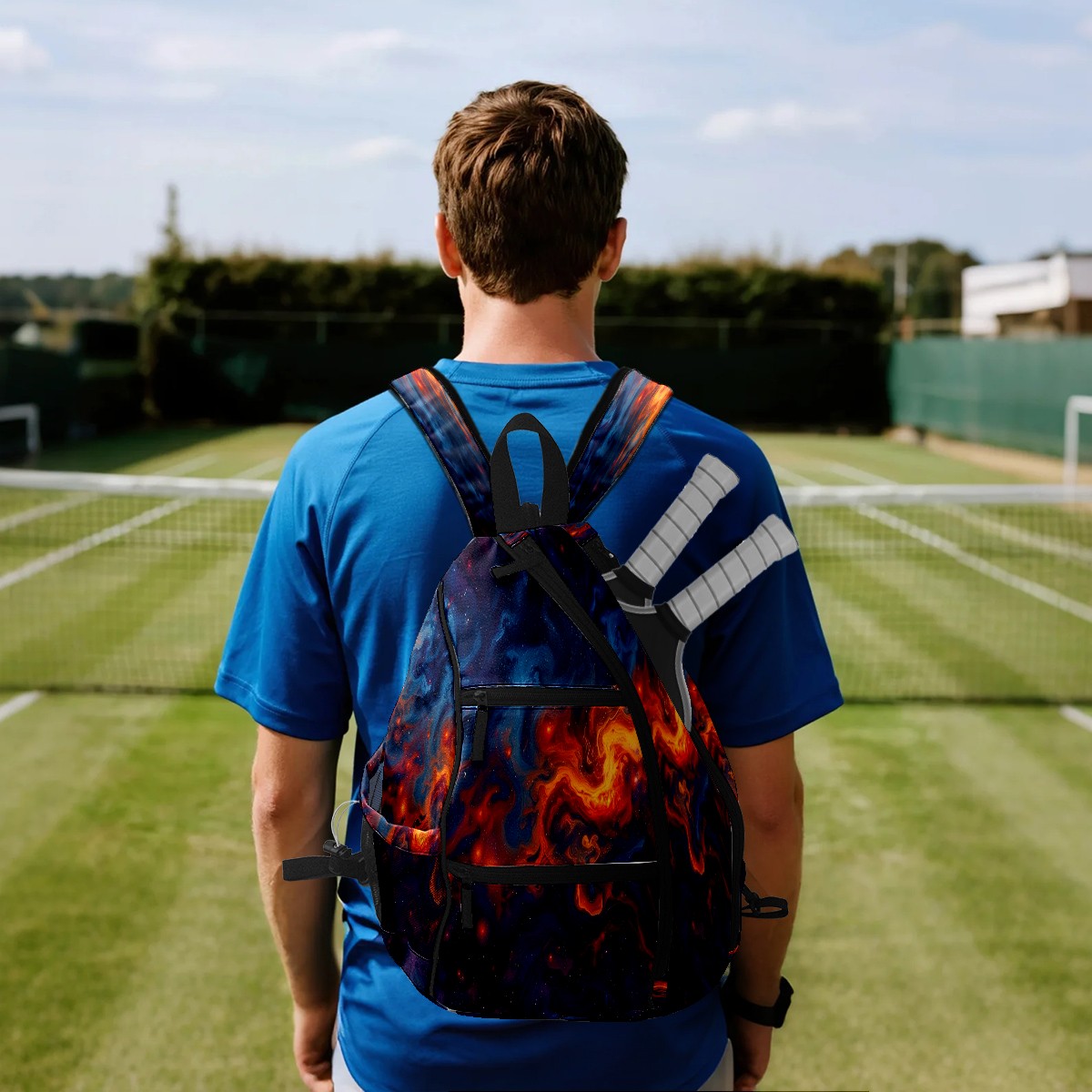 Counullo Flame Pattern Red 3-in-1 Premium Nylon Pickleball Backpack, Convertible Shoulder & Crossbody Bag for Women & Men, Holds 2-4 Paddles & Sports Gear
