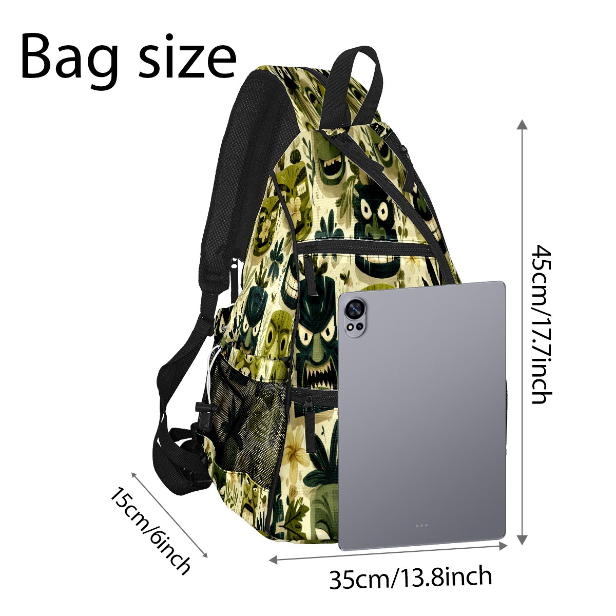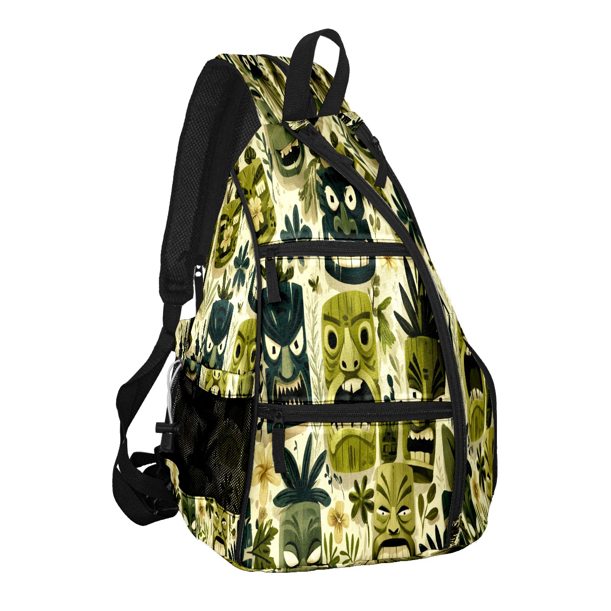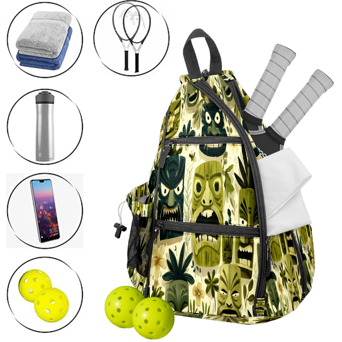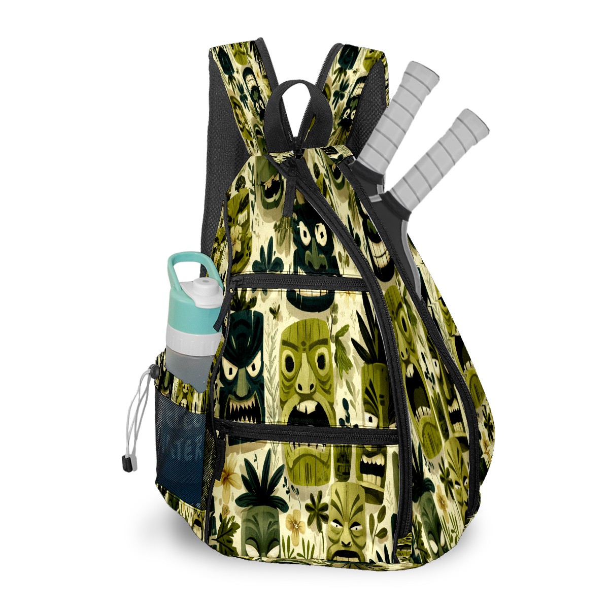 Counullo Hawaiian Masks Multicolor 3-in-1 Premium Nylon Pickleball Backpack, Convertible Shoulder & Crossbody Bag for Women & Men, Holds 2-4 Paddles & Sports Gear