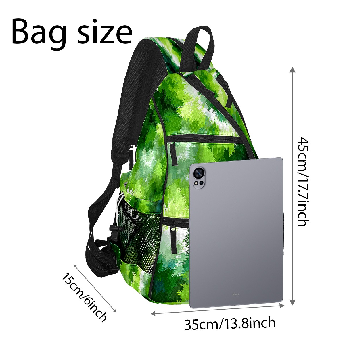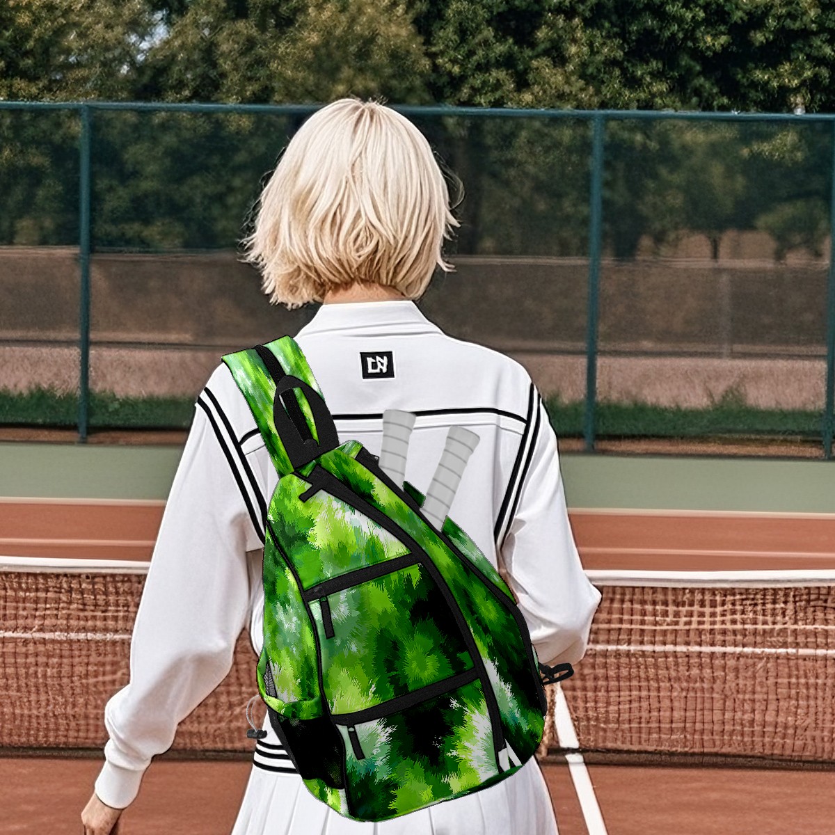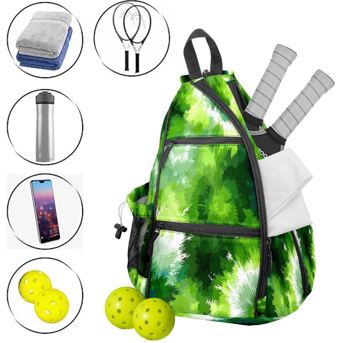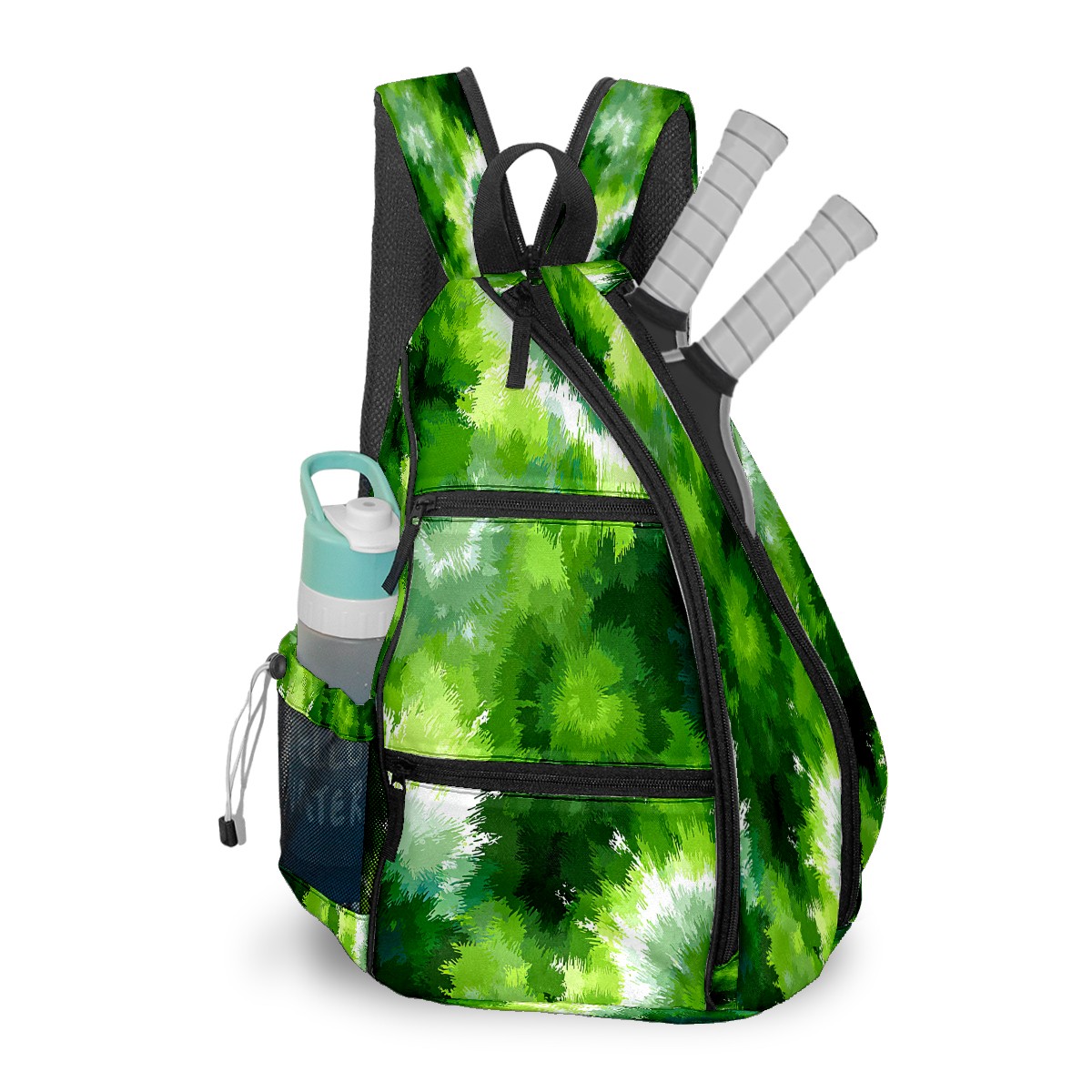 Counullo Tie-dye Green 3-in-1 Premium Nylon Pickleball Backpack, Convertible Shoulder & Crossbody Bag for Women & Men, Holds 2-4 Paddles & Sports Gear
