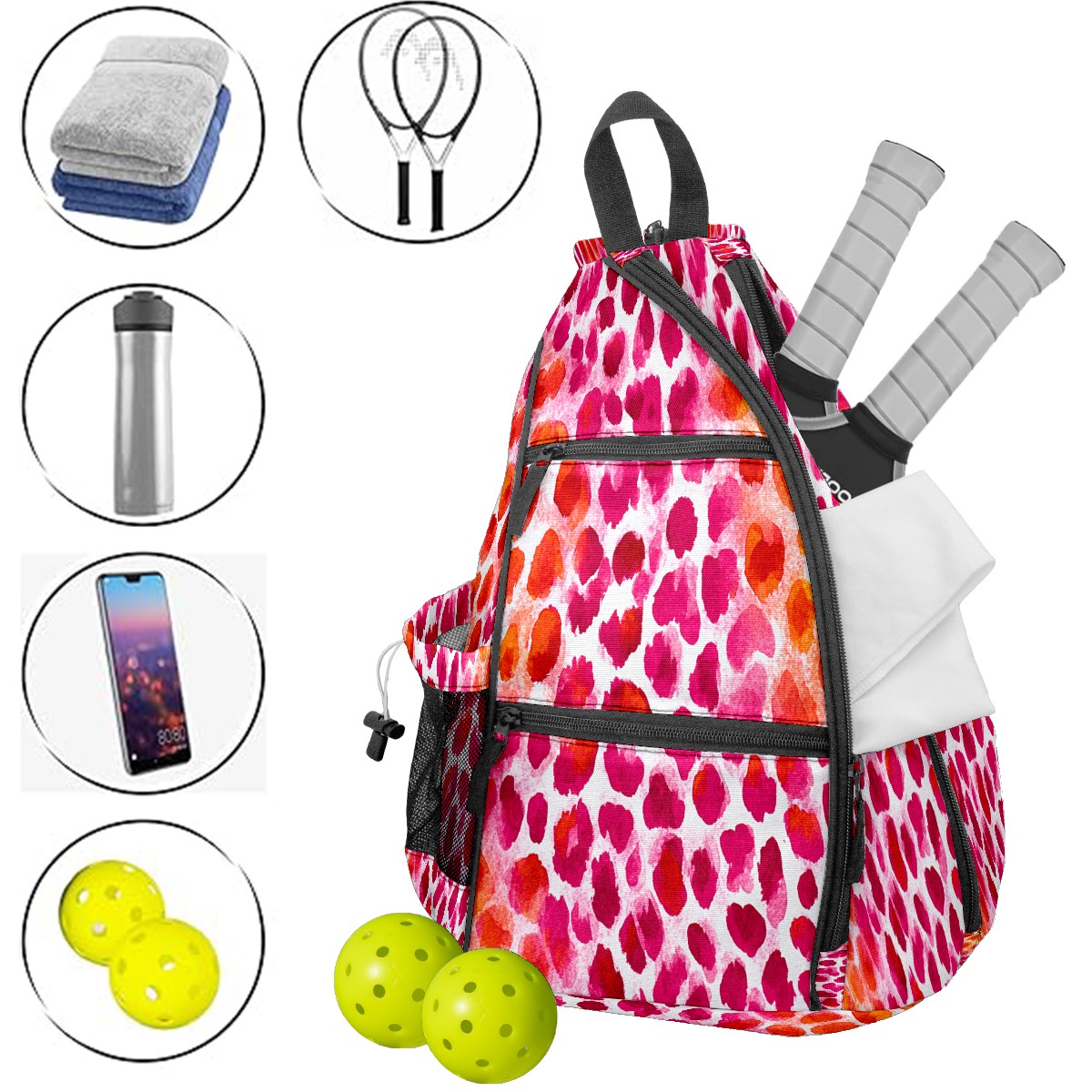 Counullo Cheetah Print Pink 3-in-1 Premium Nylon Pickleball Backpack, Convertible Shoulder & Crossbody Bag for Women & Men, Holds 2-4 Paddles & Sports Gear