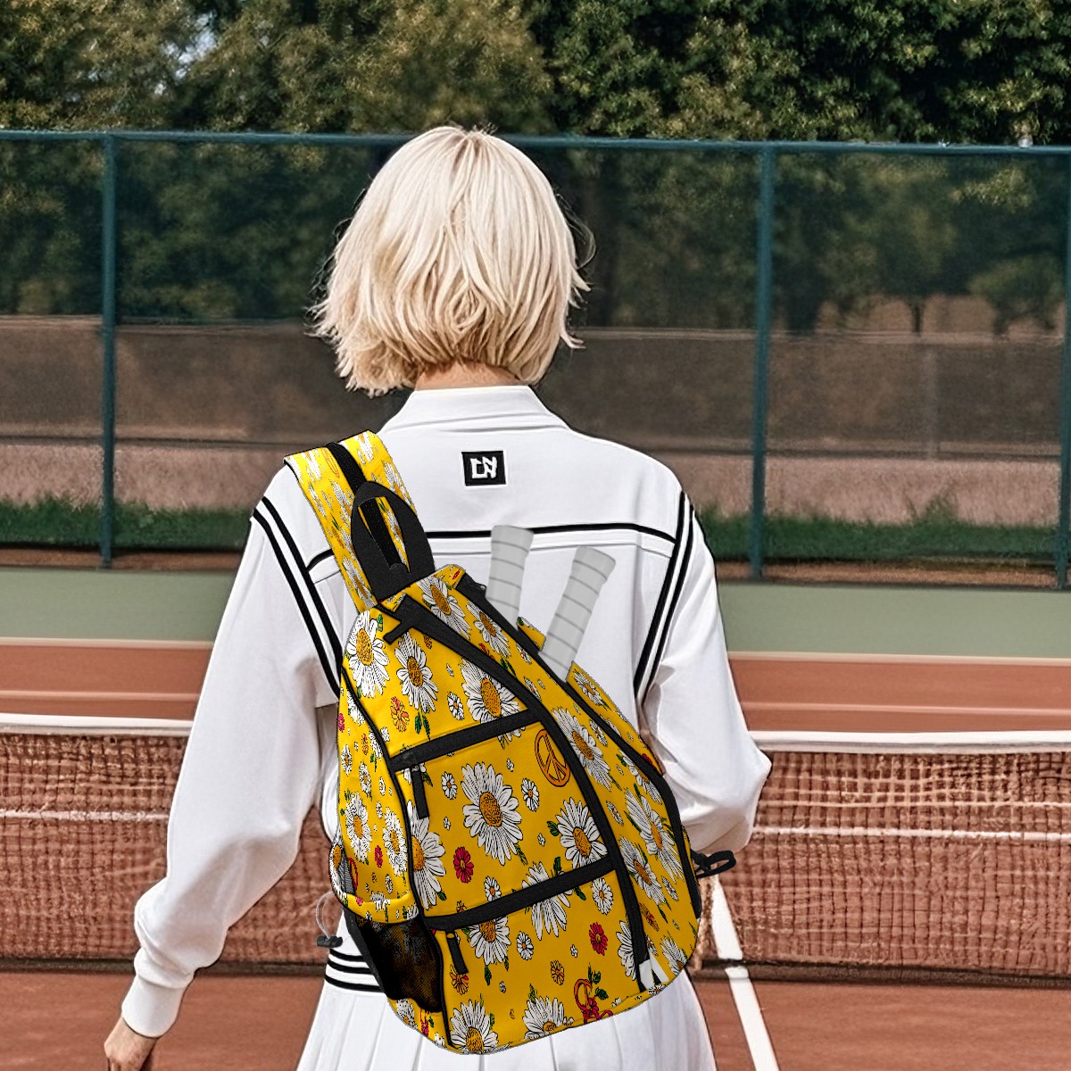 Counullo Daisy Peace Yellow 3-in-1 Premium Nylon Pickleball Backpack, Convertible Shoulder & Crossbody Bag for Women & Men, Holds 2-4 Paddles & Sports Gear