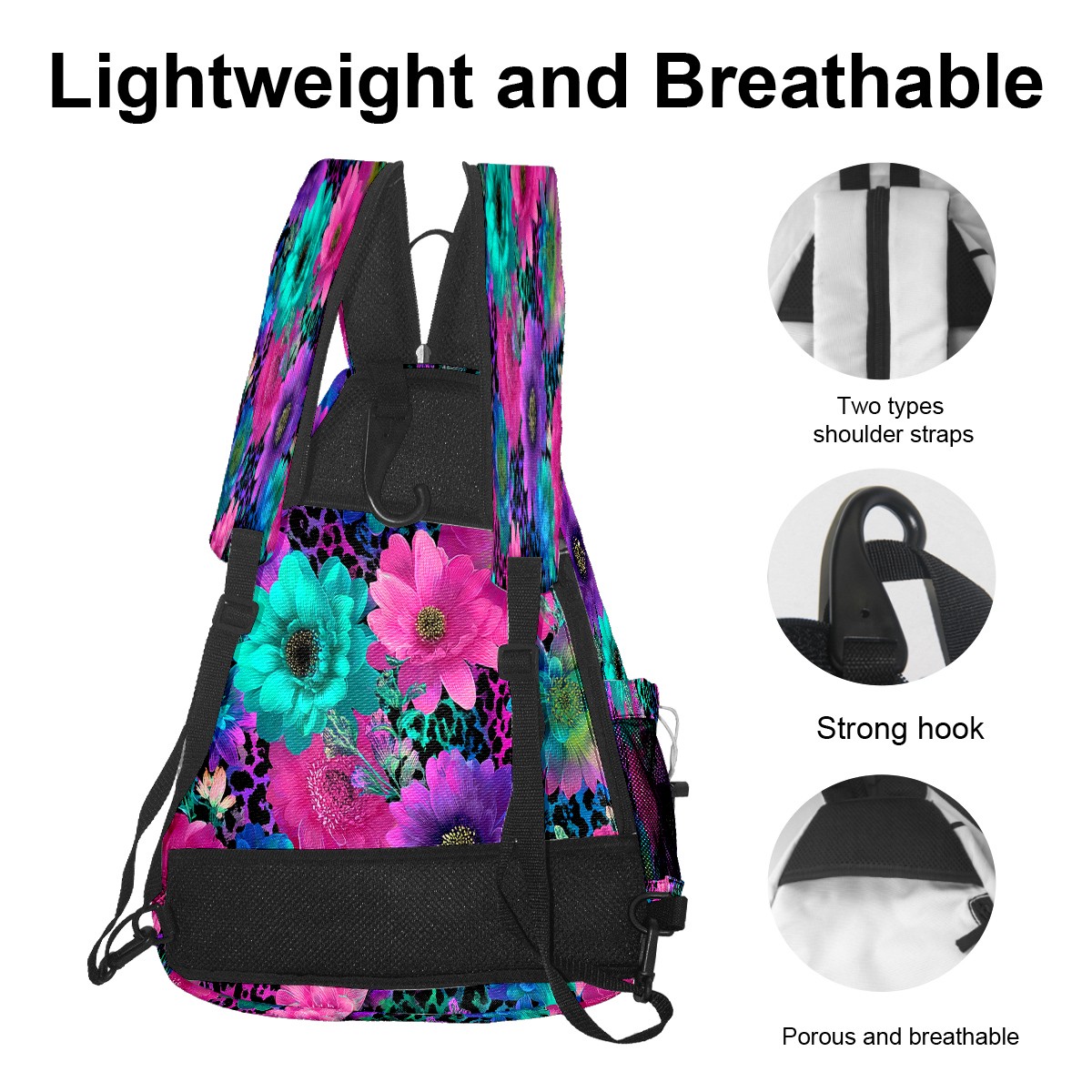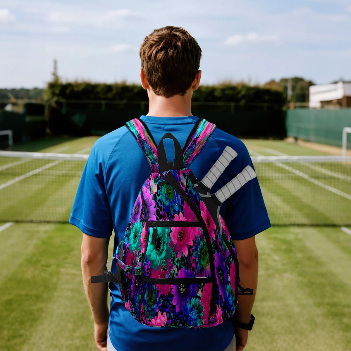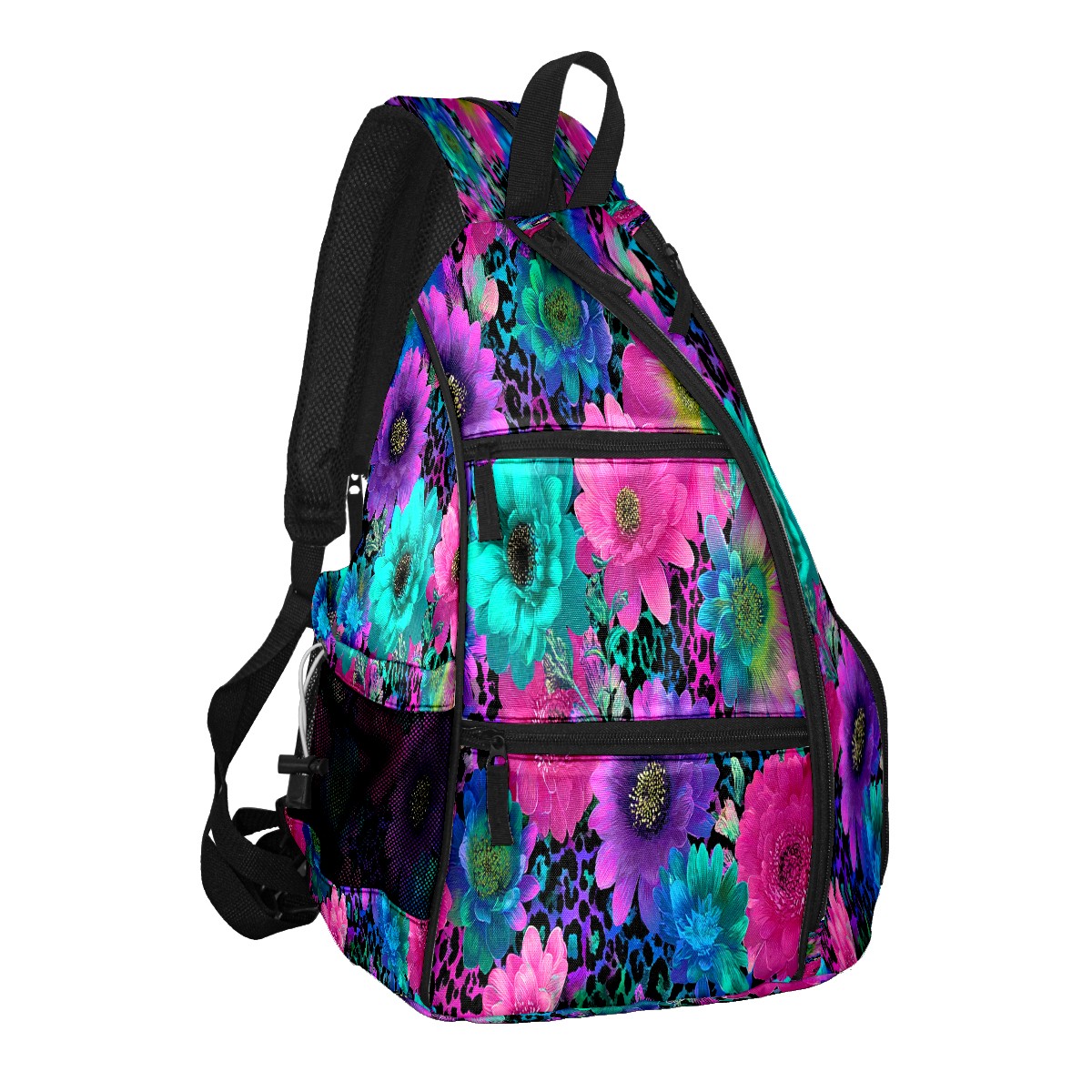 Counullo Floral Multicolor 3-in-1 Premium Nylon Pickleball Backpack, Convertible Shoulder & Crossbody Bag for Women & Men, Holds 2-4 Paddles & Sports Gear
