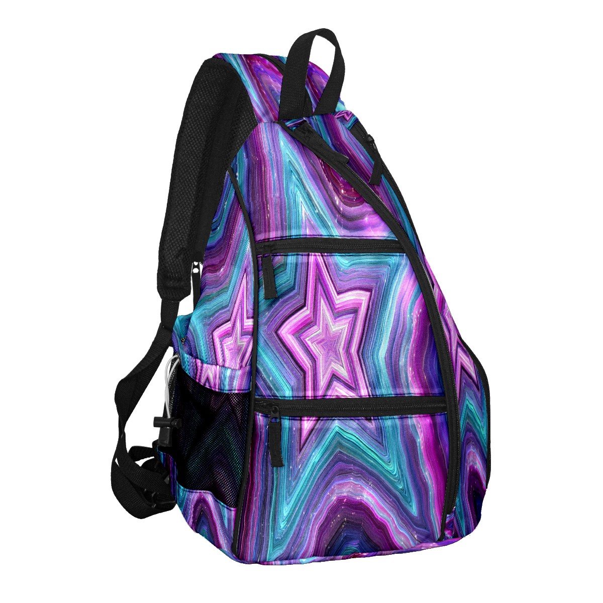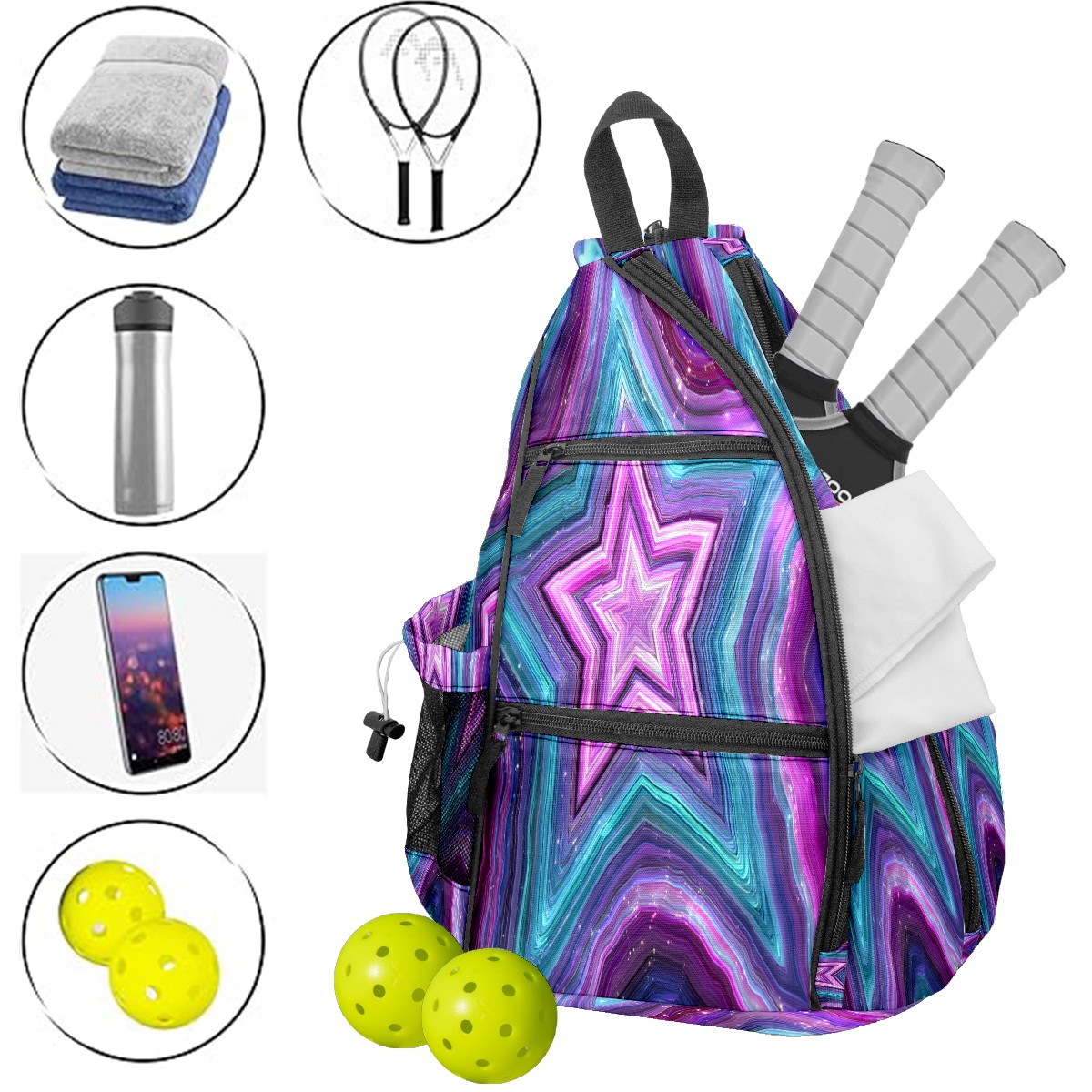 Counullo Star Pattern PurpleBlue 3-in-1 Premium Nylon Pickleball Backpack, Convertible Shoulder & Crossbody Bag for Women & Men, Holds 2-4 Paddles & Sports Gear