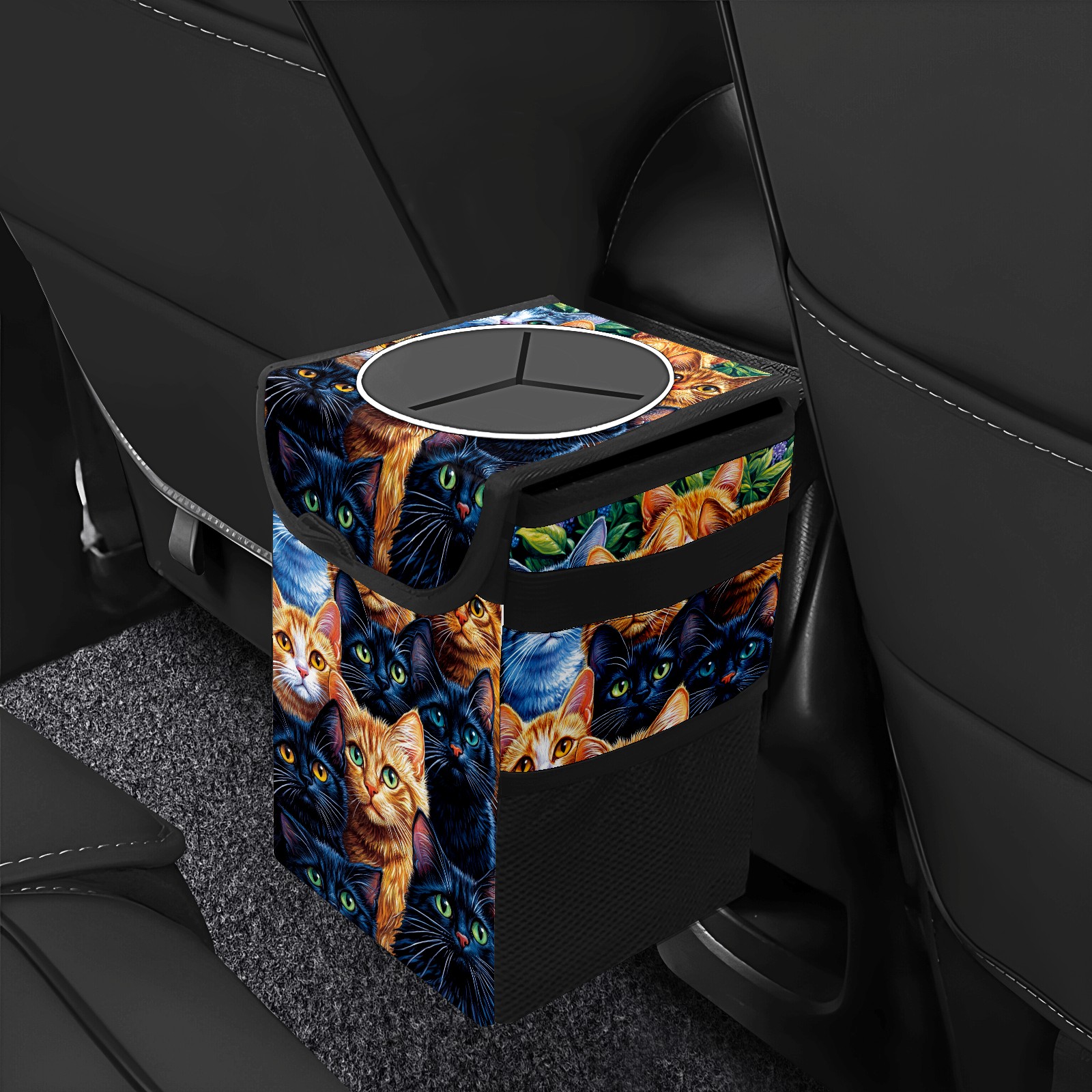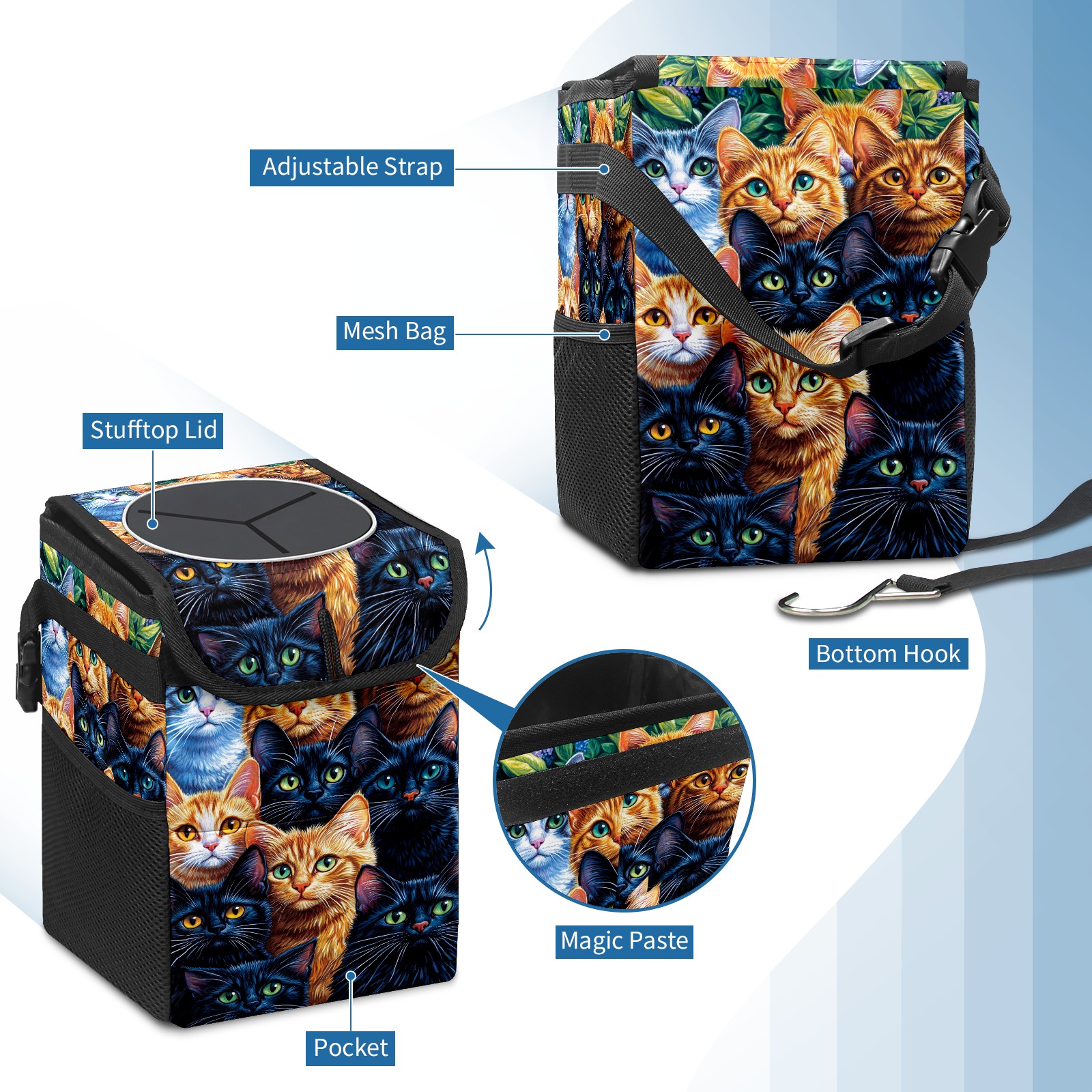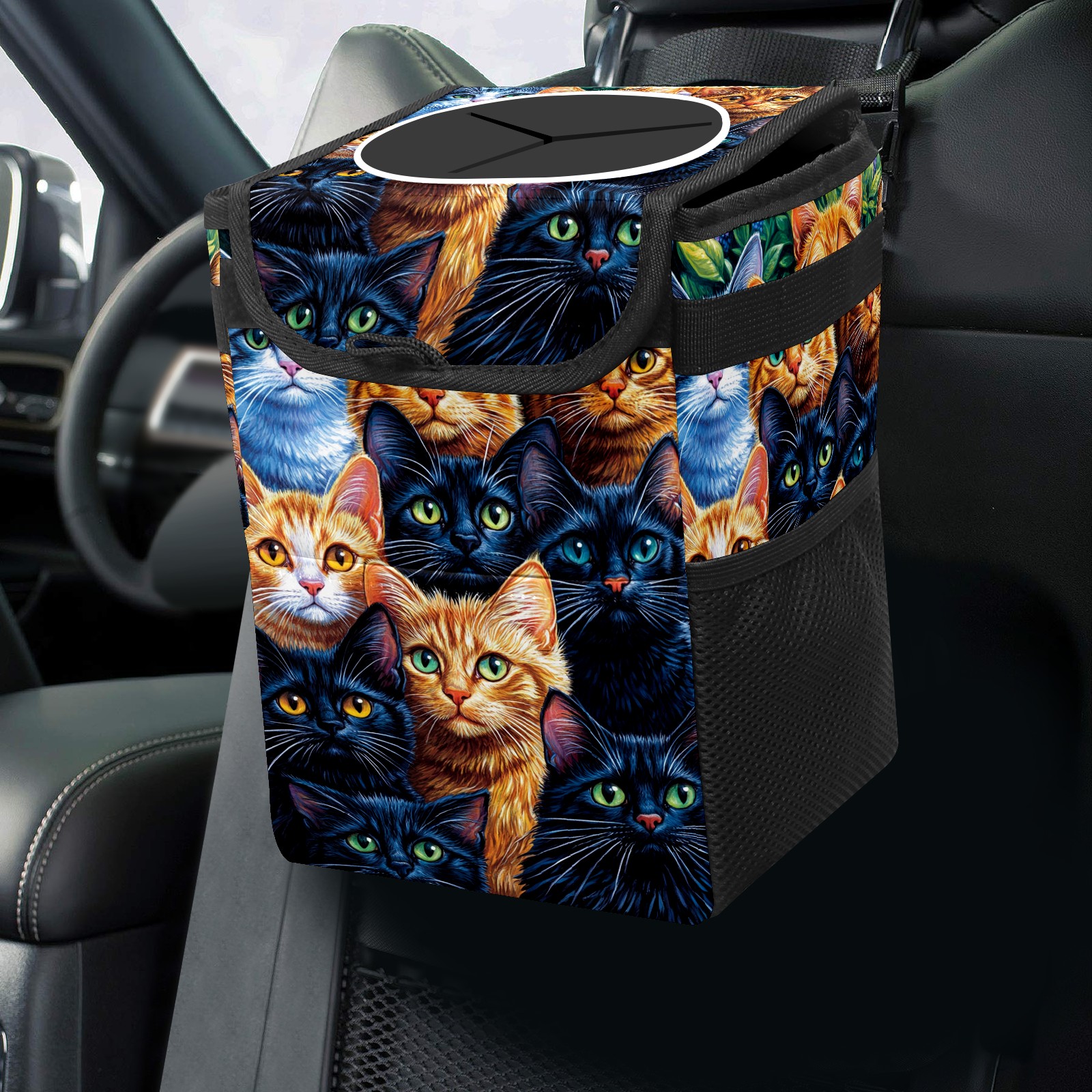 MSINMKOK Car Trash Bin with Lid Auto Garbage Bag Hanging for Back Seat - Leakproof Trash Can for Cars SUVs Trucks Vehicle Car Accessories (Cats Animal)
