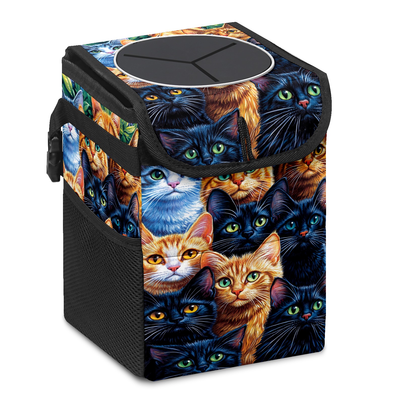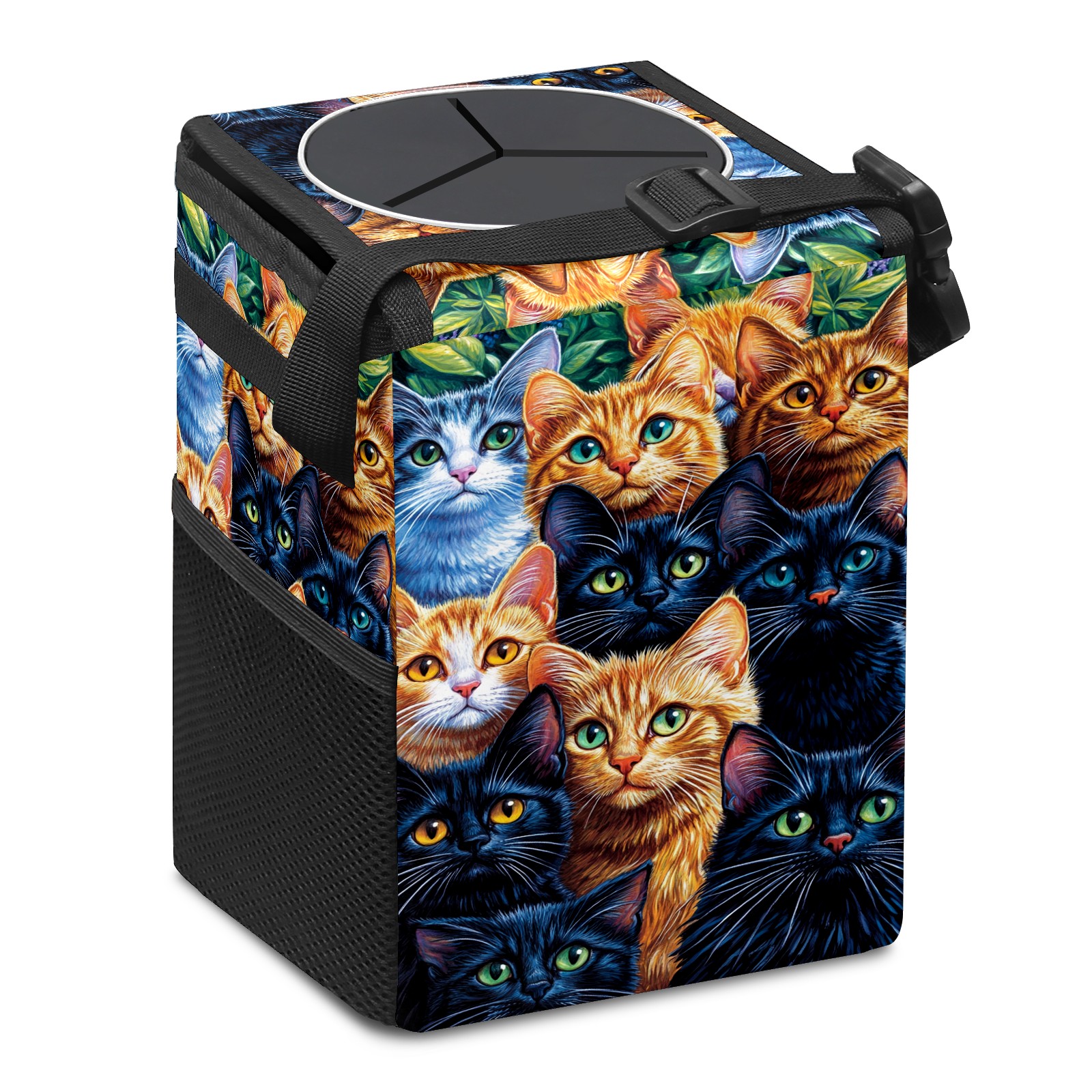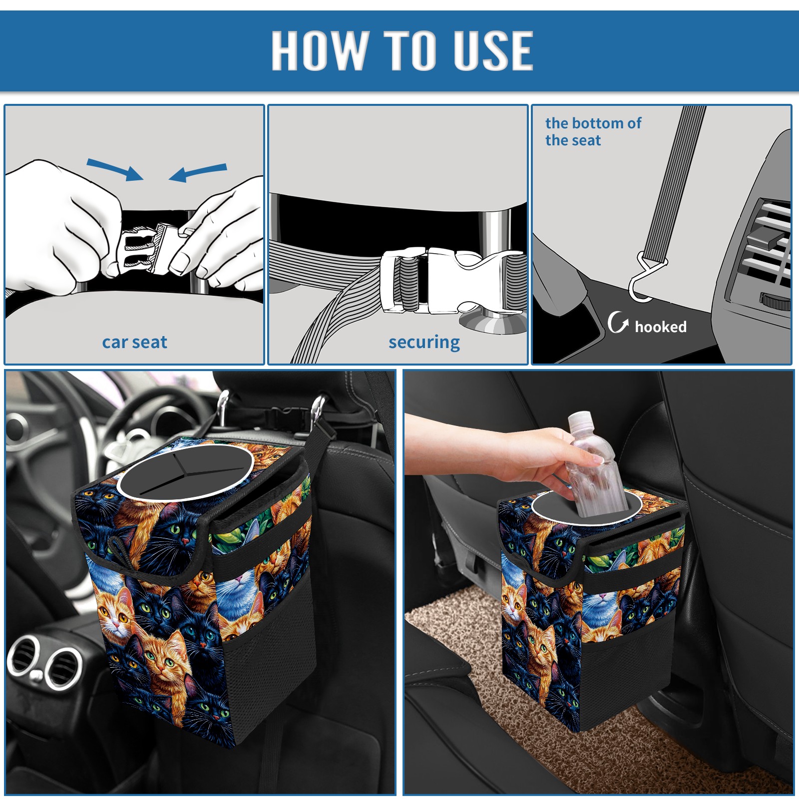 MSINMKOK Car Trash Bin with Lid Auto Garbage Bag Hanging for Back Seat - Leakproof Trash Can for Cars SUVs Trucks Vehicle Car Accessories (Cats Animal)