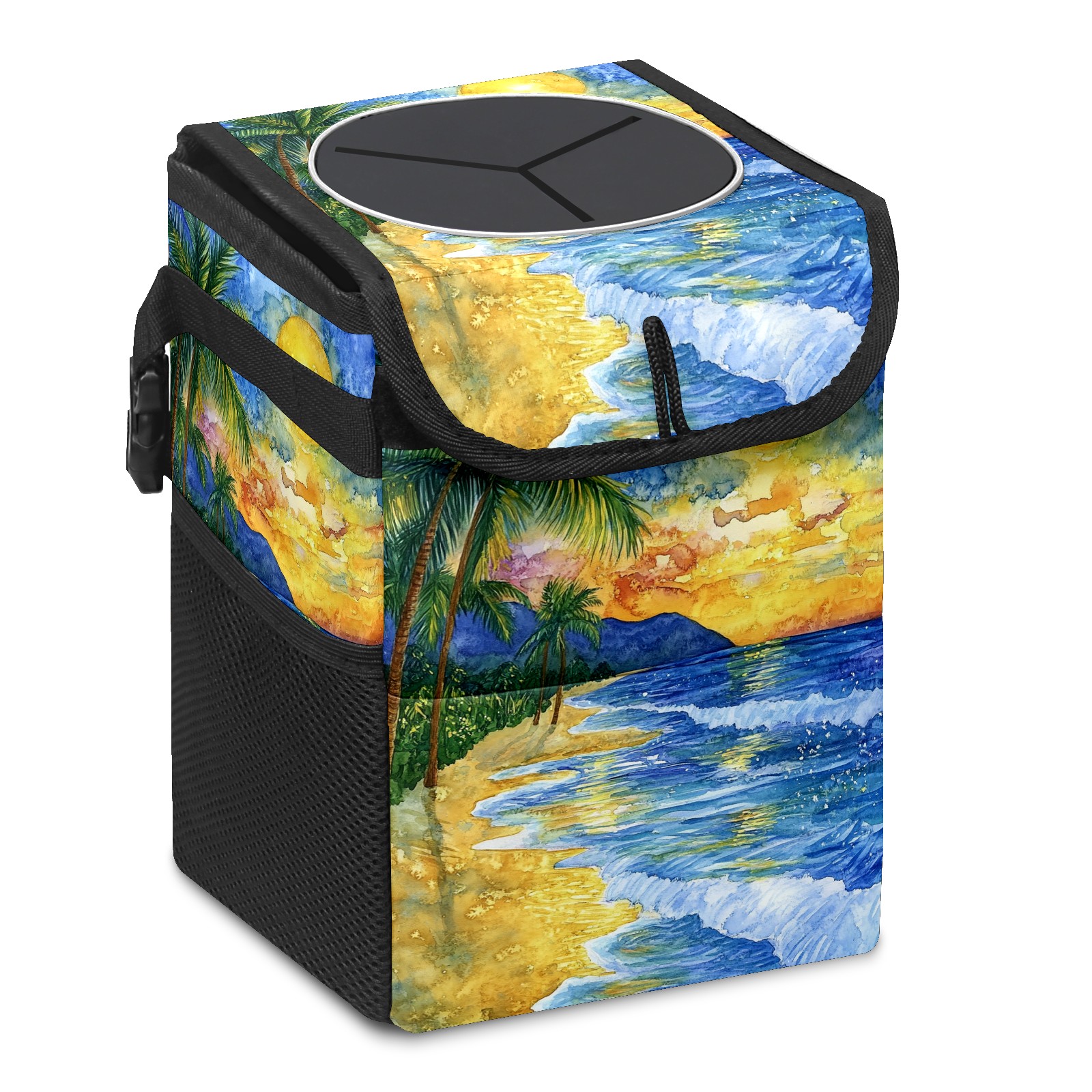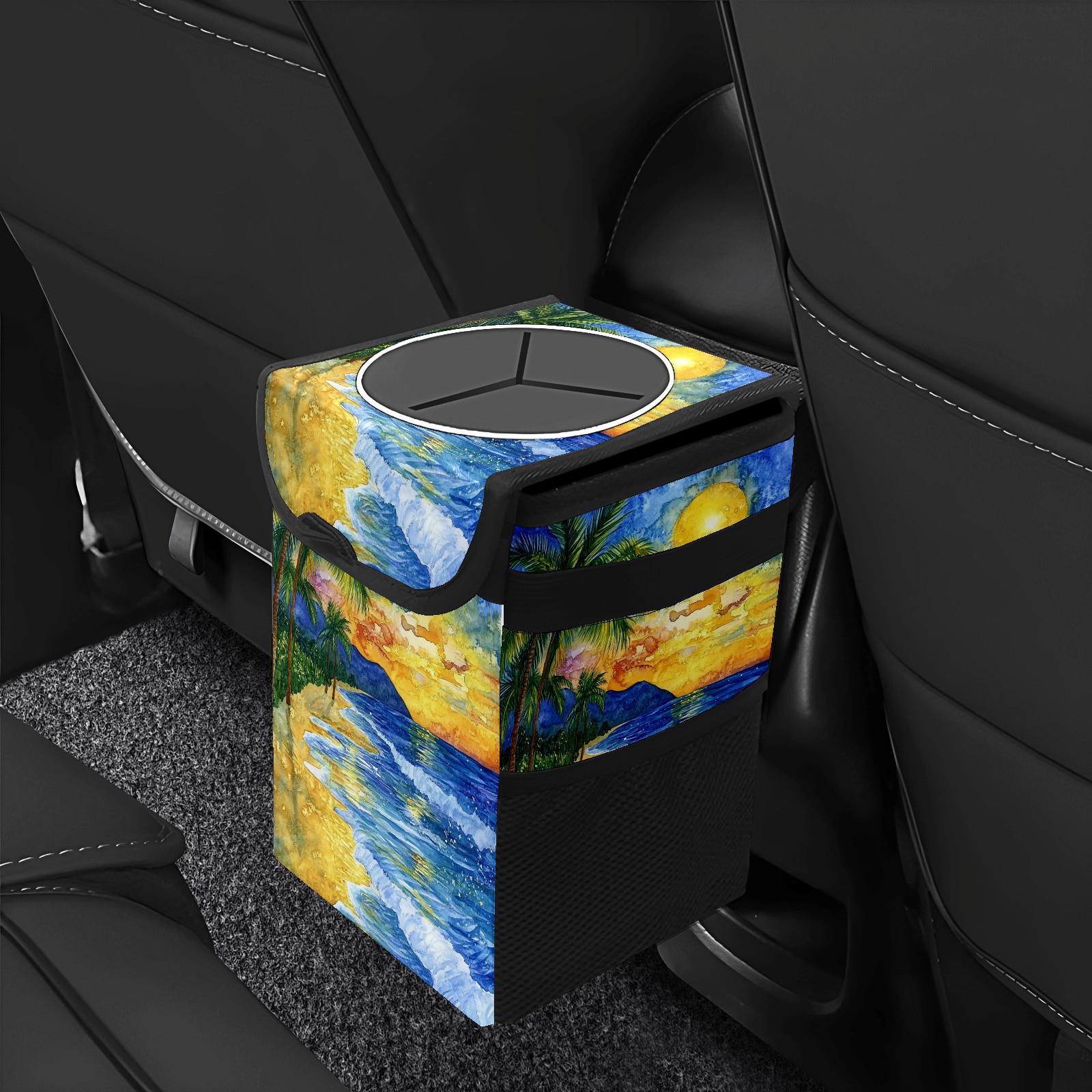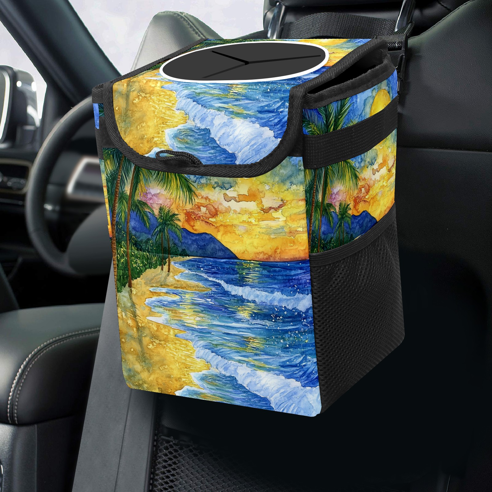 MSINMKOK Car Trash Bin with Lid Auto Garbage Bag Hanging for Back Seat - Leakproof Trash Can for Cars SUVs Trucks Vehicle Car Accessories (Beach Sunset)