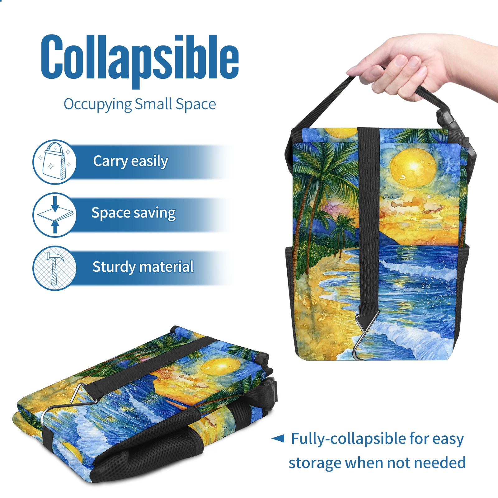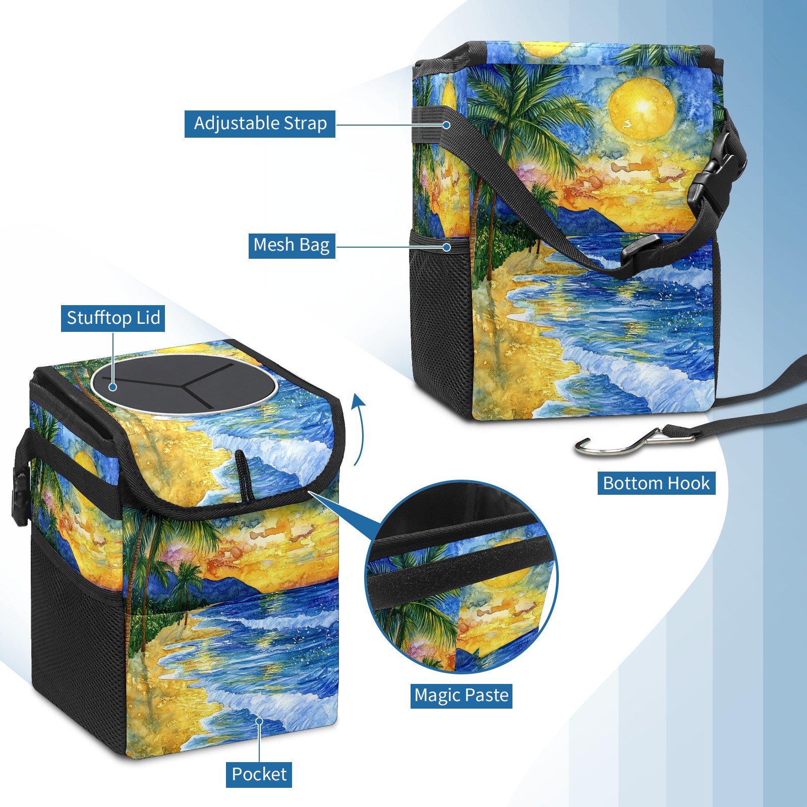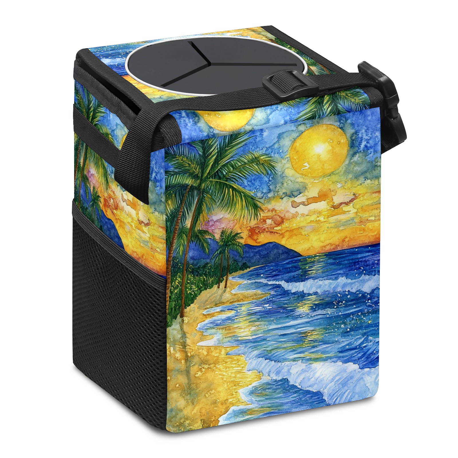 MSINMKOK Car Trash Bin with Lid Auto Garbage Bag Hanging for Back Seat - Leakproof Trash Can for Cars SUVs Trucks Vehicle Car Accessories (Beach Sunset)