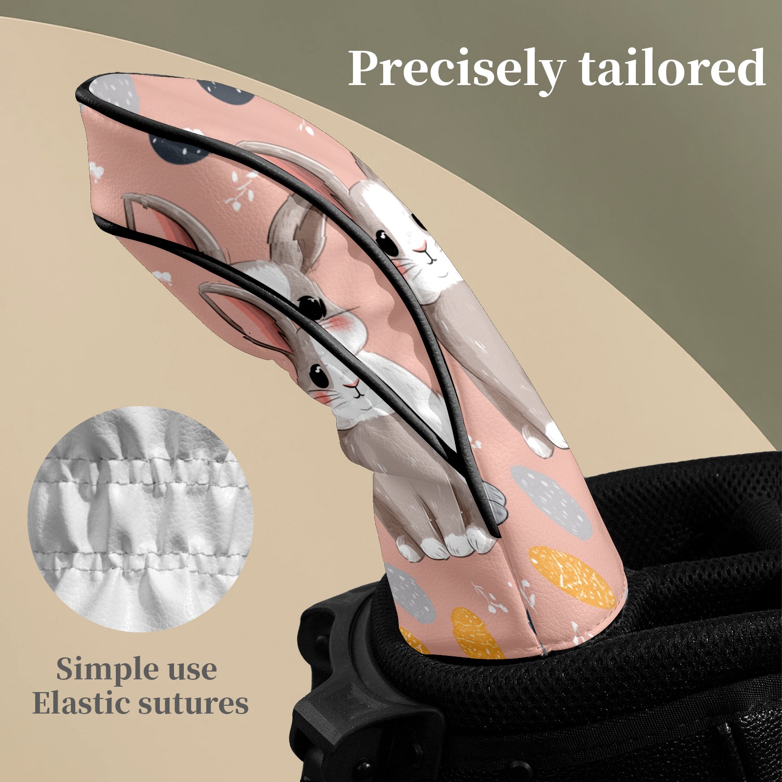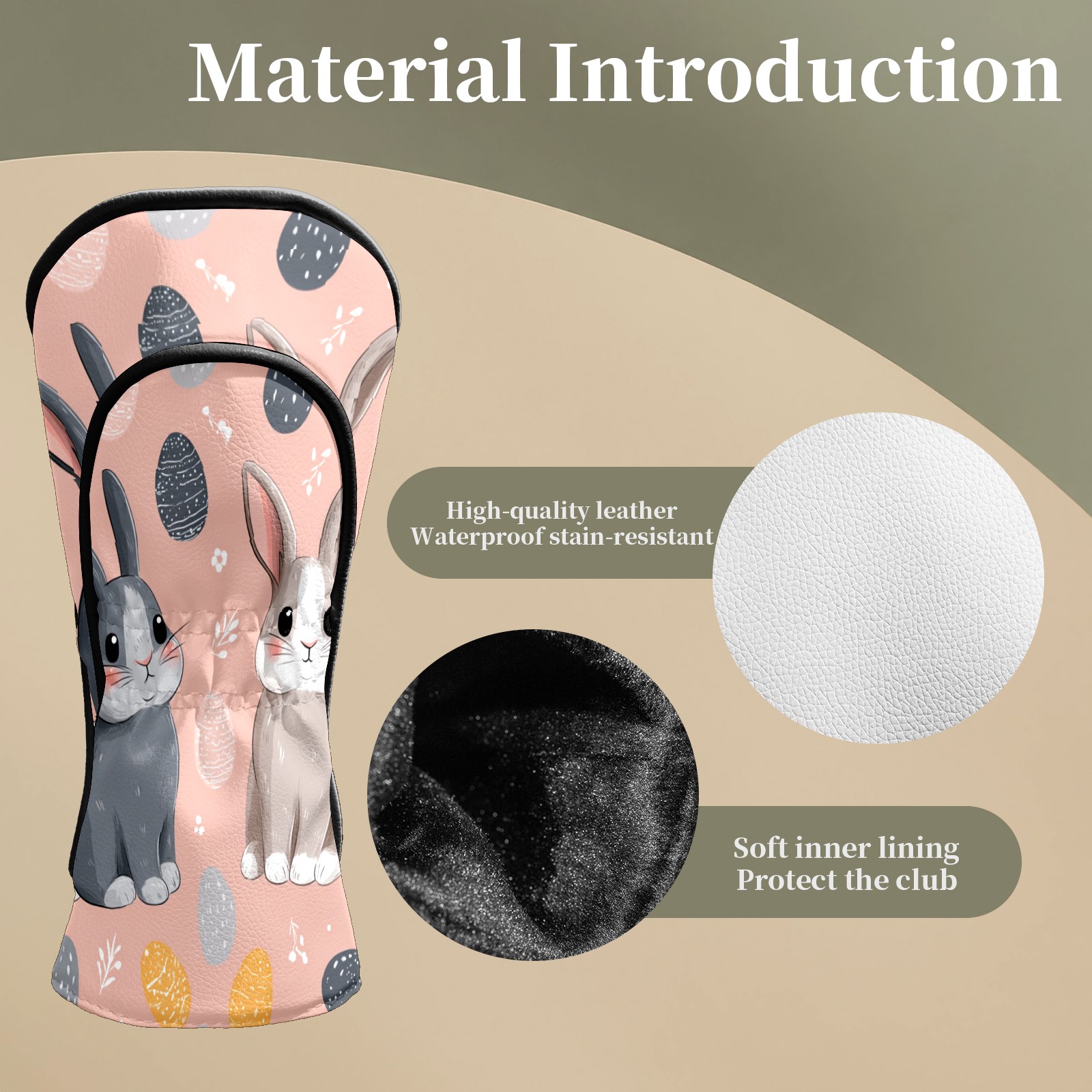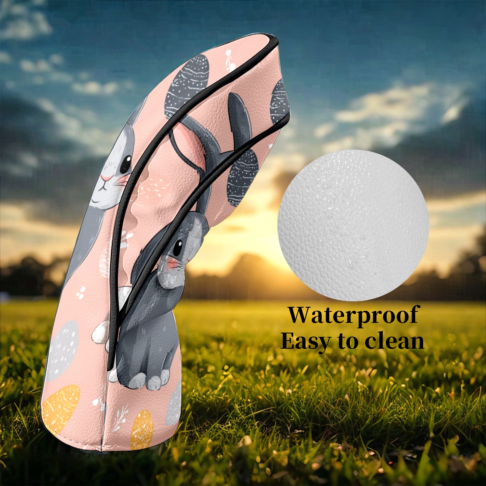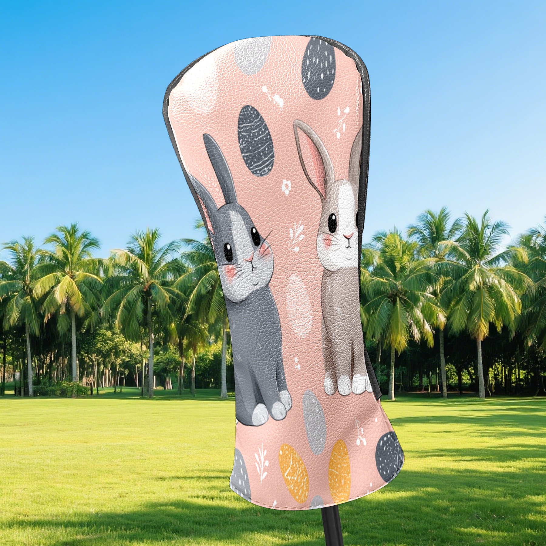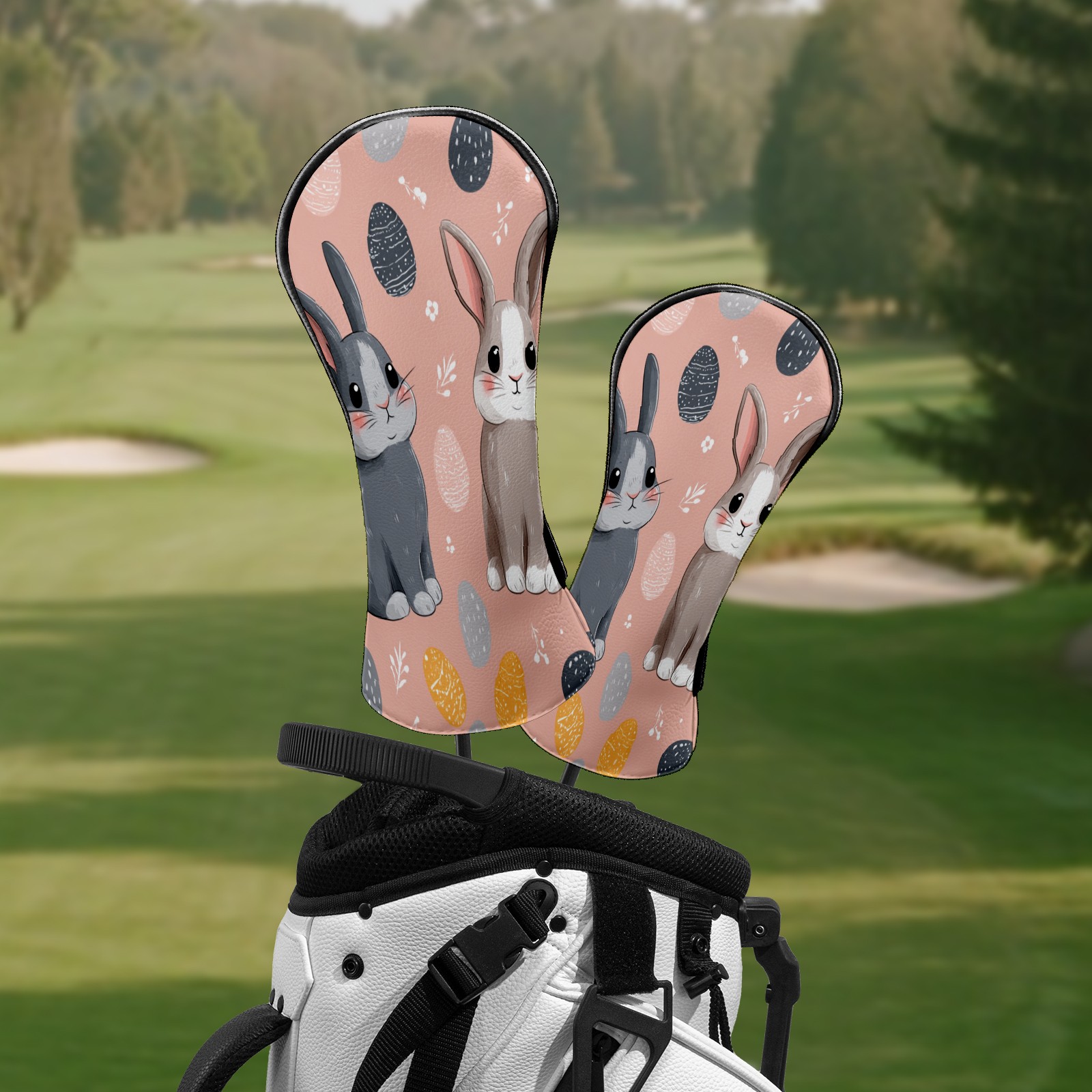 Golf Club Covers Pink Twin Rabbits Driver Head cover, Leather Golf Club Head Covers for Driver Fairway Woods Waterproof Golf Headcovers with Anti-Scratch Lining Fits Most Clubs