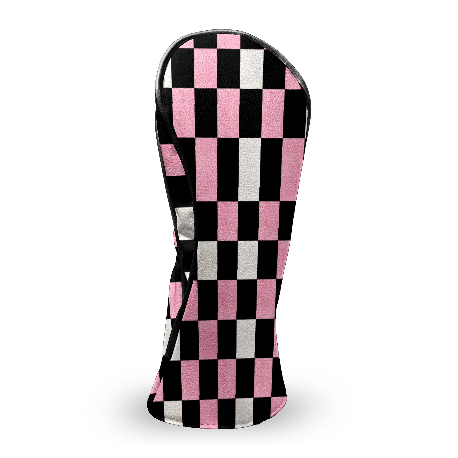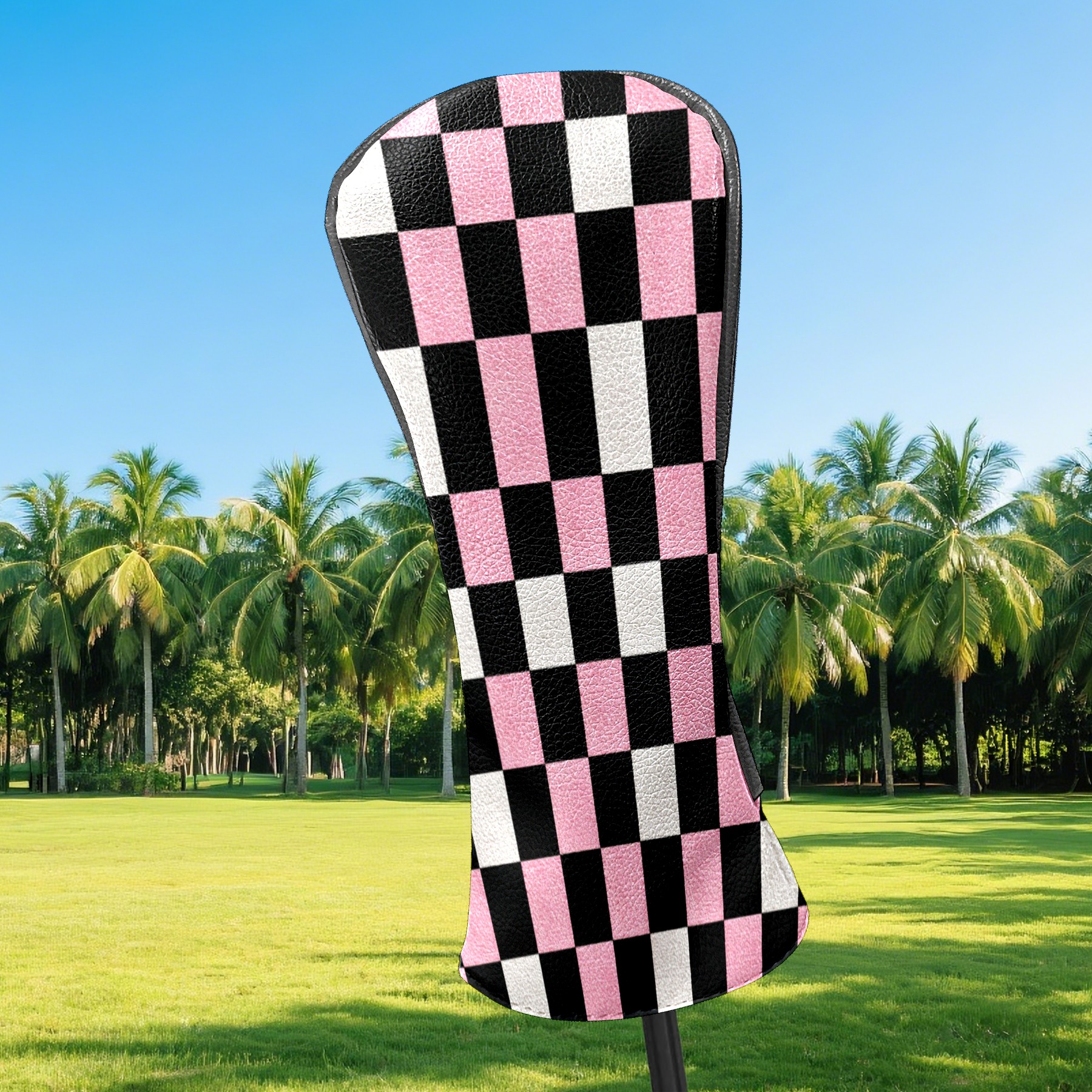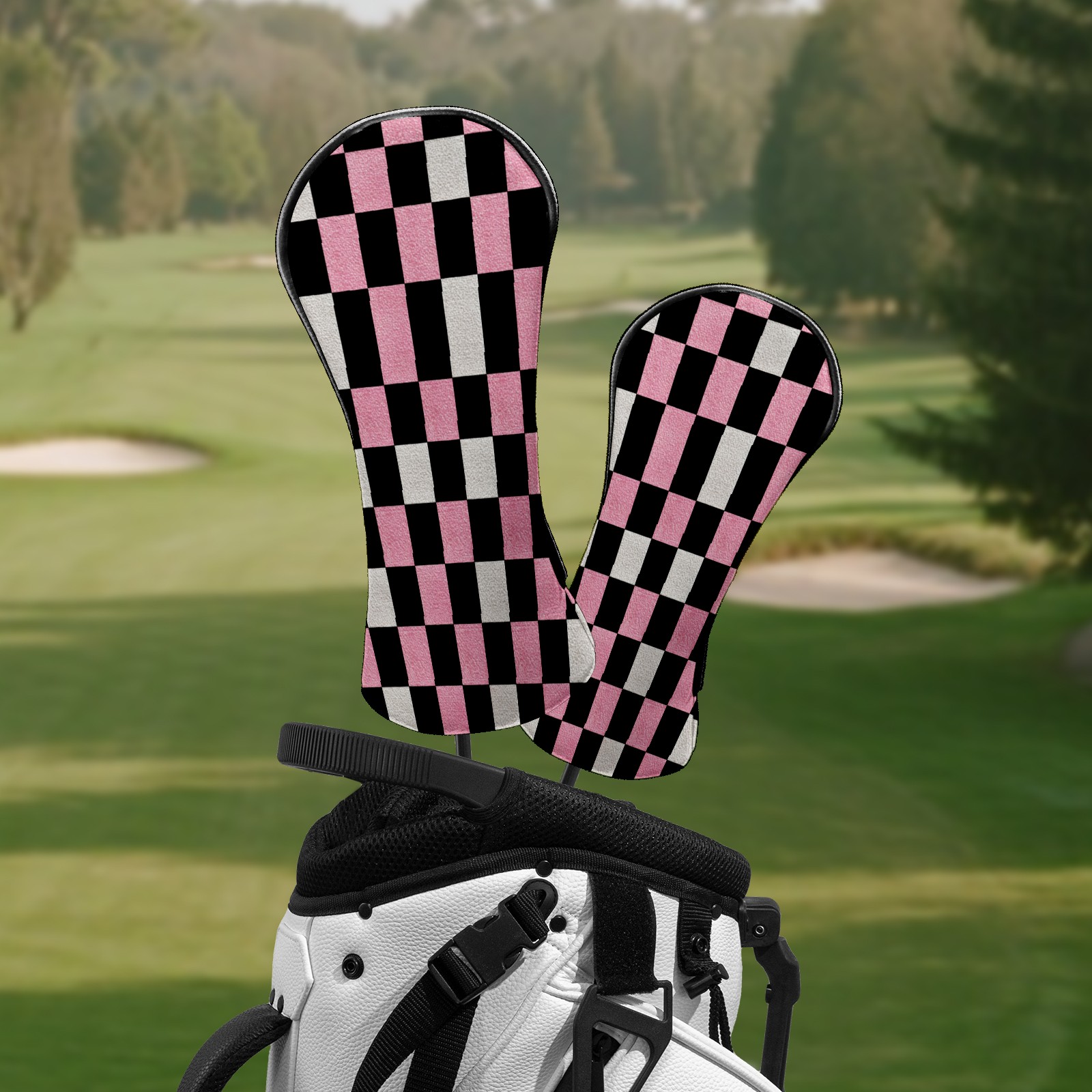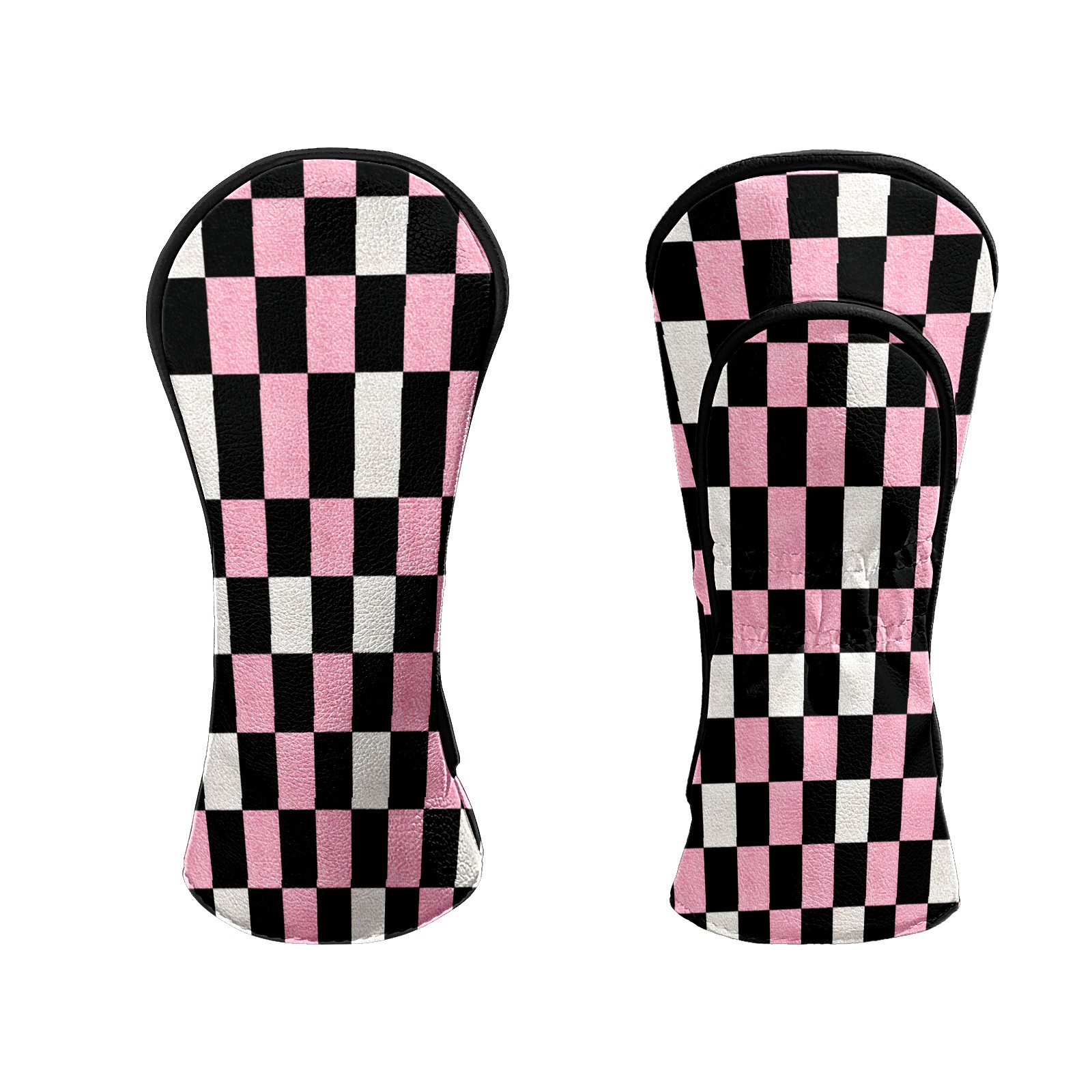 Golf Club Covers Pink Black Checkered Pattern Driver Head cover, Leather Golf Club Head Covers for Driver Fairway Woods Waterproof Golf Headcovers with Anti-Scratch Lining Fits Most Clubs