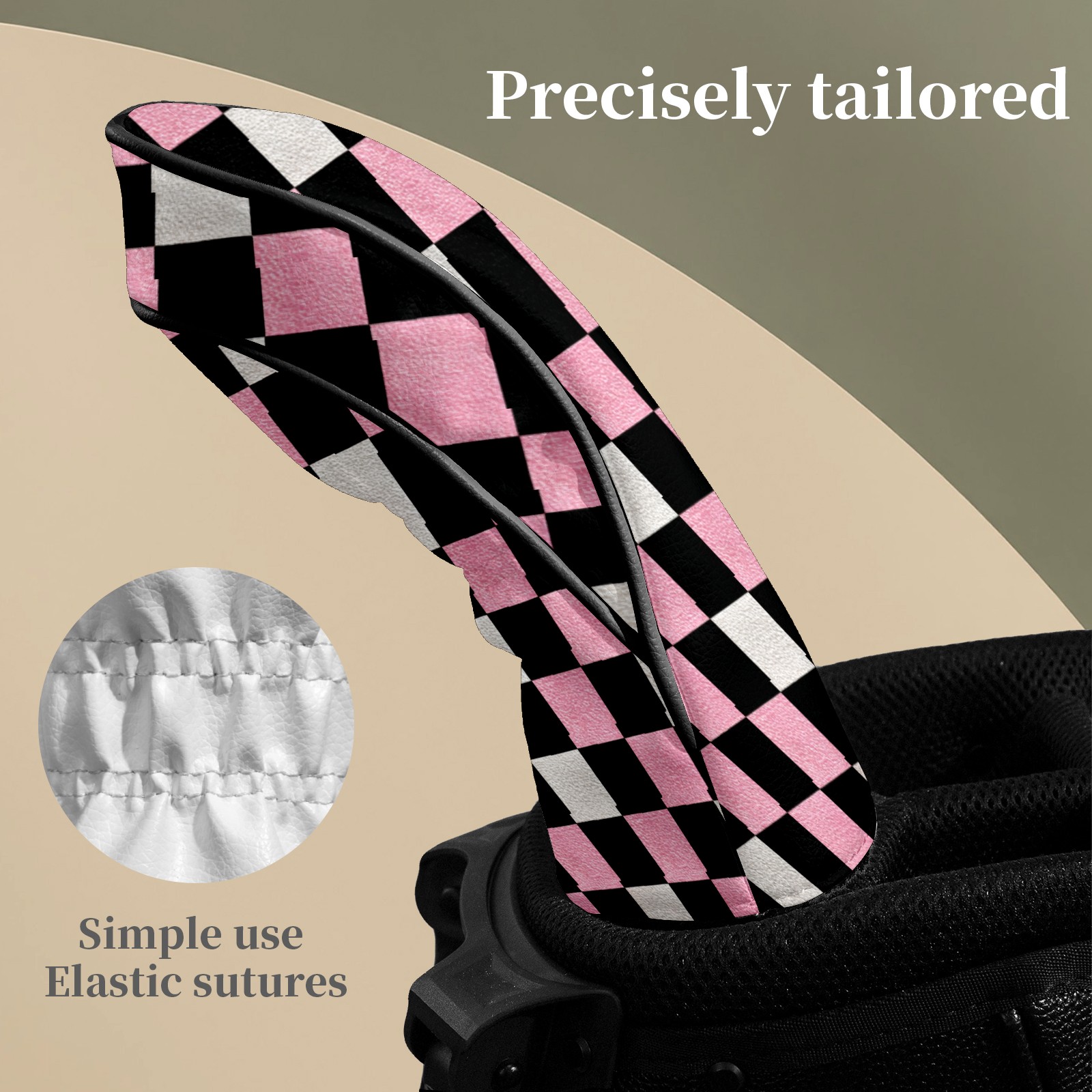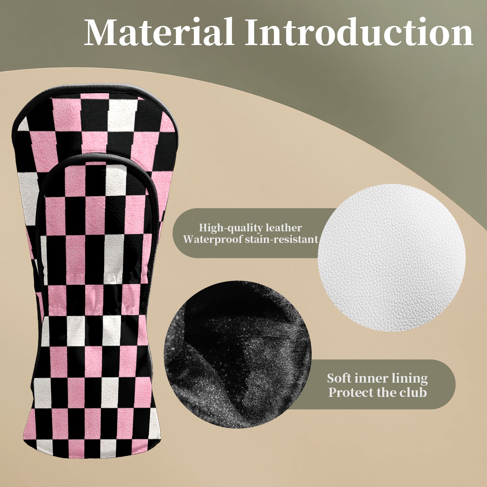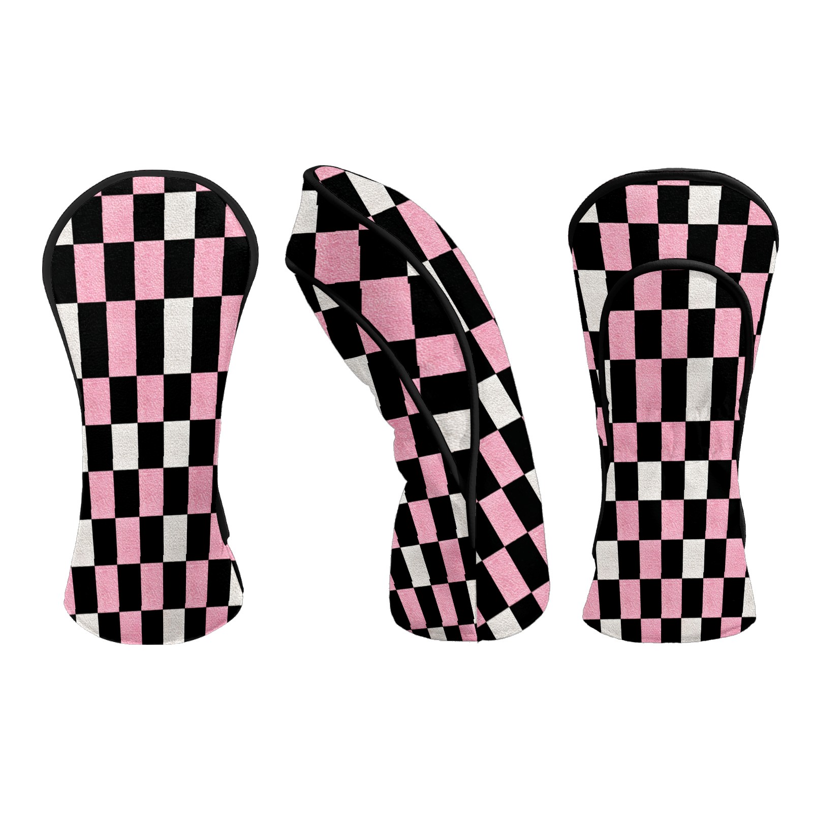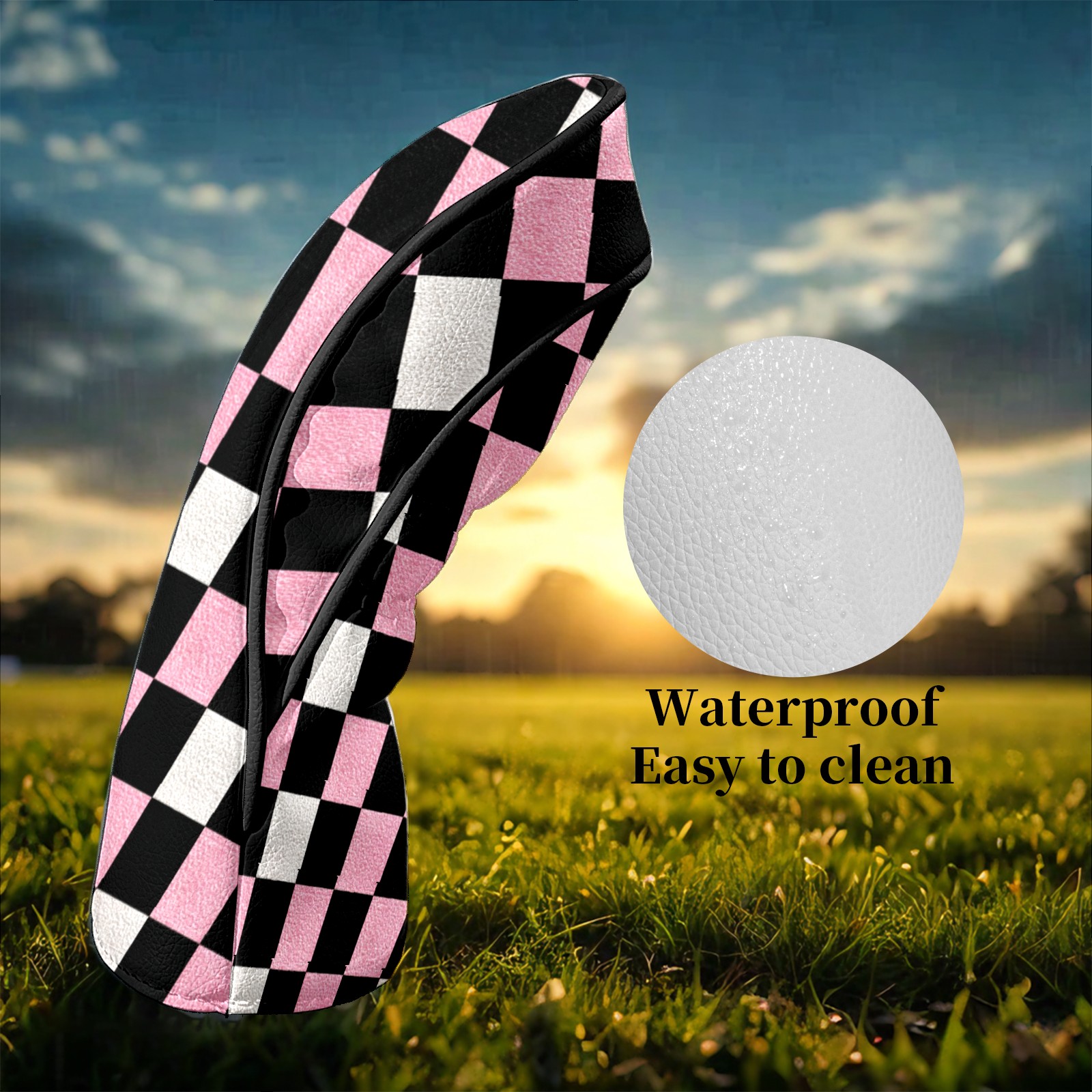 Golf Club Covers Pink Black Checkered Pattern Driver Head cover, Leather Golf Club Head Covers for Driver Fairway Woods Waterproof Golf Headcovers with Anti-Scratch Lining Fits Most Clubs