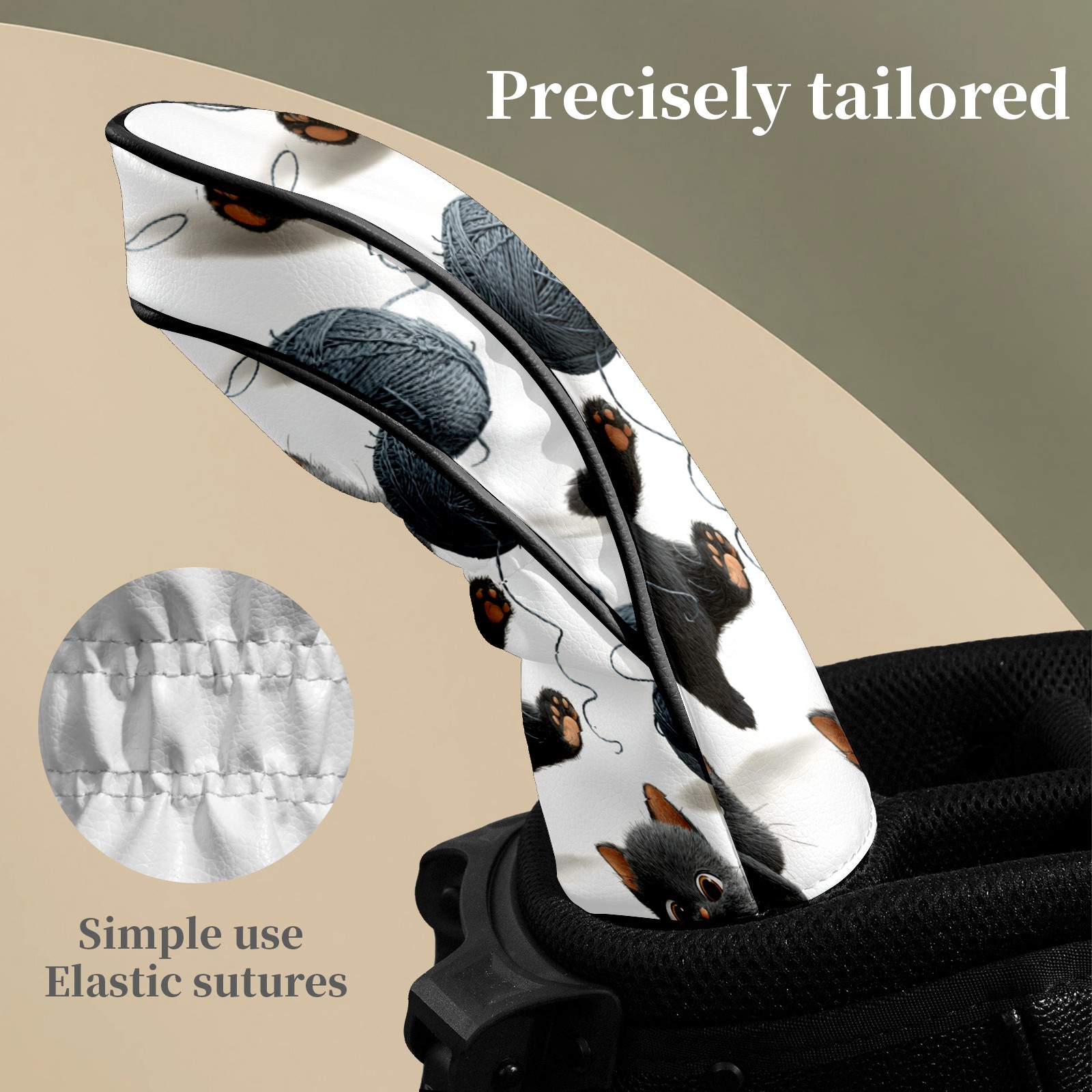 Golf Club Covers Multiple Cat Yarn Balls Driver Head cover, Leather Golf Club Head Covers for Driver Fairway Woods Waterproof Golf Headcovers with Anti-Scratch Lining Fits Most Clubs