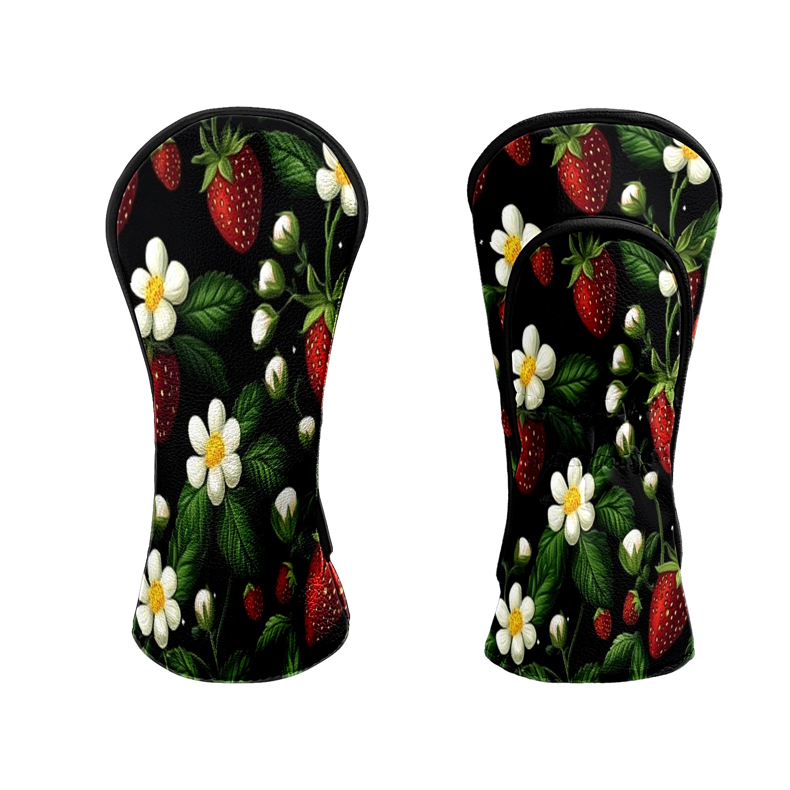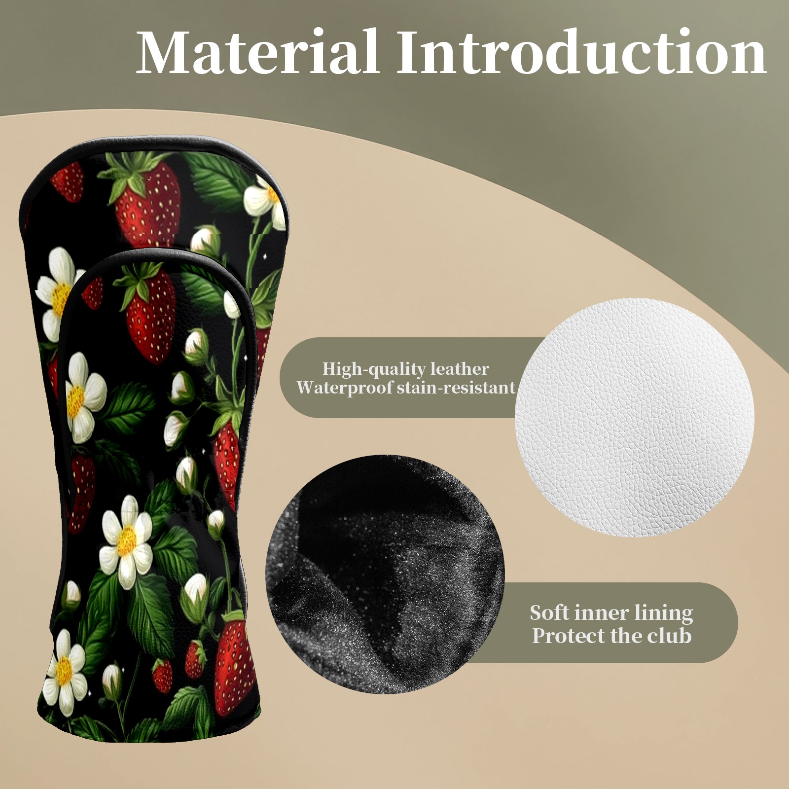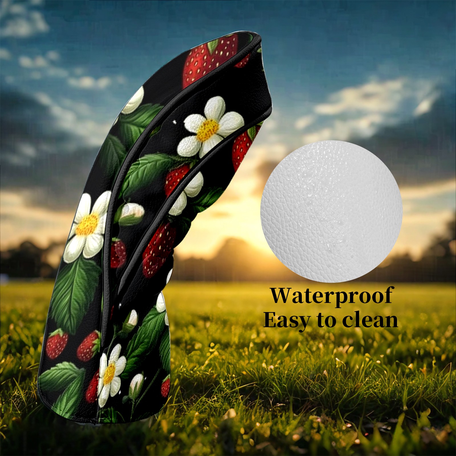 Golf Club Head Covers Strawberry & Daisy Waterproof Leather Golf Head Covers for Men Women Driver Head Cover Fairway Headcover for Golf Lovers