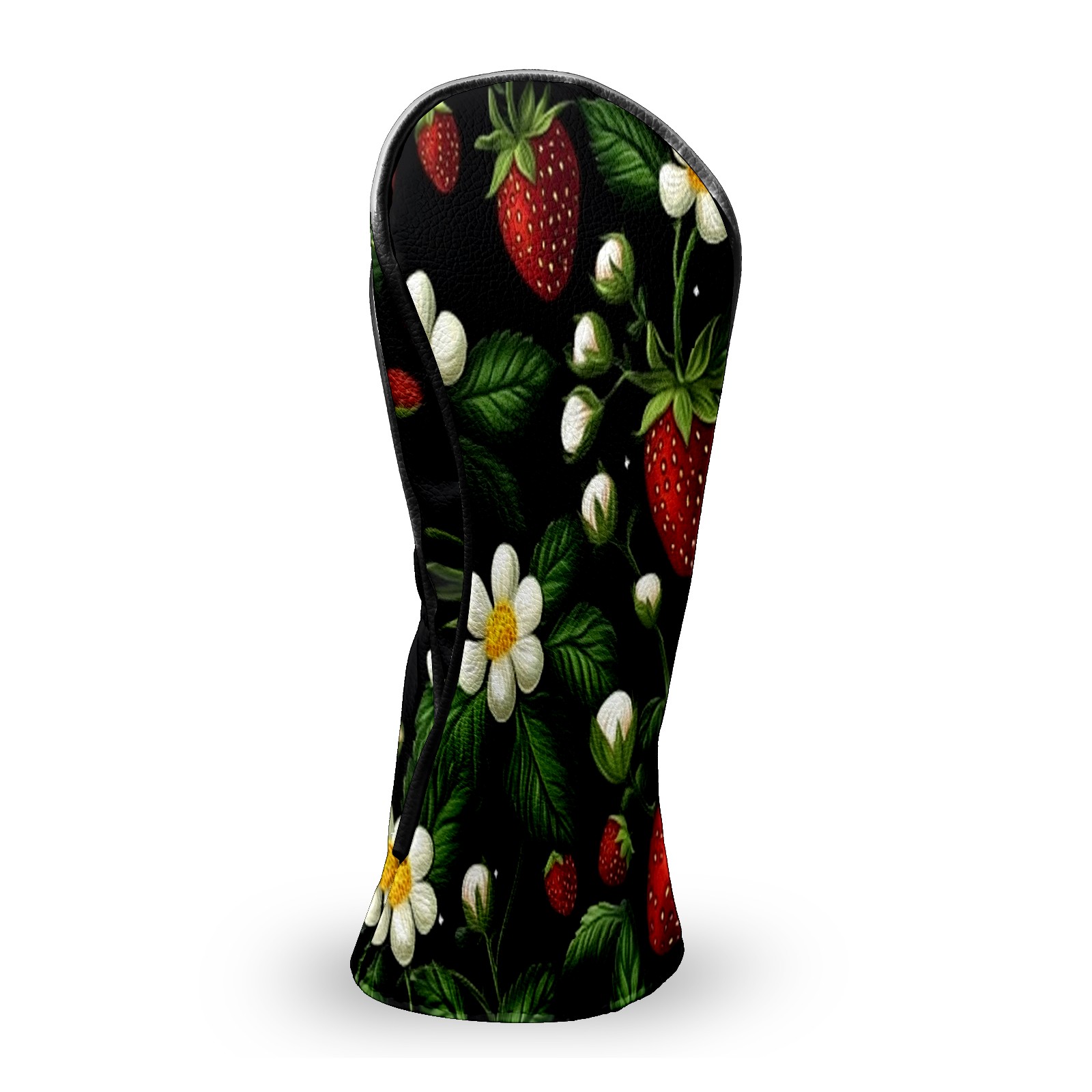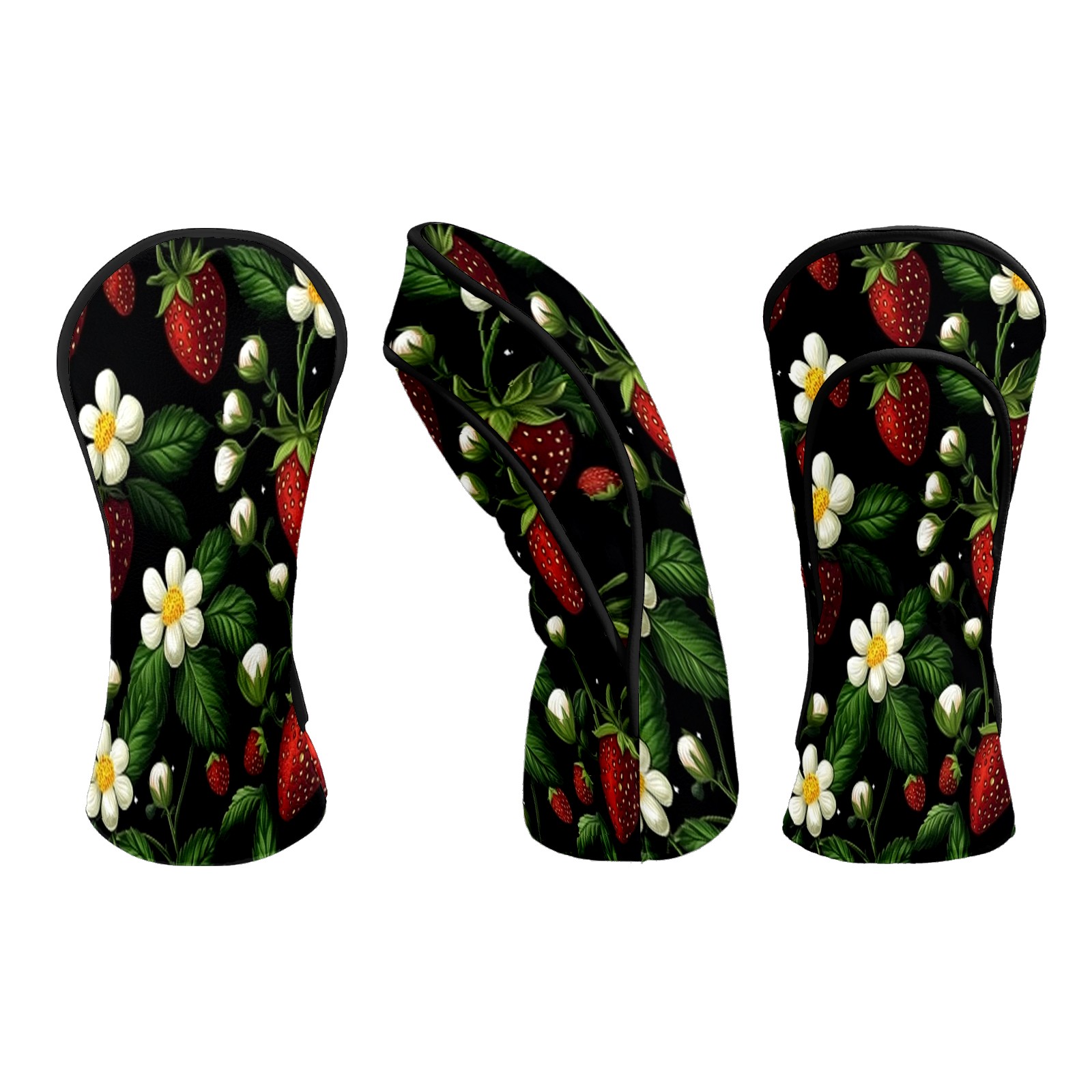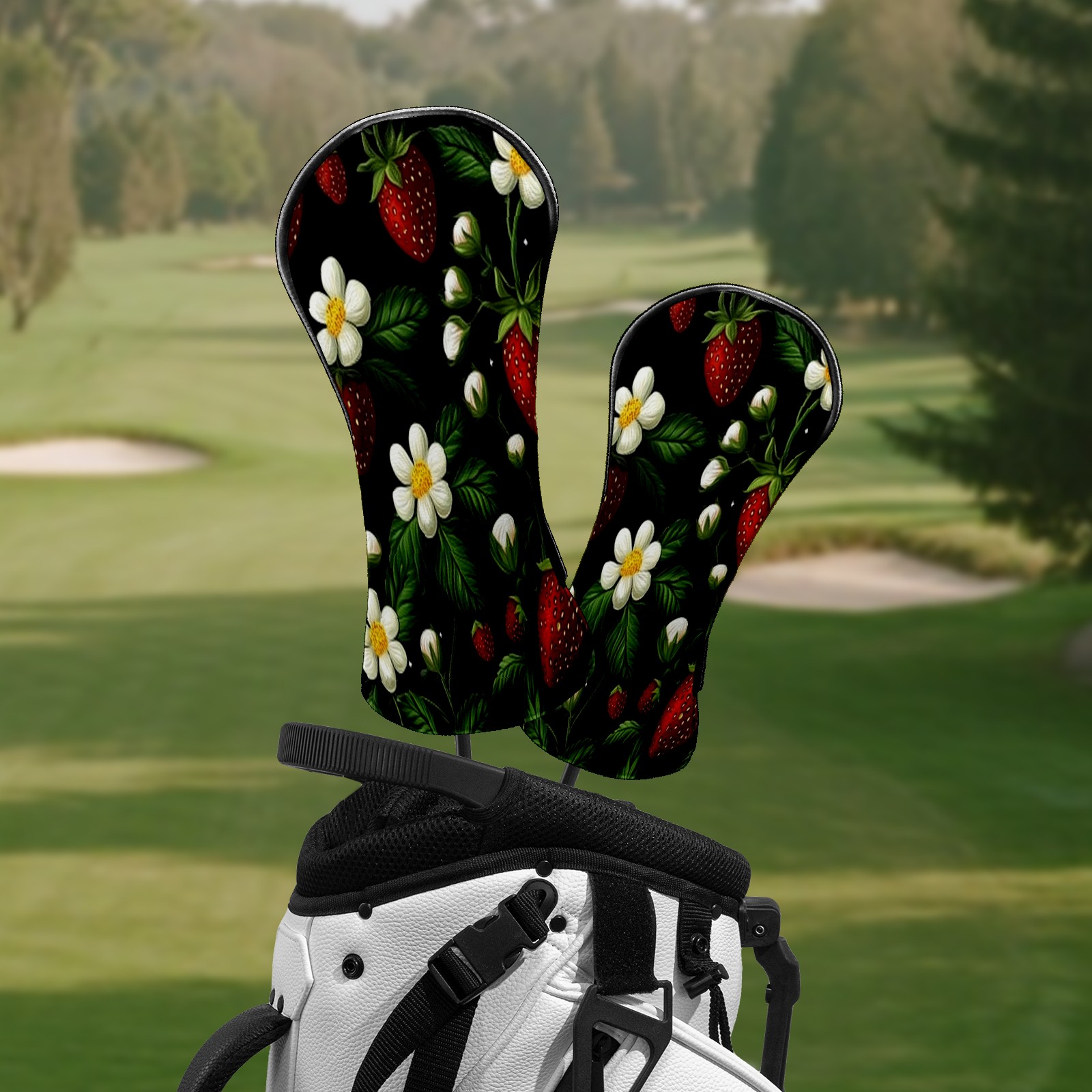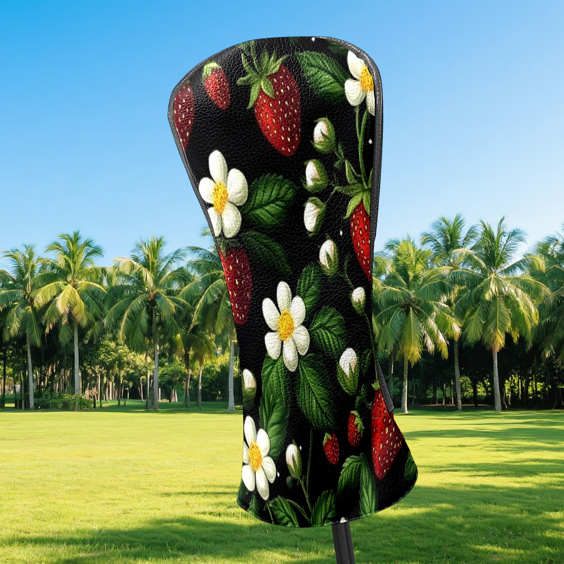 Golf Club Head Covers Strawberry & Daisy Waterproof Leather Golf Head Covers for Men Women Driver Head Cover Fairway Headcover for Golf Lovers
