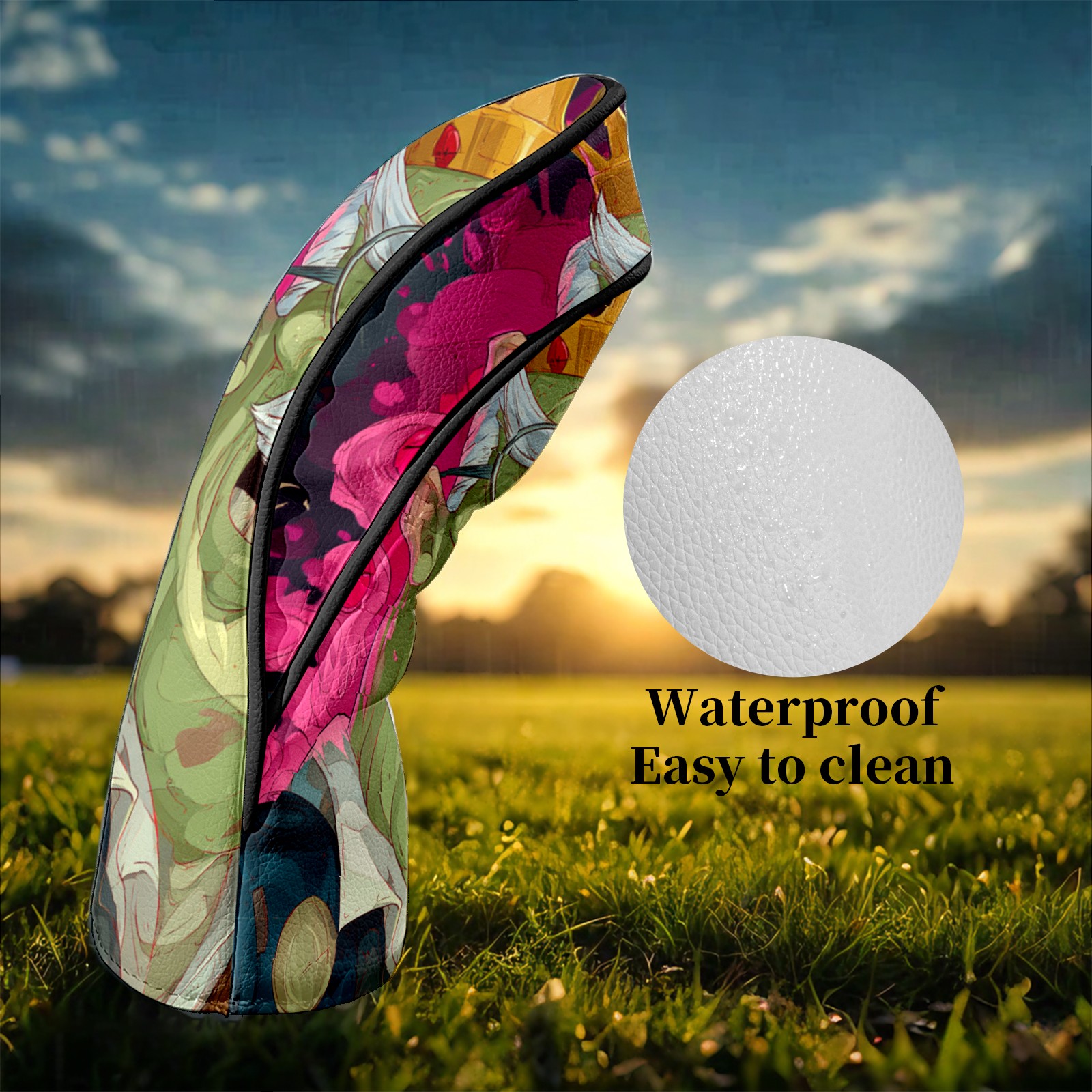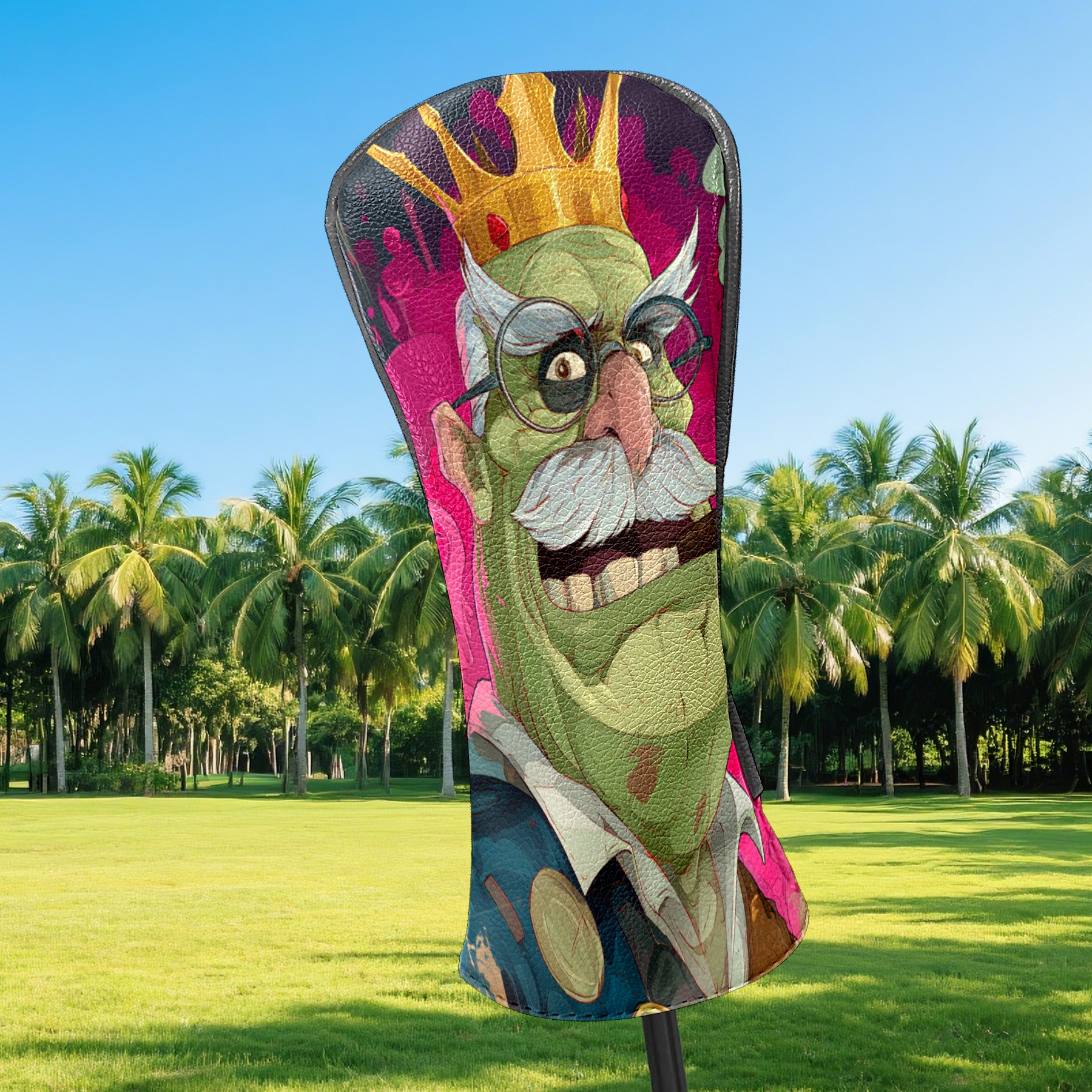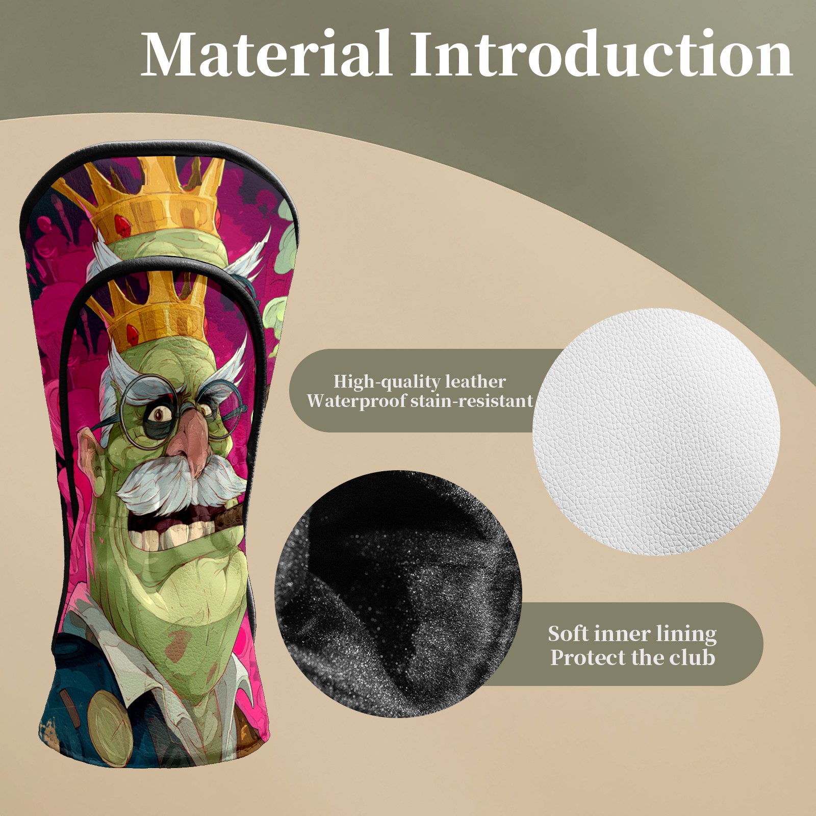 Golf Club Head Covers Funny Frog With Crown Waterproof Leather Golf Head Covers for Men Women Driver Head Cover Fairway Headcover for Golf Lovers