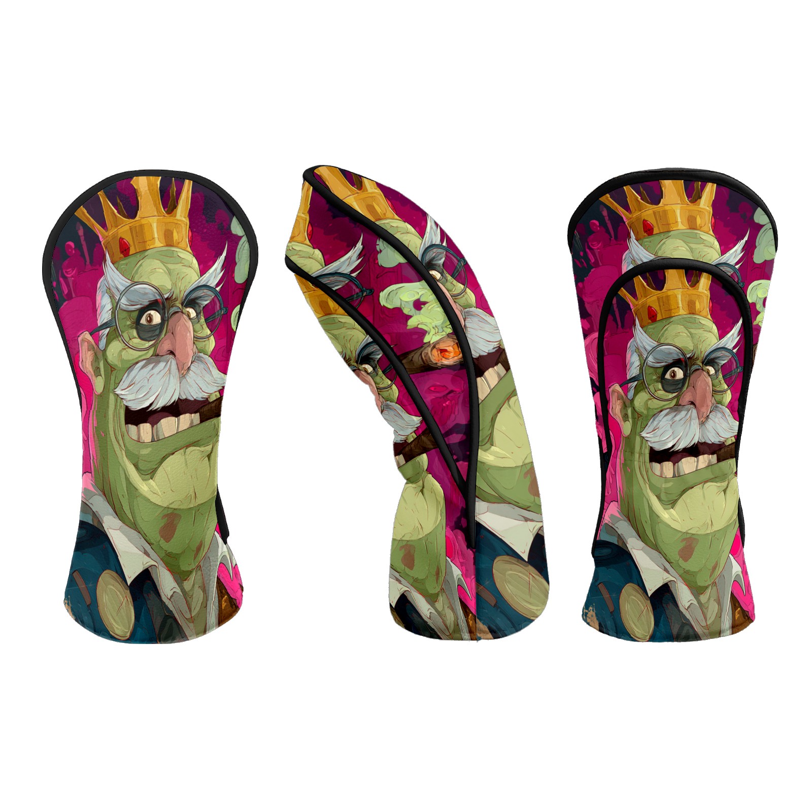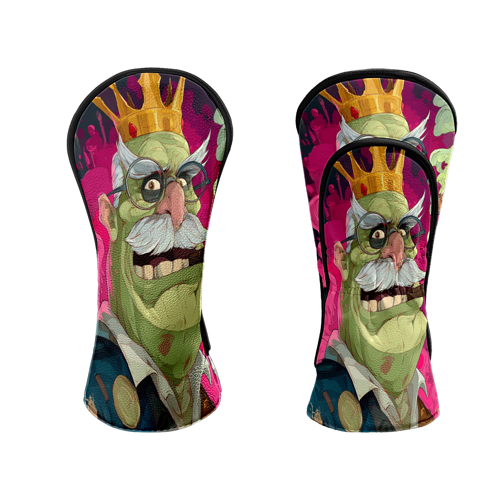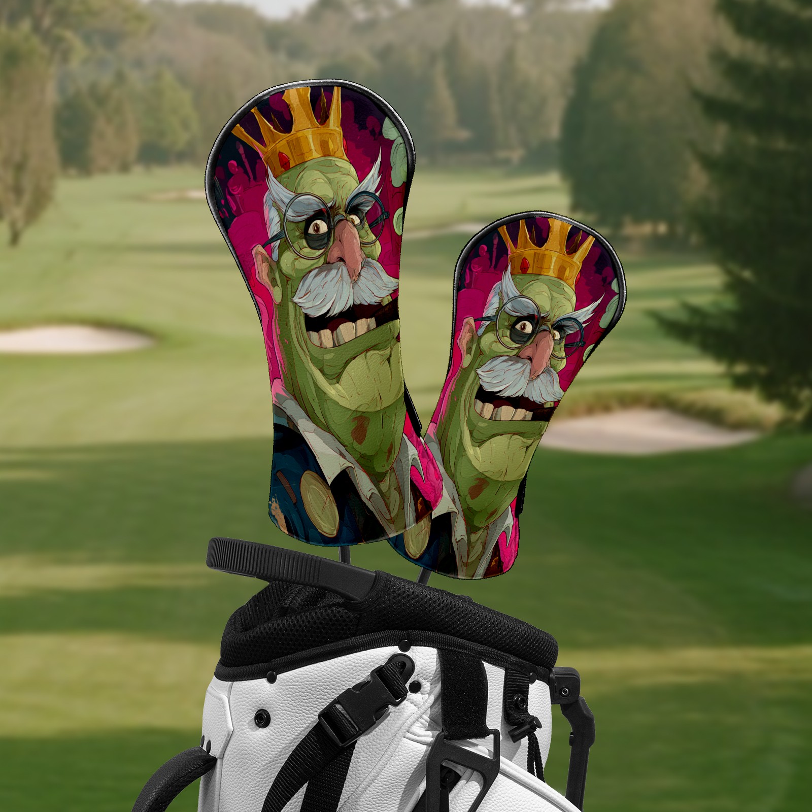 Golf Club Head Covers Funny Frog With Crown Waterproof Leather Golf Head Covers for Men Women Driver Head Cover Fairway Headcover for Golf Lovers