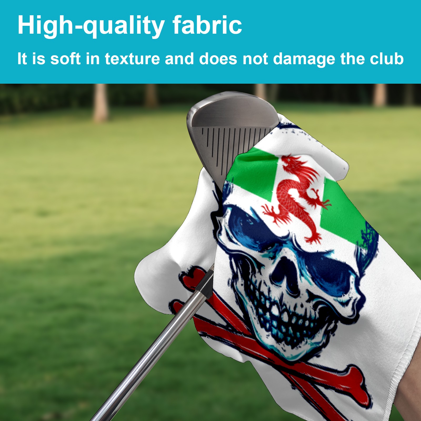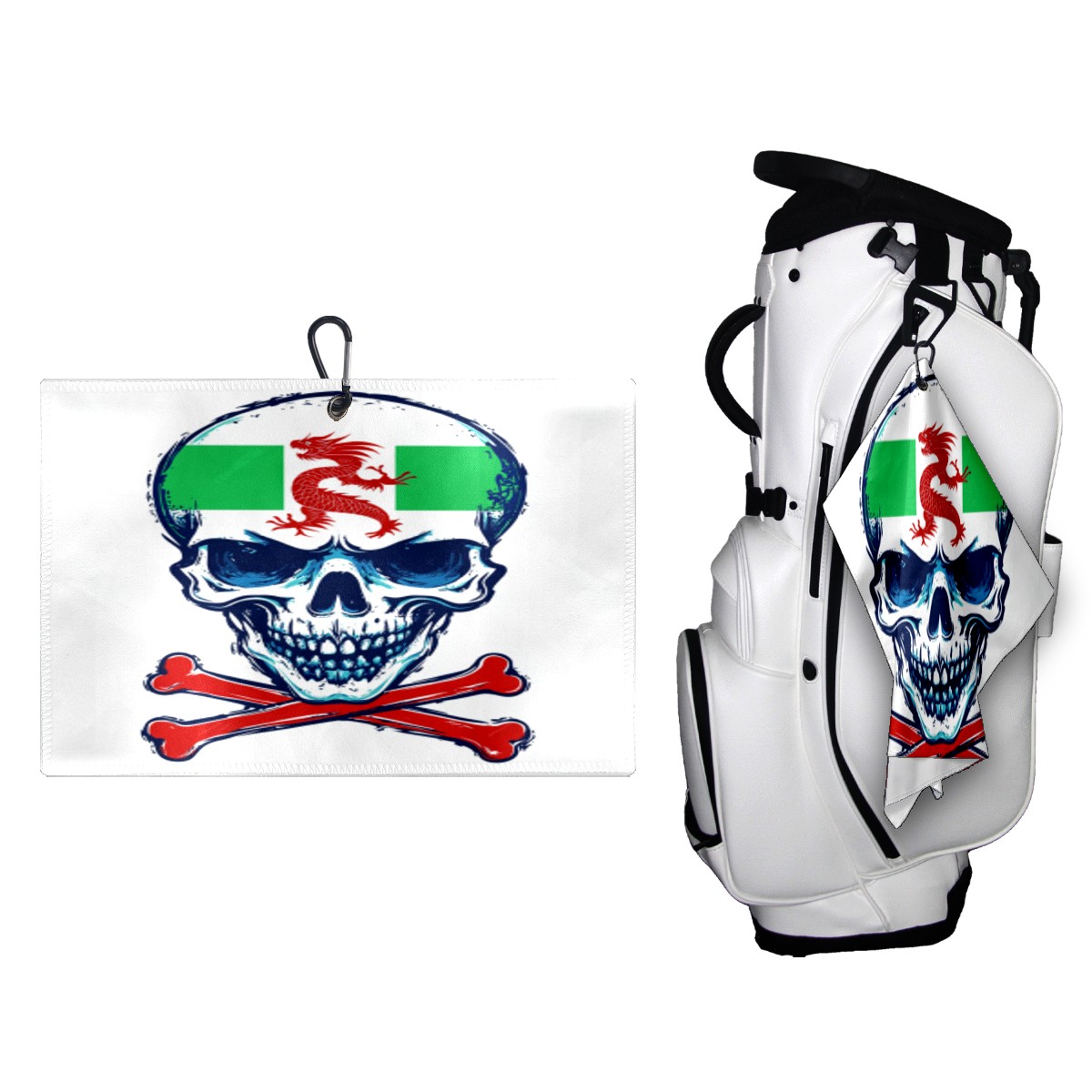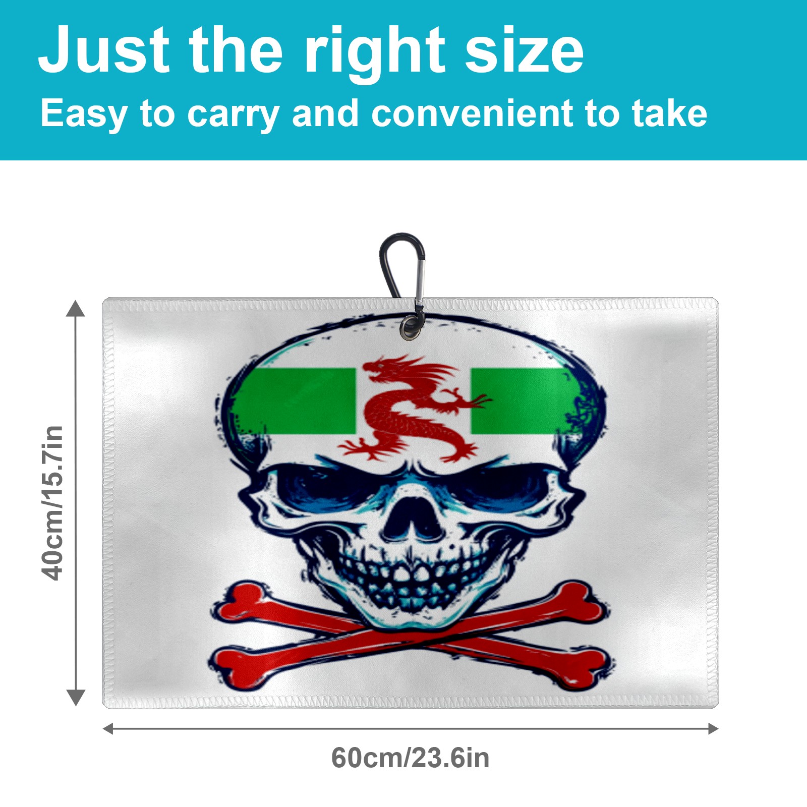 Dragon Emblem Skull Golf Towel 15.7inx23.6in Microfiber Waffle Pattern with Carabiner Clip, High Absorbency & Quick Dry, Golf Accessories for Bags