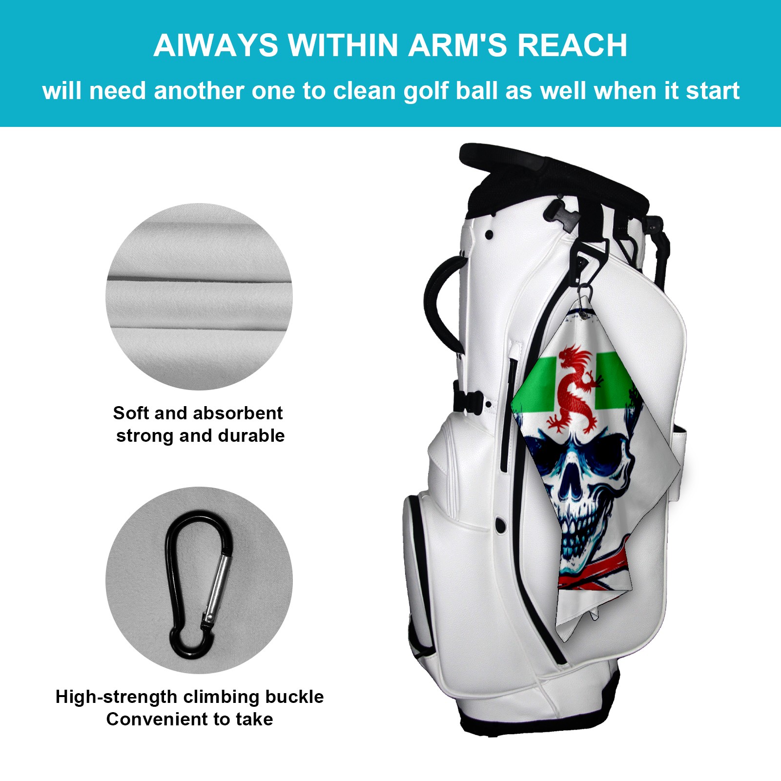 • <p>Elevate your golfing experience with our premium 40cm x 60cm (15.7inx23.6in) Golf Towel! Designed to deliver ample coverage for cleaning clubs and balls, yet remains compact enough to slide effortlessly into your golf bag without taking up excess space.Crafted from high - quality polyester, this towel boasts exceptional absorbency to tackle wetness in a flash, and rapid dryness to avoid lingering dampness or unpleasant odors. Whether you’re wiping down clubs after a muddy shot or drying golf balls on the green, it performs flawlessly.The built - in multi - functional carabiner clip is a game - changer! Attach it to your golf bag, belt loop, or cart with ease, ensuring quick access whenever you need to tidy up. Lightweight, durable, and designed for on - course convenience, it’s the must - have accessory for serious golfers.Upgrade your golf gear today – keep your equipment clean, dry, and always within reach!</p>