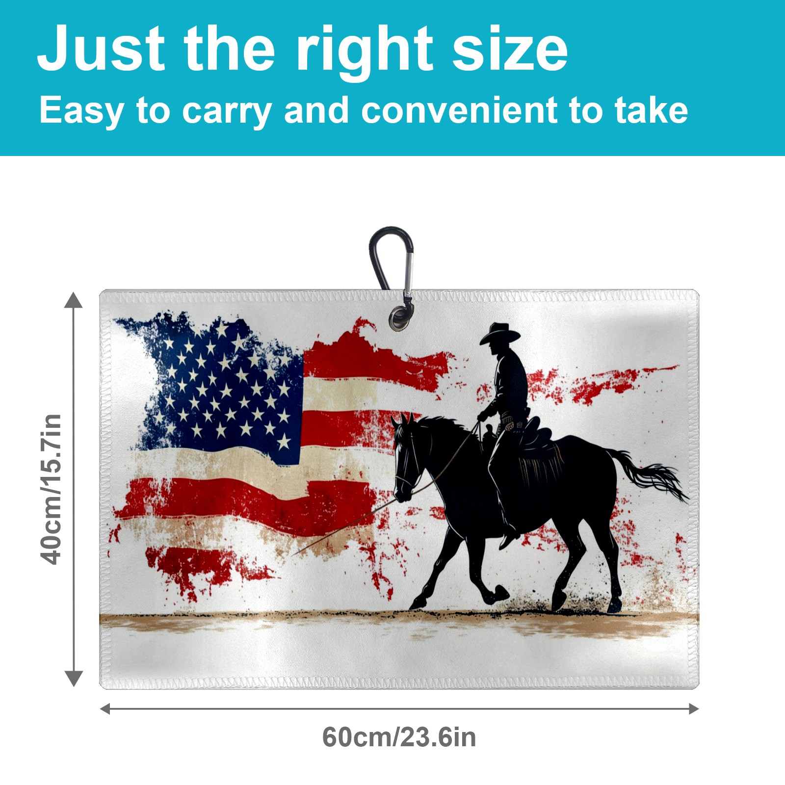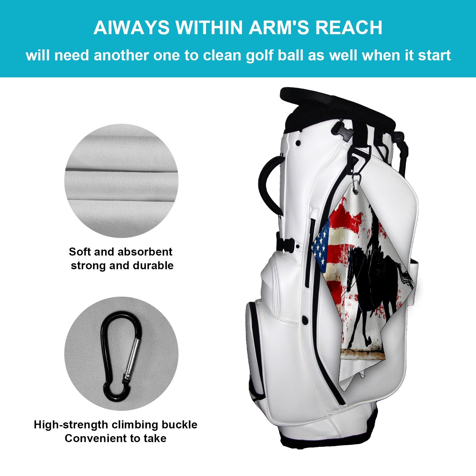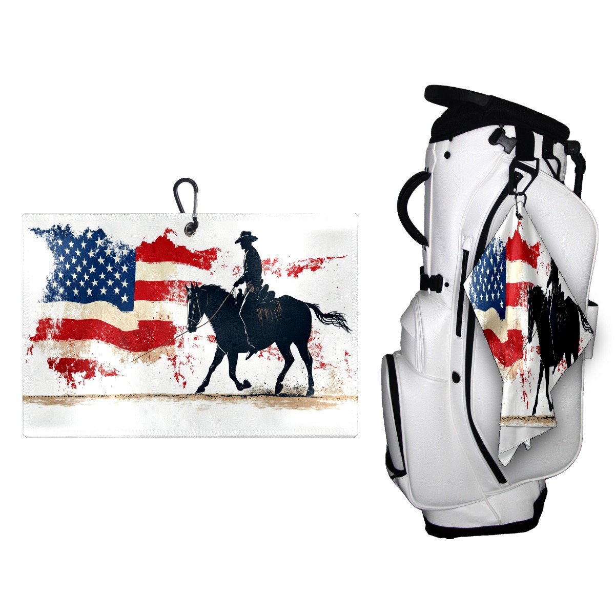 American Cowboy Silhouette Golf Towel 15.7inx23.6in Microfiber Waffle Pattern with Carabiner Clip, High Absorbency & Quick Dry, Golf Accessories for Bags