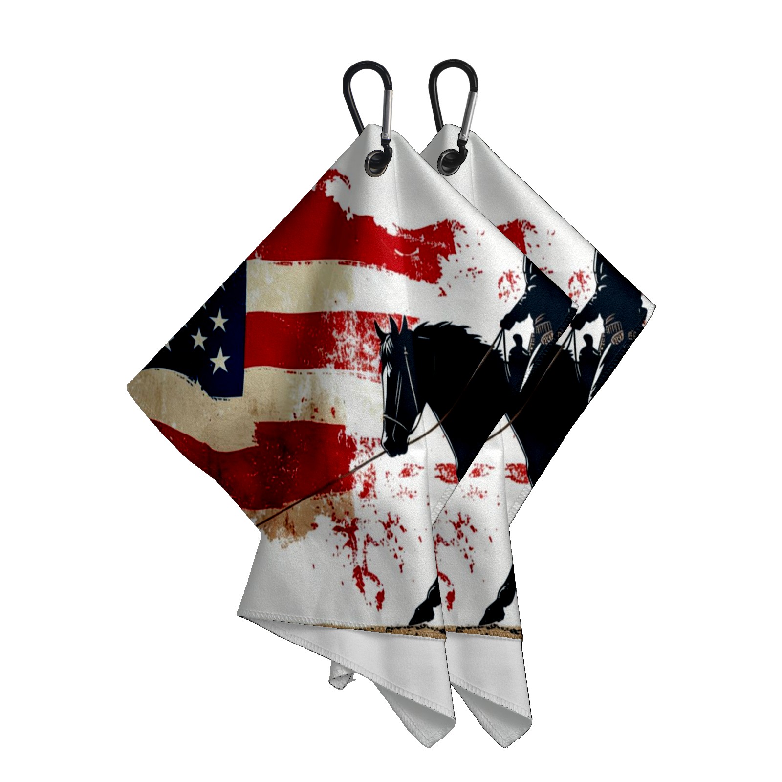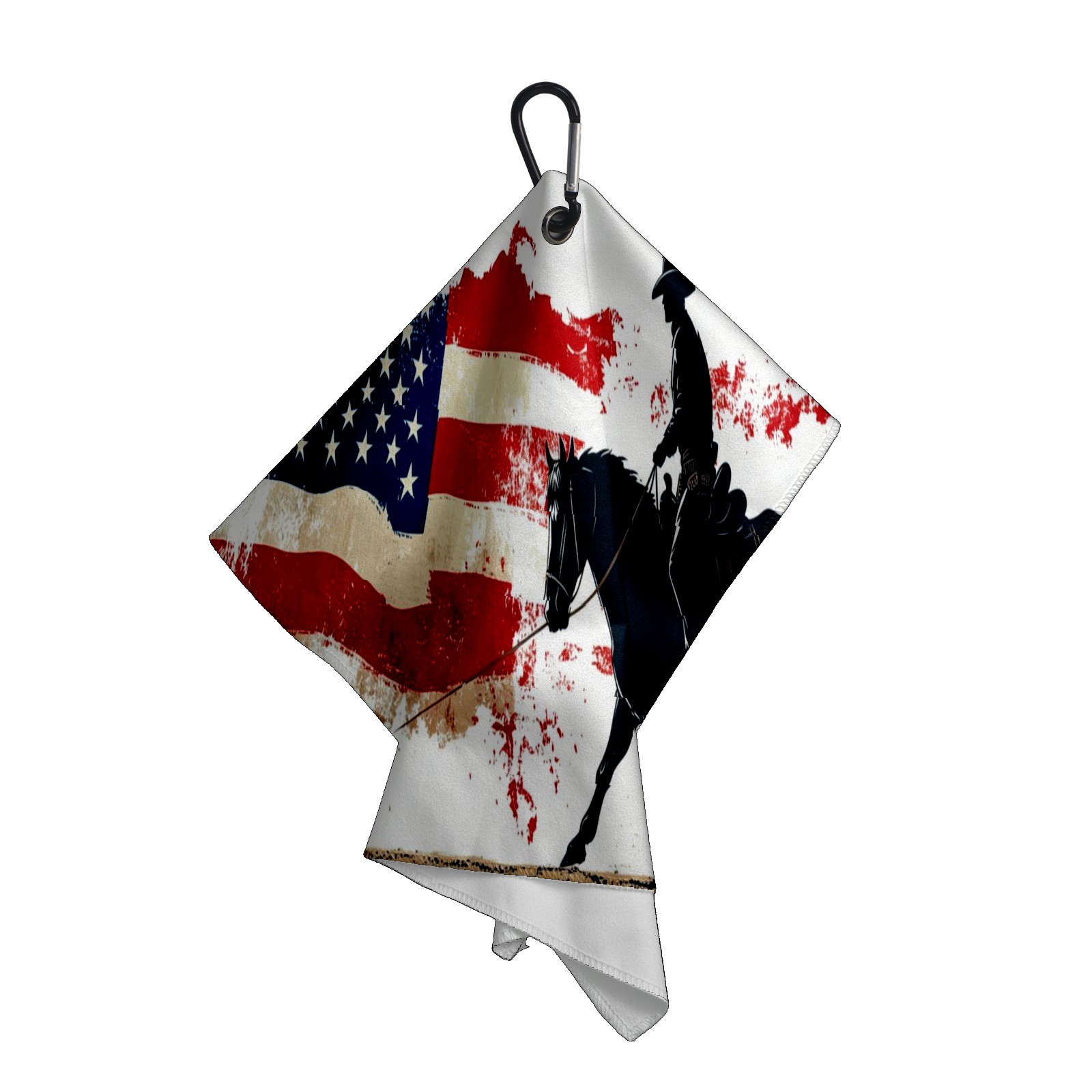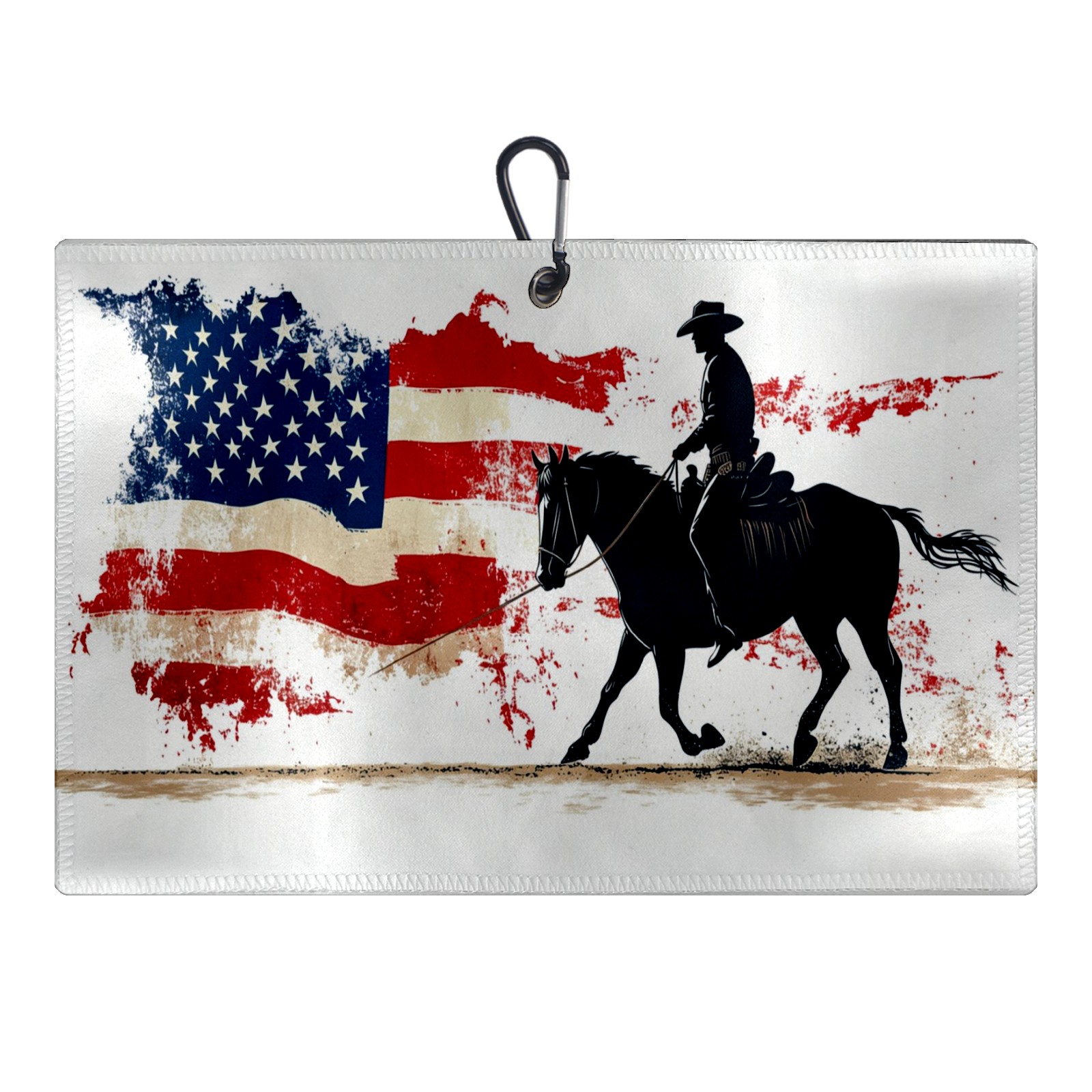 American Cowboy Silhouette Golf Towel 15.7inx23.6in Microfiber Waffle Pattern with Carabiner Clip, High Absorbency & Quick Dry, Golf Accessories for Bags