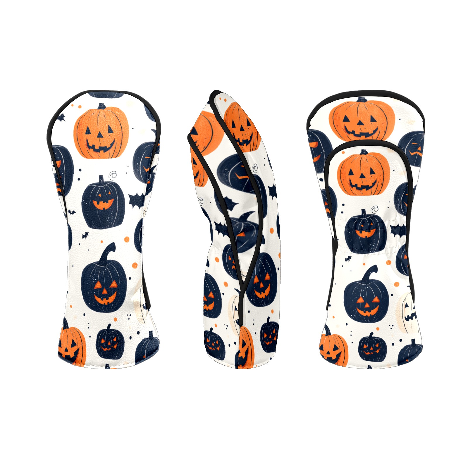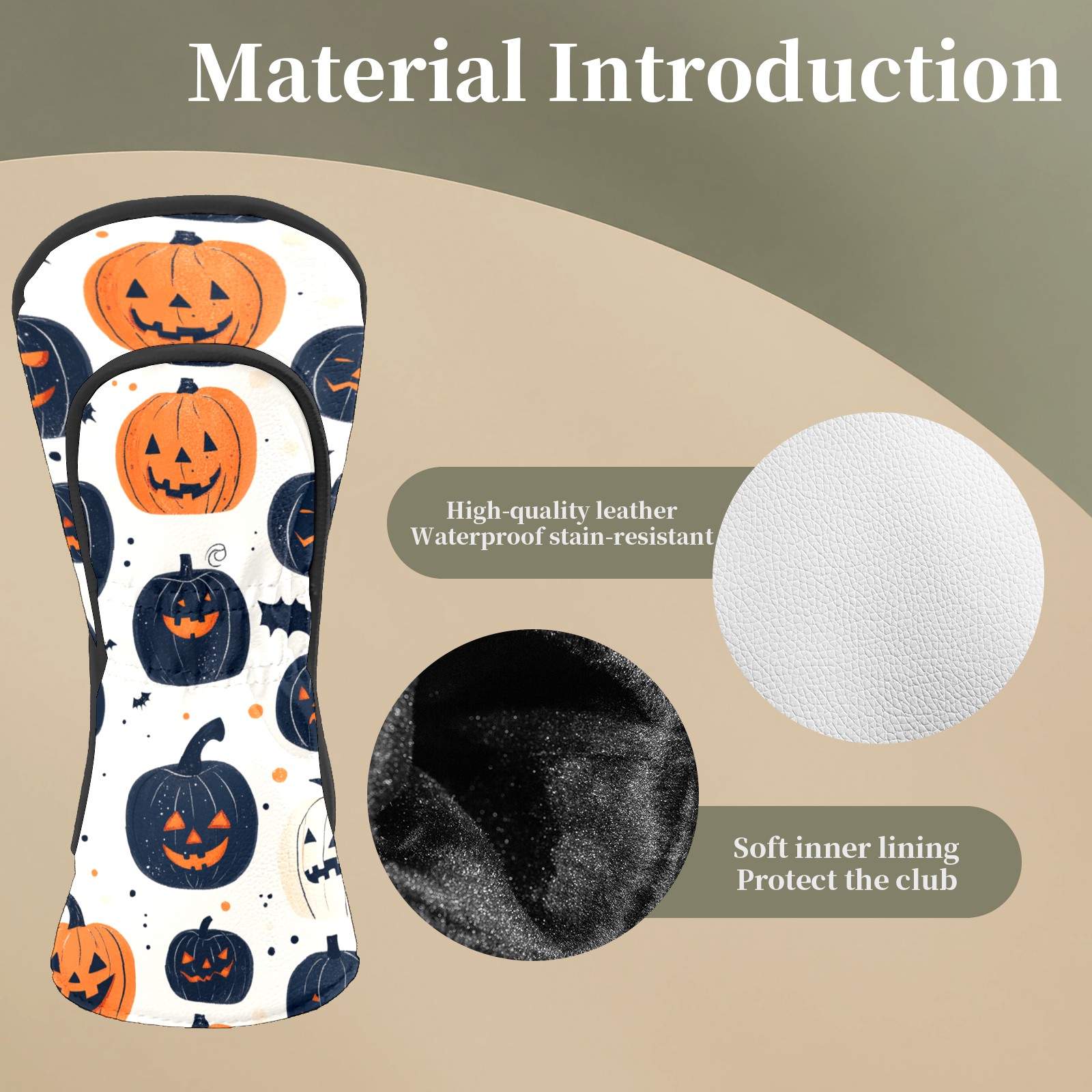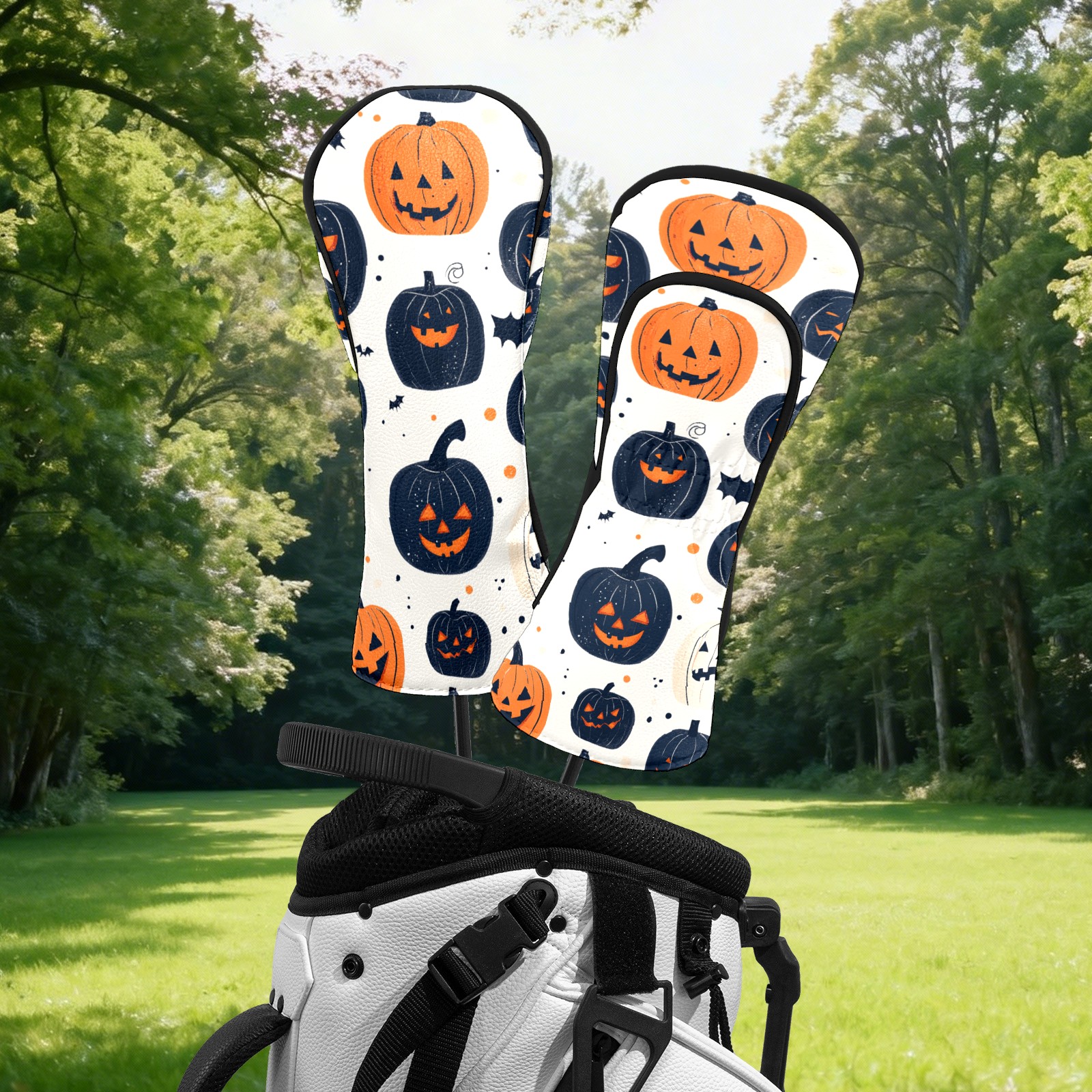 Golf Head Covers Fit Driver Headcover, Fairway Wood, and Hybrid Covers for Pumpkin Pattern Design, Waterproof PU Leather, Classic Golf Gift & Accessories for Golfers