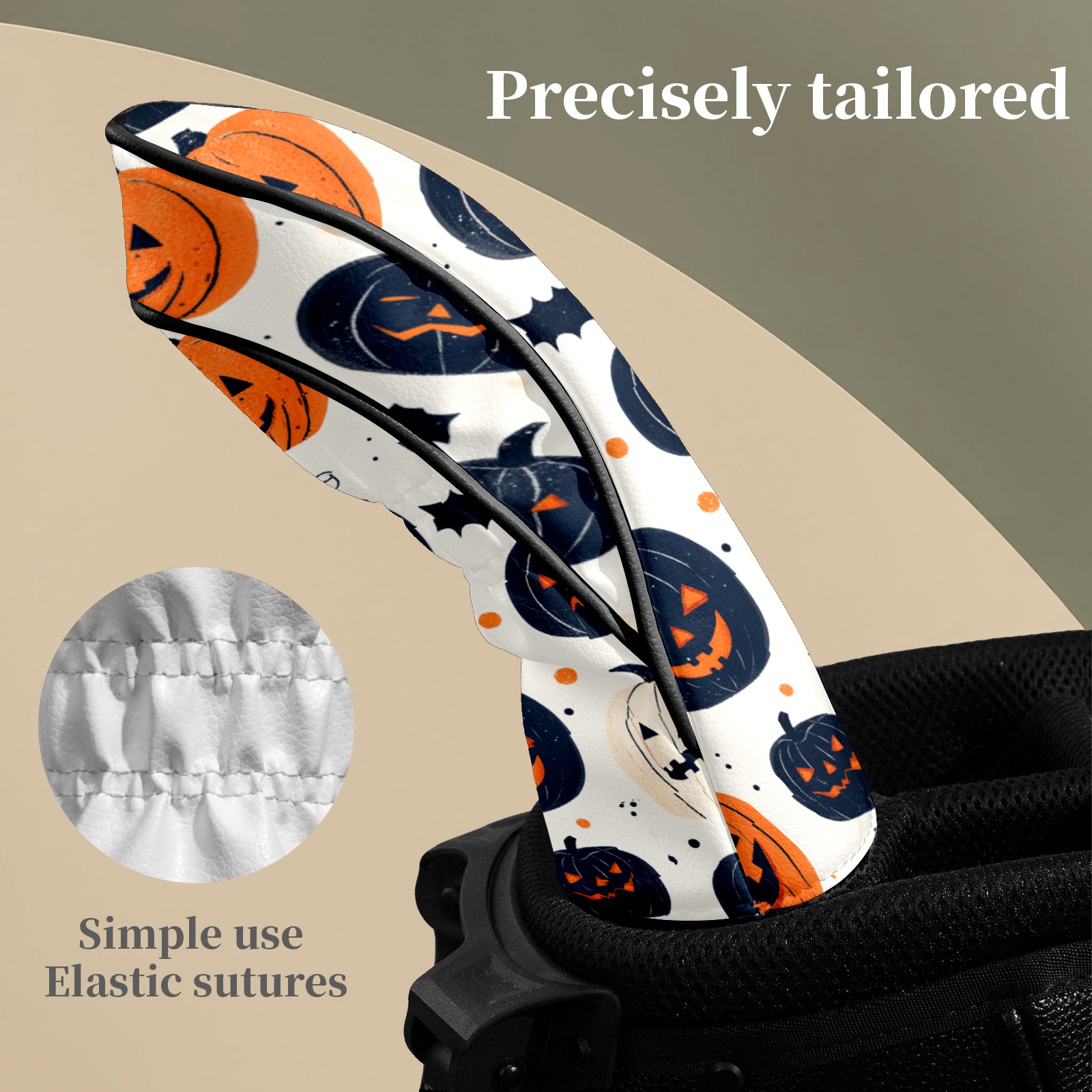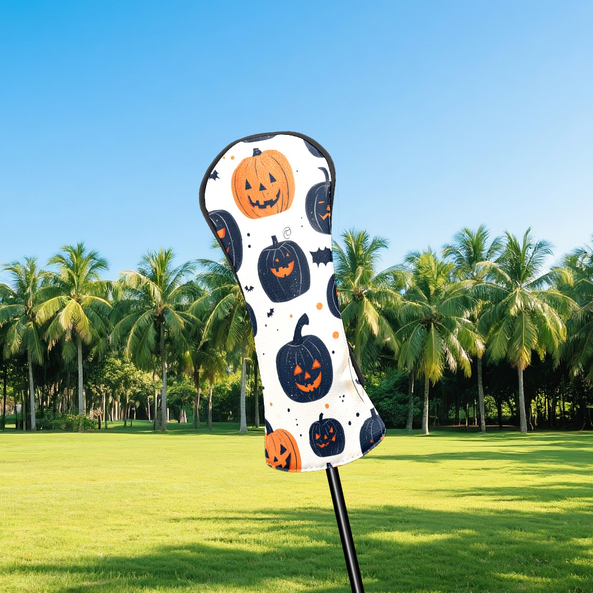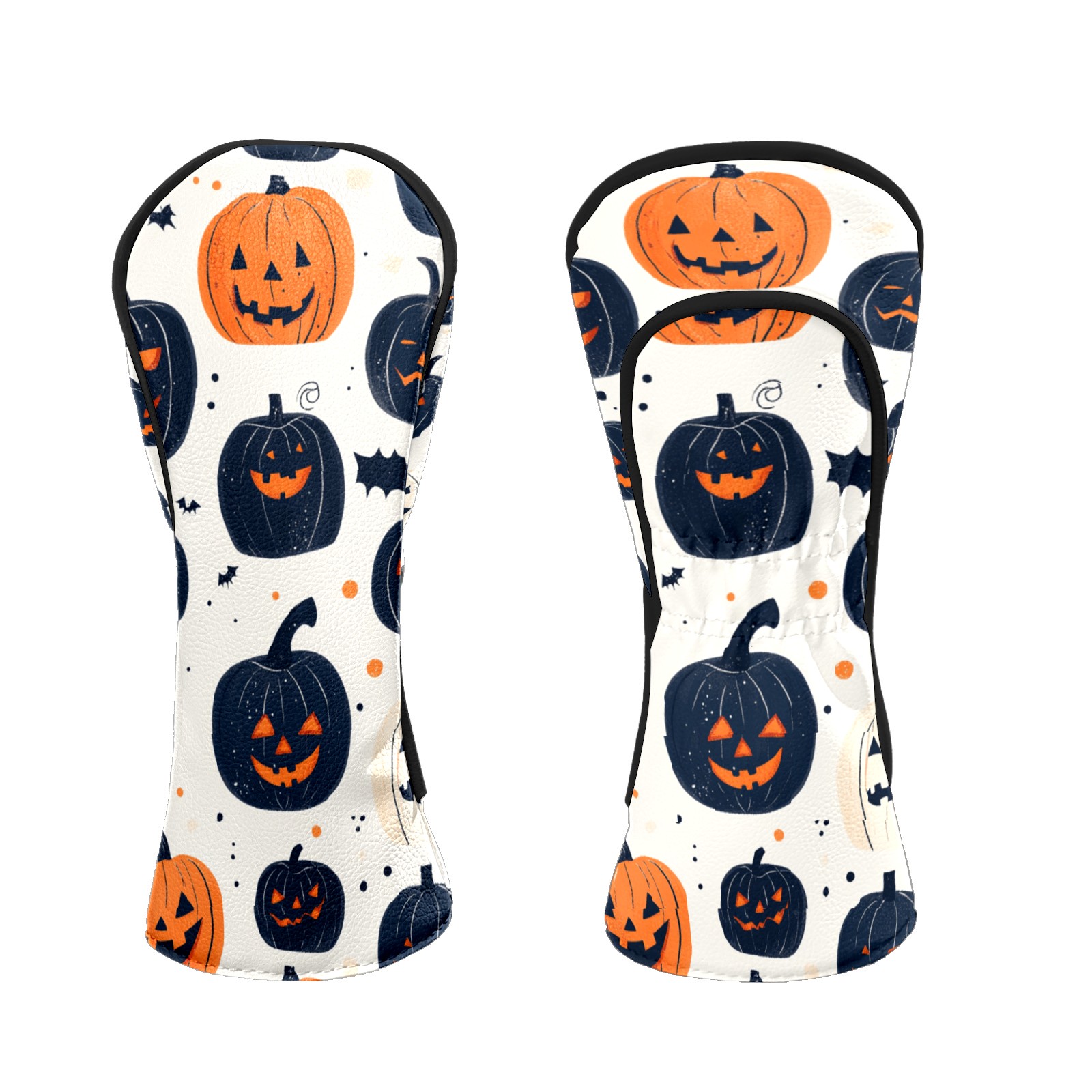 Golf Head Covers Fit Driver Headcover, Fairway Wood, and Hybrid Covers for Pumpkin Pattern Design, Waterproof PU Leather, Classic Golf Gift & Accessories for Golfers