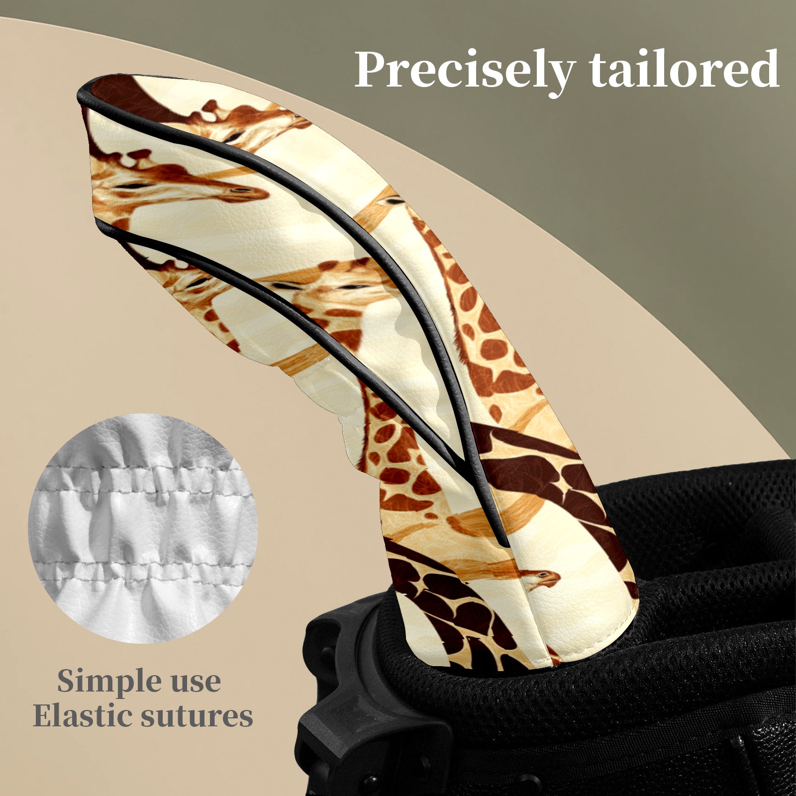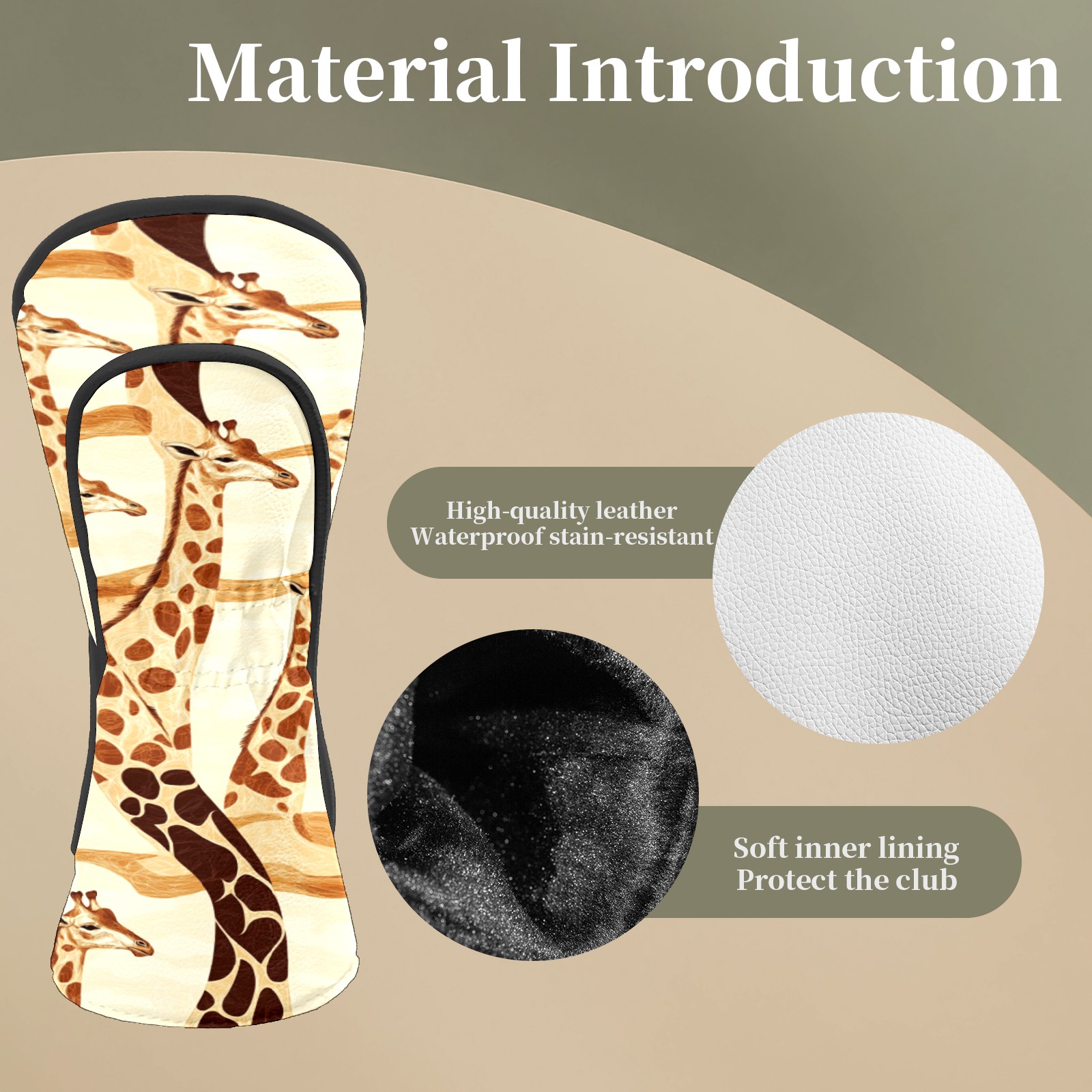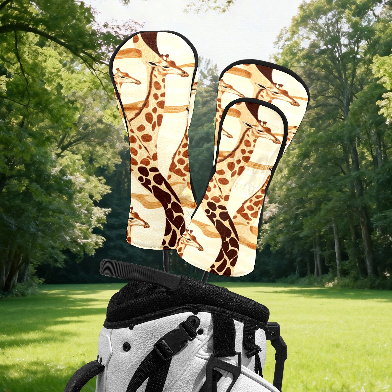 Golf Head Covers Fit Driver Headcover, Fairway Wood, and Hybrid Covers for Giraffe Pattern Design, Waterproof PU Leather, Classic Golf Gift & Accessories for Golfers