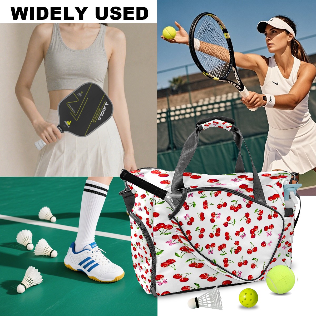 Counullo Cherry White Multi-Functional Sports Duffle Bag, Large Gym Bag with separate ventilated shoe compartment & Front Racket Sleeve | Waterproof, Lightweight Travel Bag for Women & Men, Tennis, Pickleball, Workout