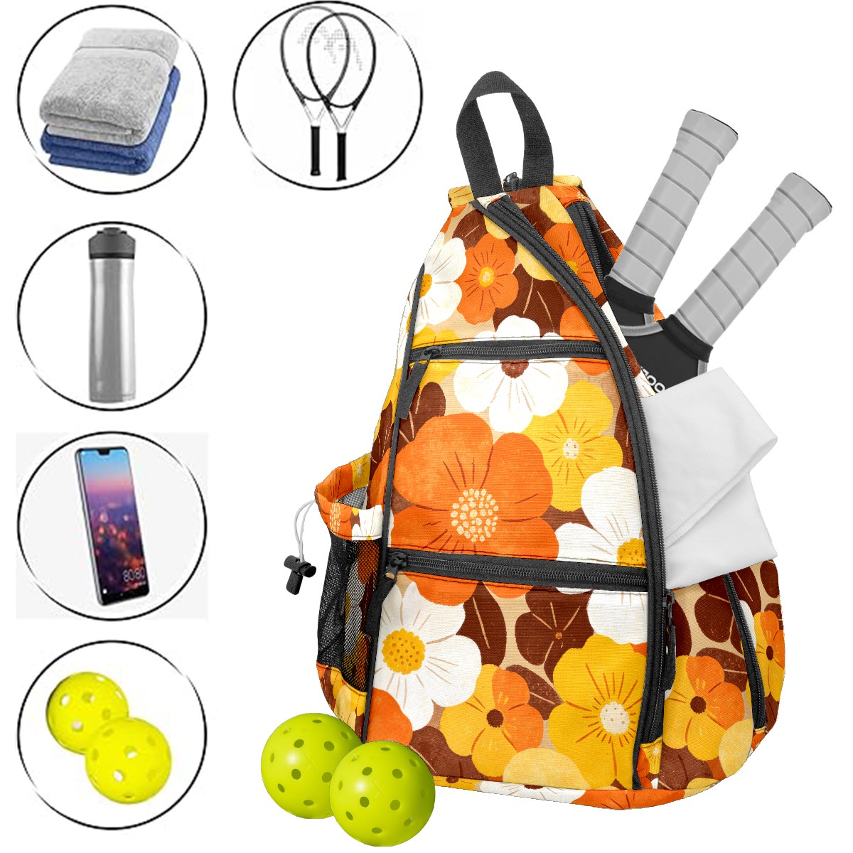 <p>ADJUSTABLE & VERSATILE</p> <p>Convertible Shoulder Strap: Wear it on either shoulder and adjust the length for maximum comfort. Perfect for left- or right-handed players!</p> <p>SPACIOUS & ORGANIZED</p> <p>5 Multi-Functional Pockets + Water Bottle Holder</p> <p>Fits 2-4 pickleball paddles + balls (or 2+ table tennis sets)</p> <p>Hidden anti-theft pocket for cash, keys, or cards – keep valuables secure</p> <p>Dimensions: 14"W × 6"D × 18"H – Compact yet roomy.</p>