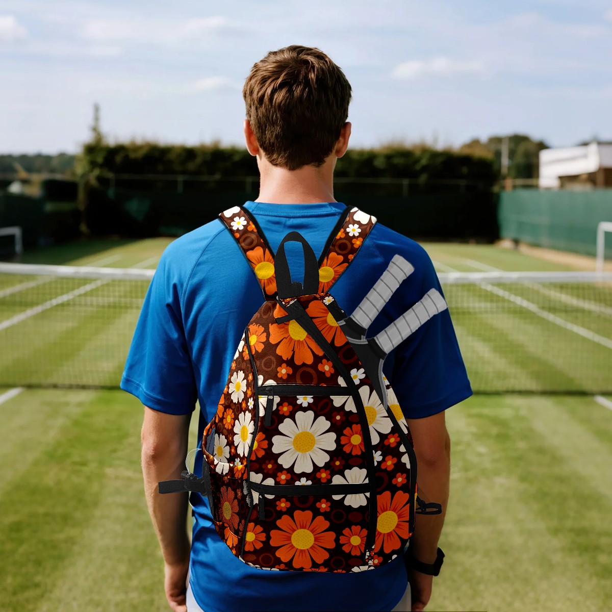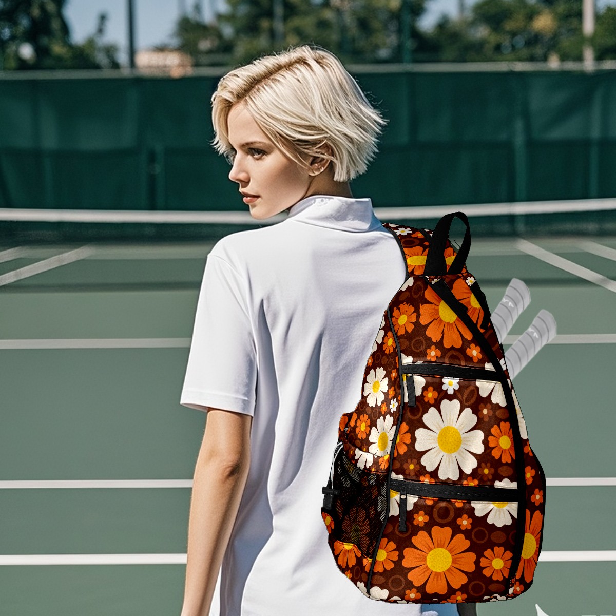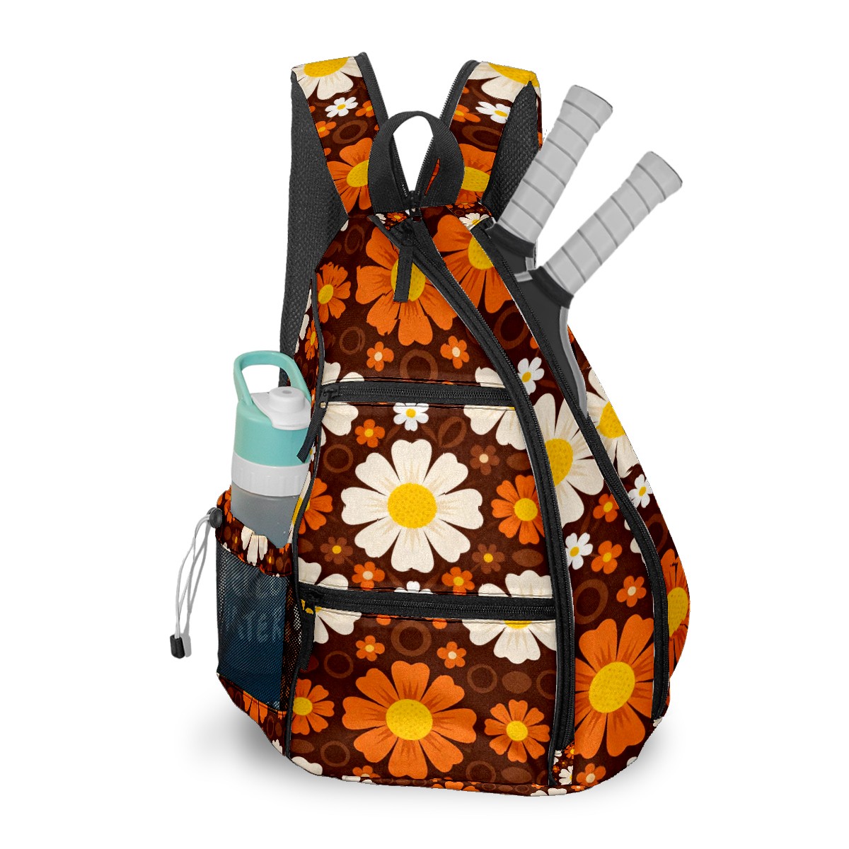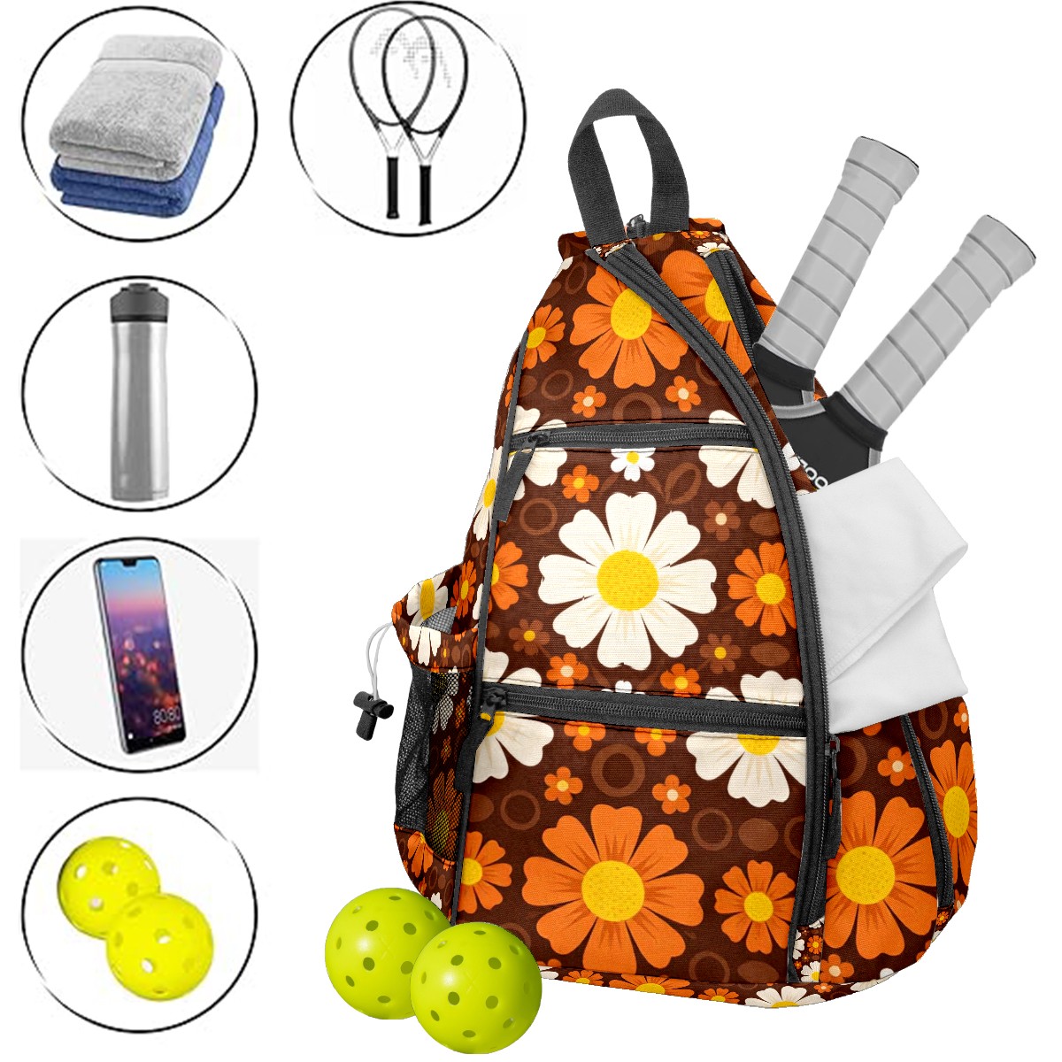 Pickleball Bag Vintage Daisy Flowers Pickle Ball Backpack for Women Men Premium Lightweight Crossbody Sling Bag Sports Backpack for Pickleball Paddle Tennis
