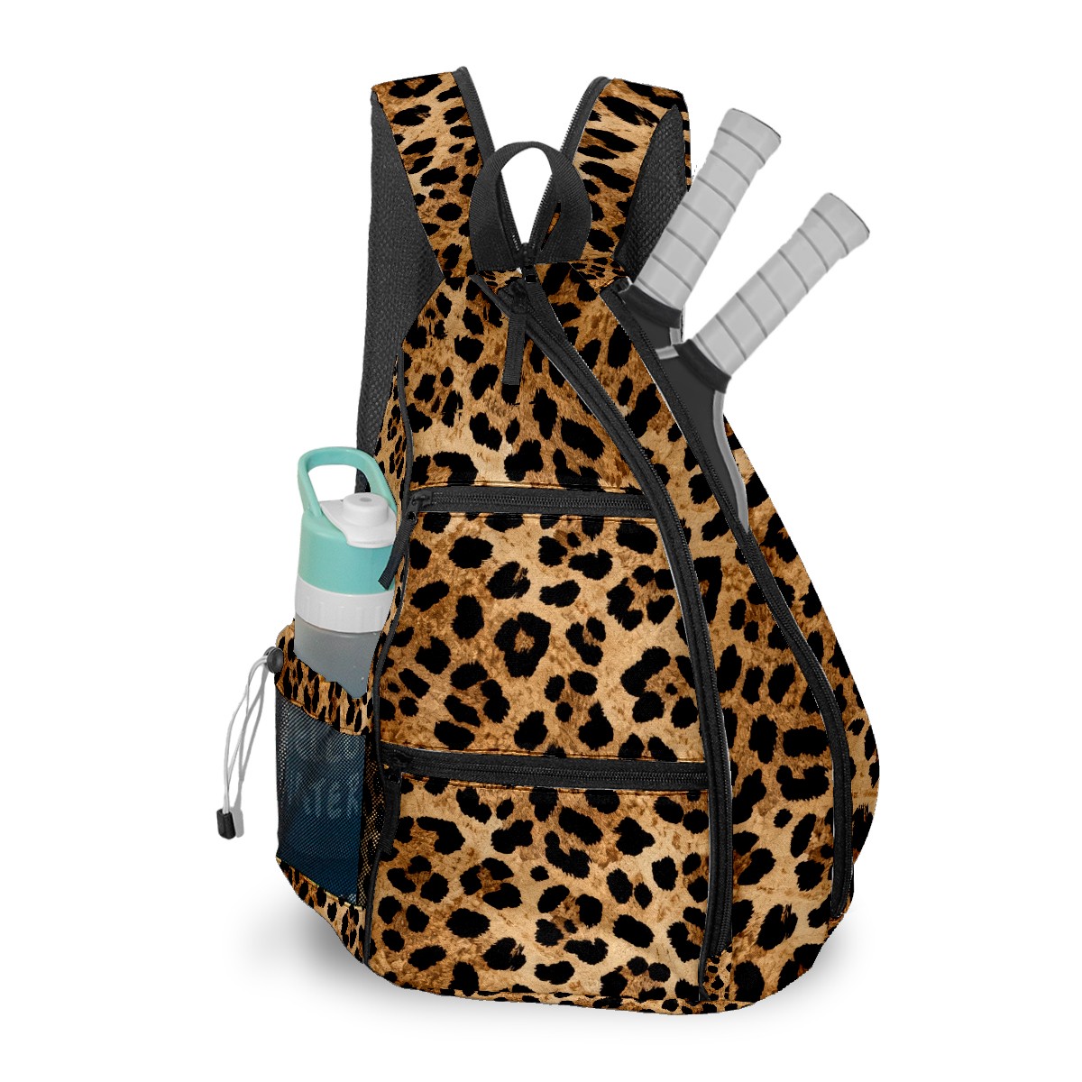Pickleball Bag Brown Leopard Print Animal Pickle Ball Backpack for Women Men Premium Lightweight Crossbody Sling Bag Sports Backpack for Pickleball Paddle Tennis