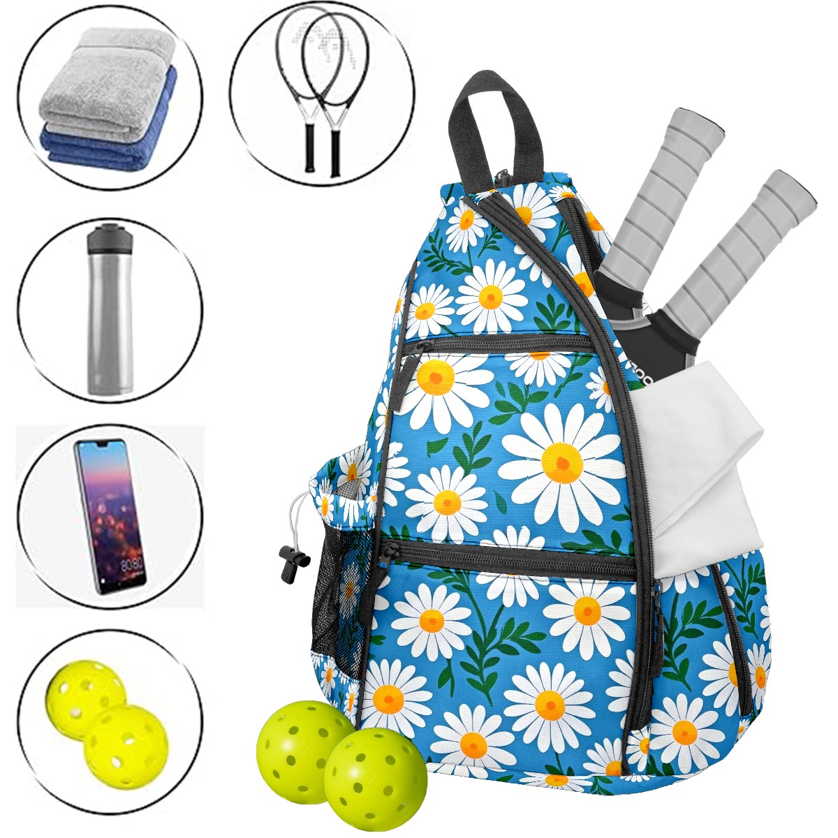 Pickleball Bag 1Daisy Blue (1) Pickle Ball Backpack for Women Men Premium Lightweight Crossbody Sling Bag Sports Backpack for Pickleball Paddle Tennis