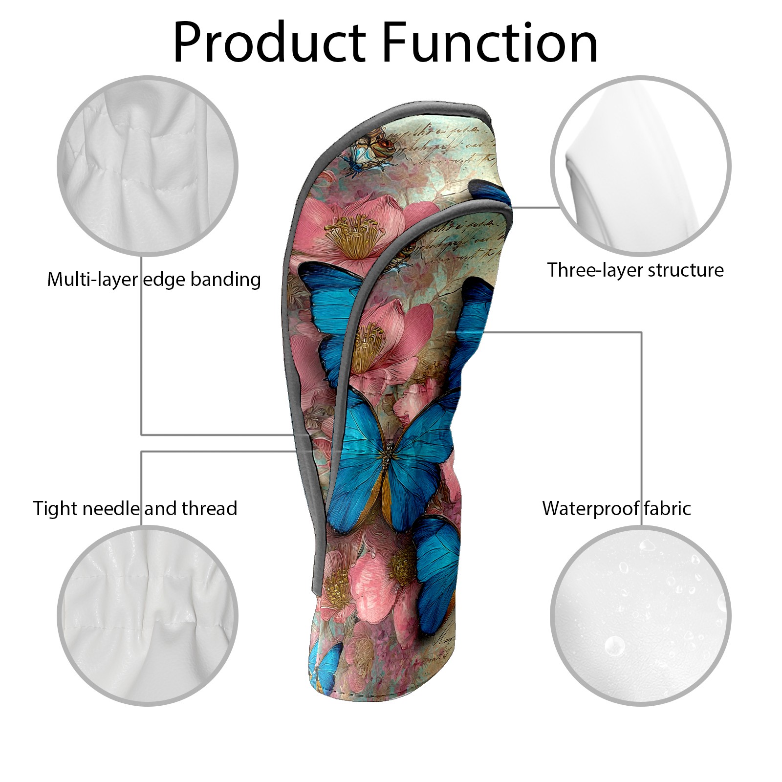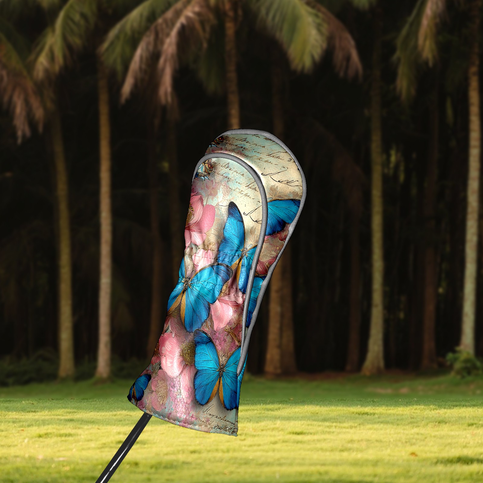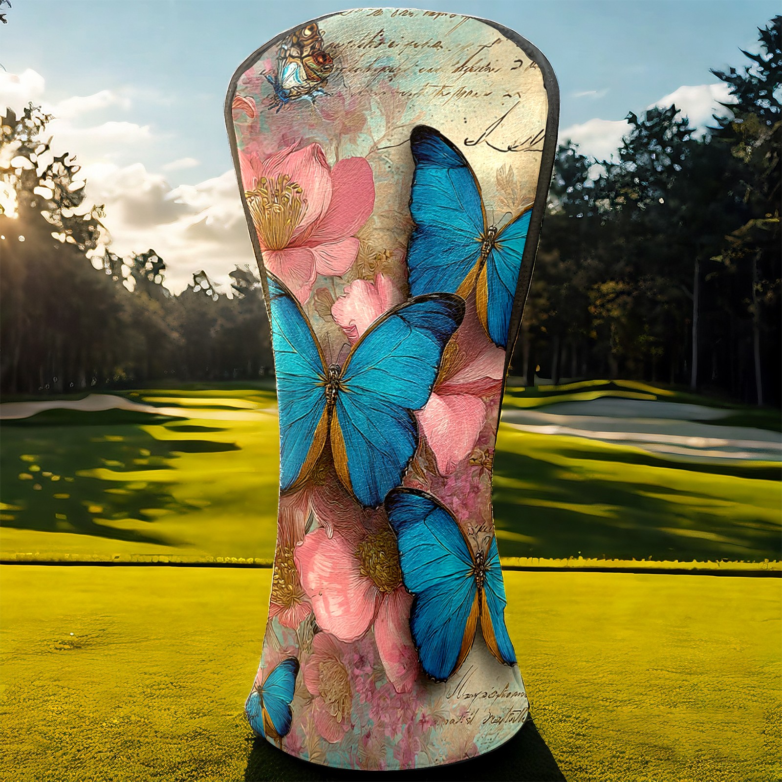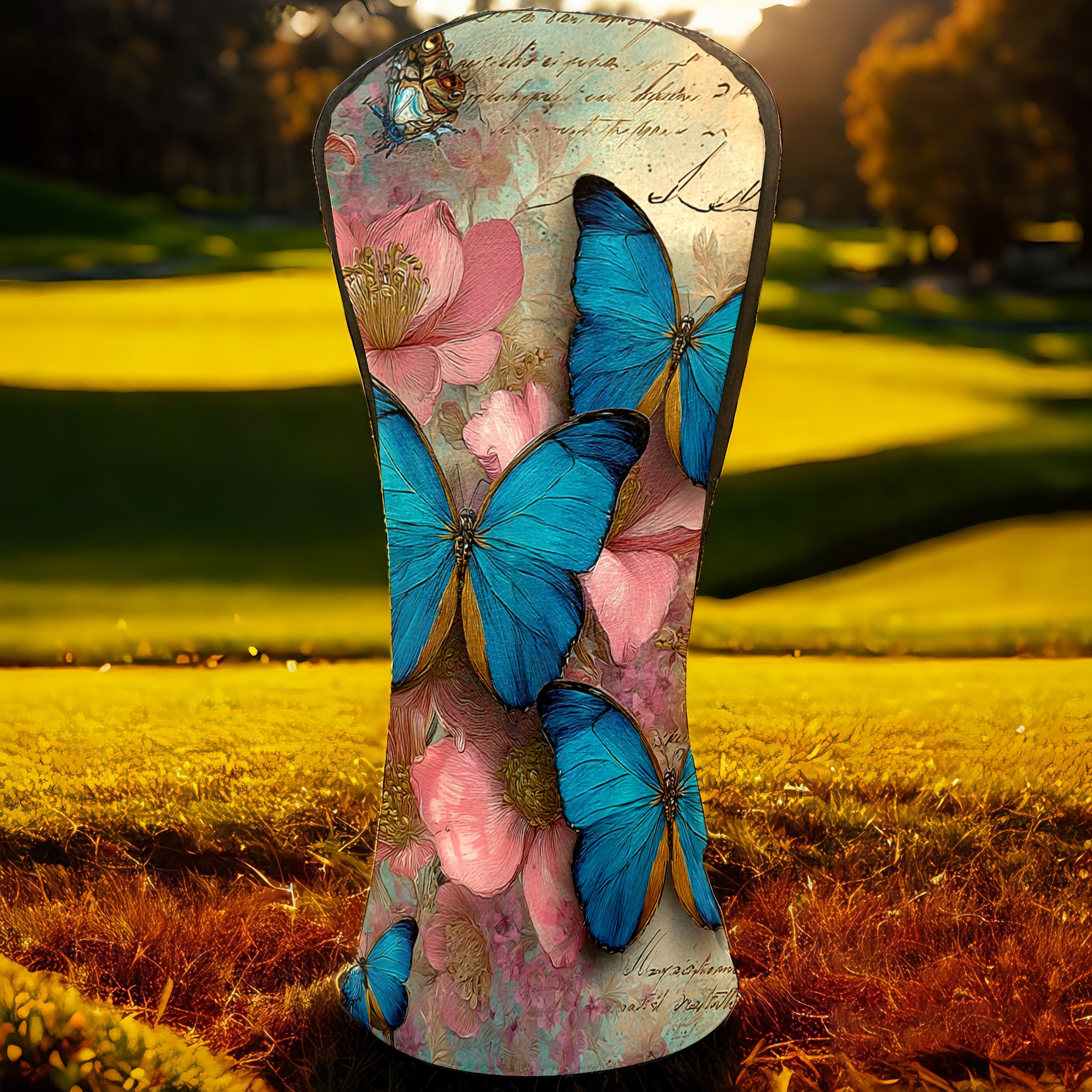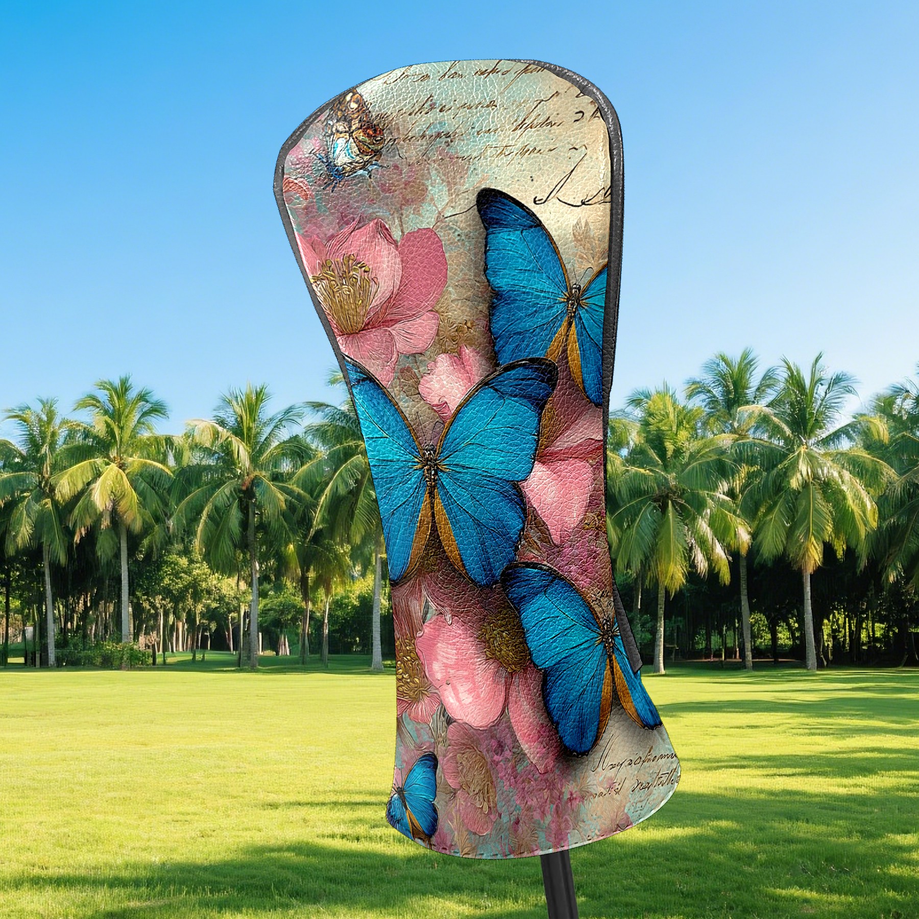 Golf Head Covers Leather Driver Head Cover, Premium Golf Club Covers with Anti-Scratch Lining for Women Men 1/3/5 Wood Cover for Golf Clubs (Butterfly Vintage)