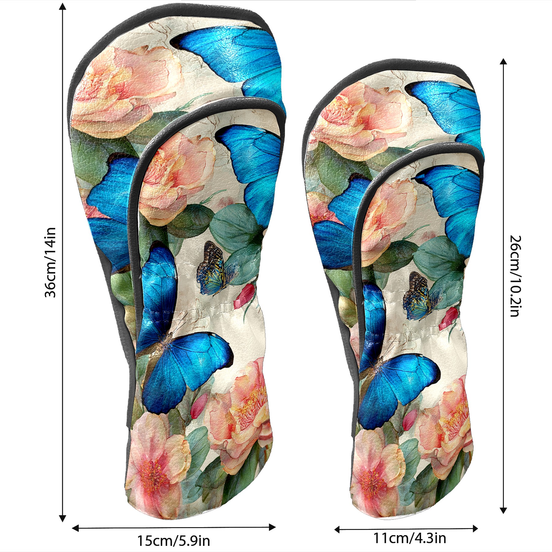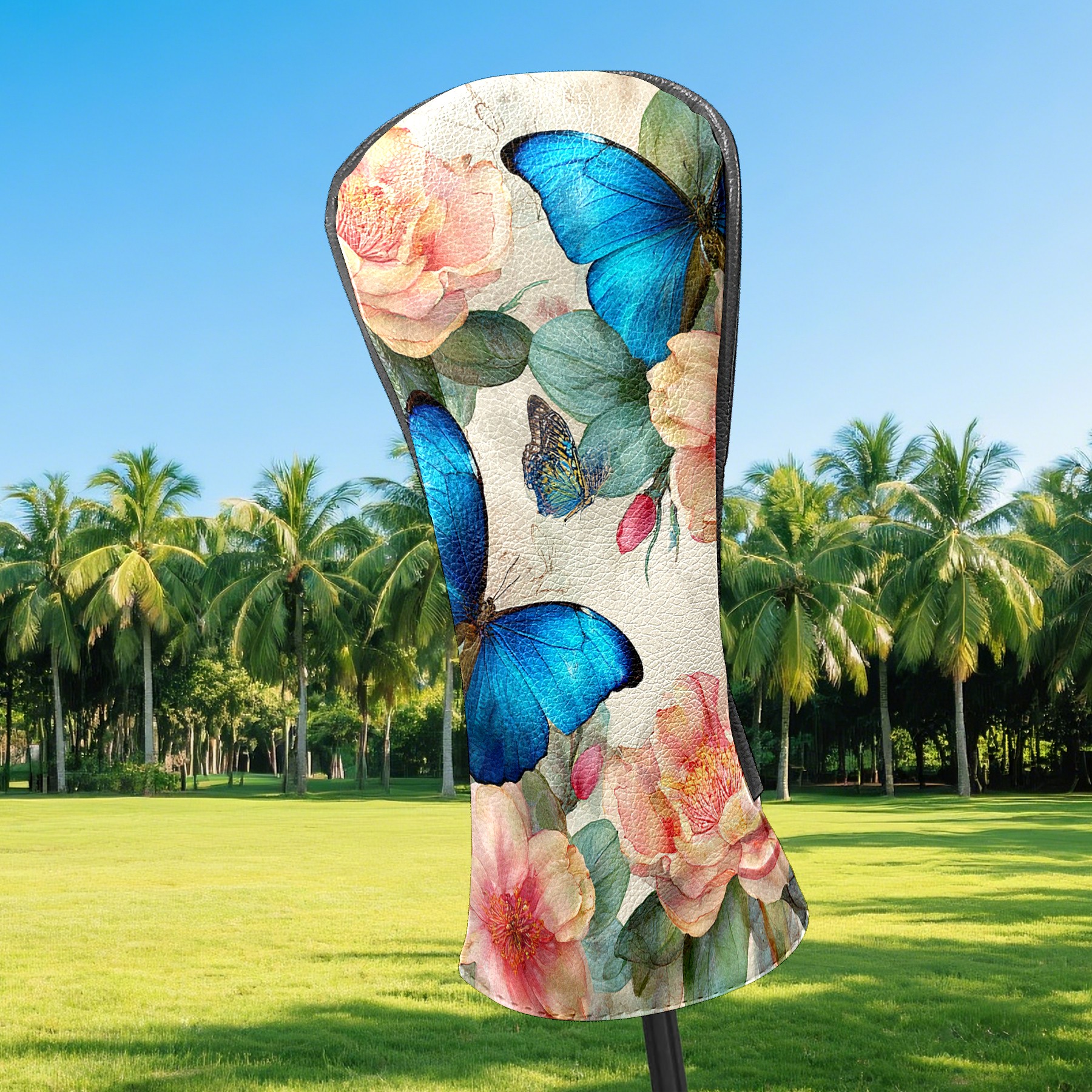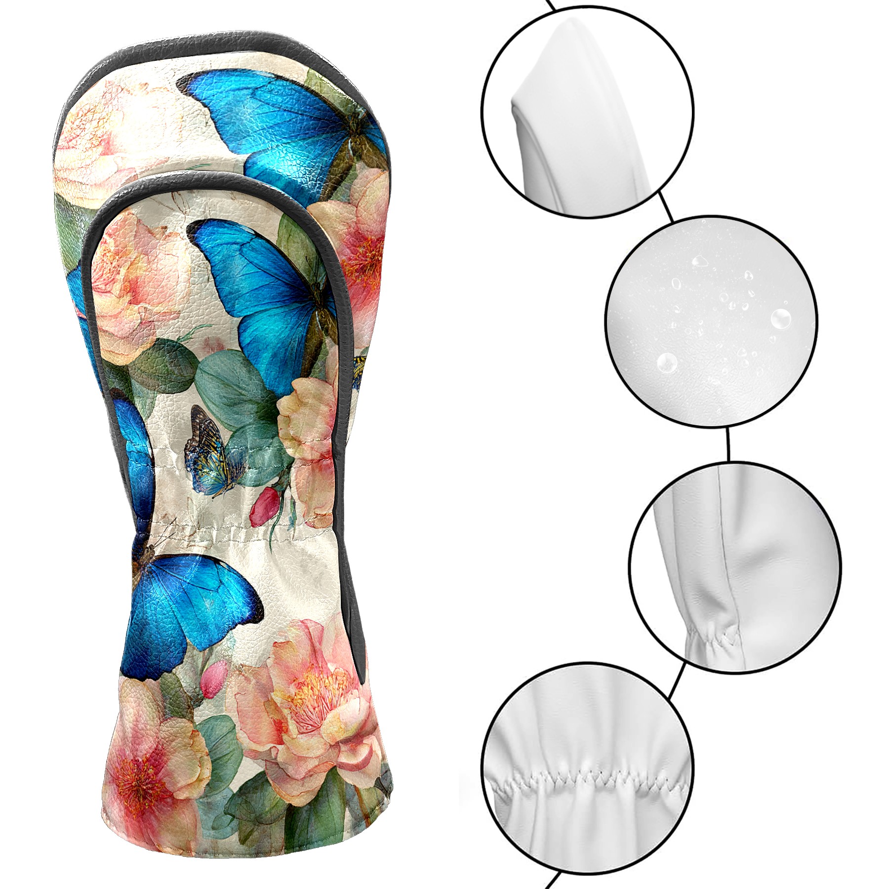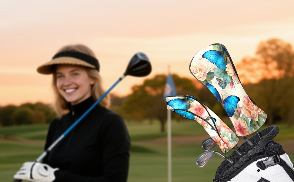 Golf Head Covers Leather Driver Head Cover, Premium Golf Club Covers with Anti-Scratch Lining for Women Men 1/3/5 Wood Cover for Golf Clubs (Butterfly Flowers)