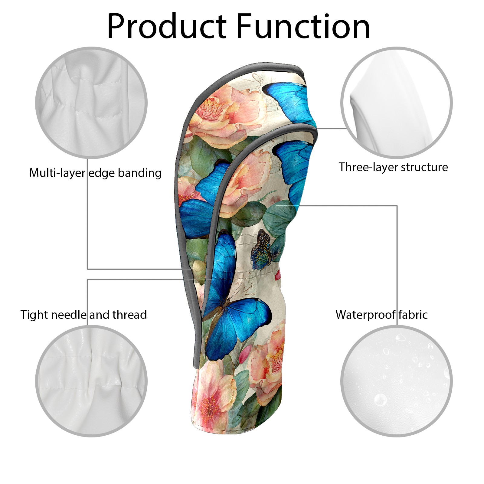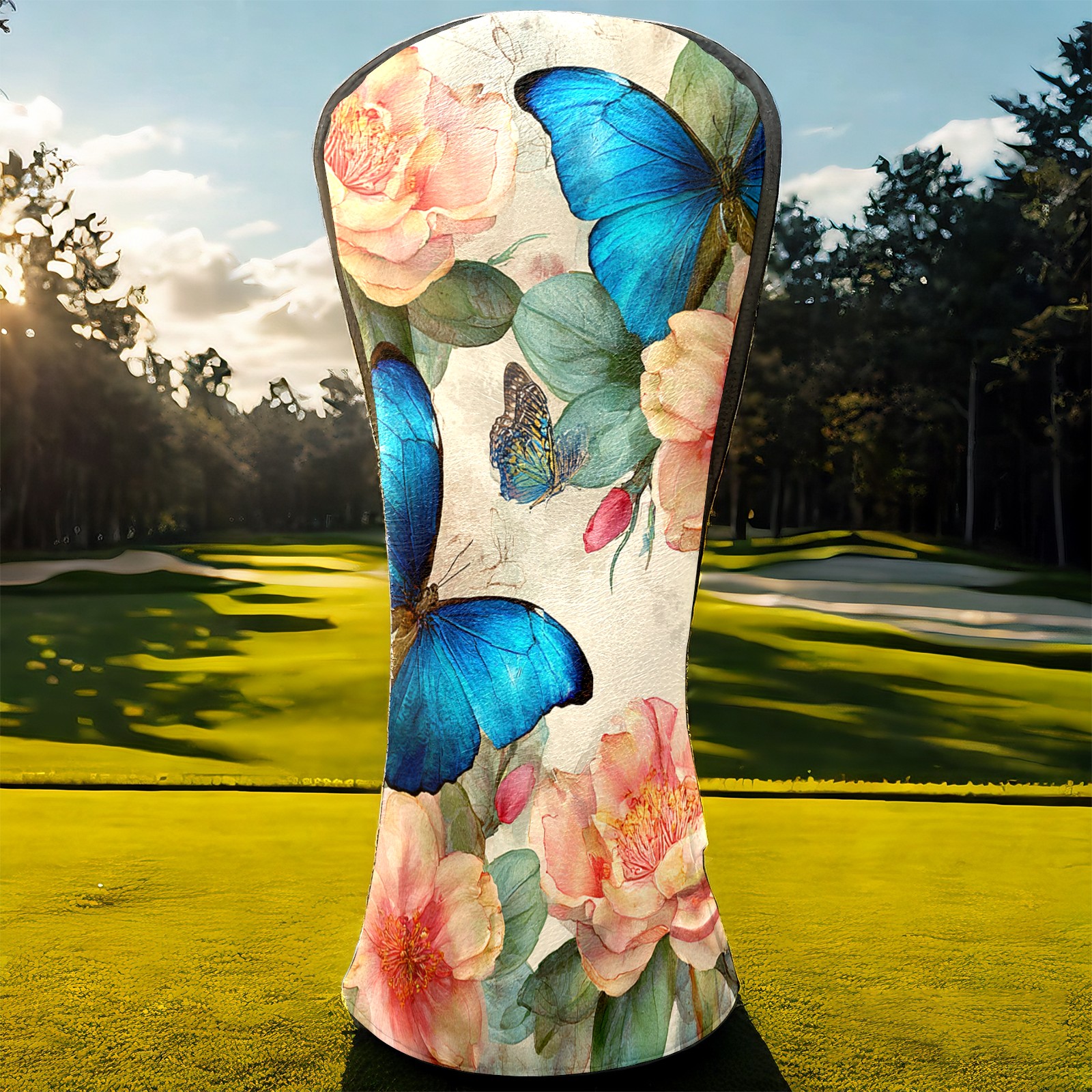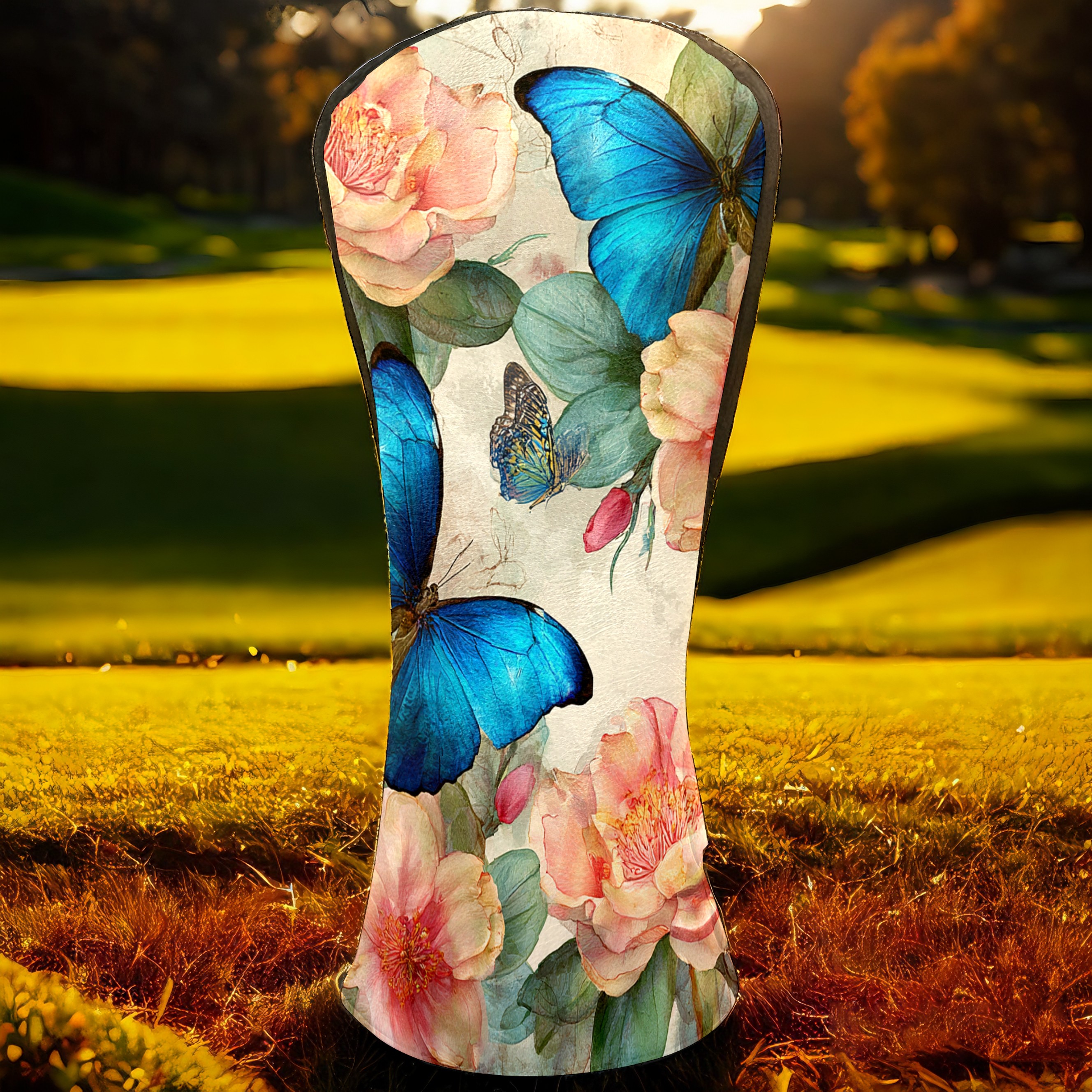 Golf Head Covers Leather Driver Head Cover, Premium Golf Club Covers with Anti-Scratch Lining for Women Men 1/3/5 Wood Cover for Golf Clubs (Butterfly Flowers)