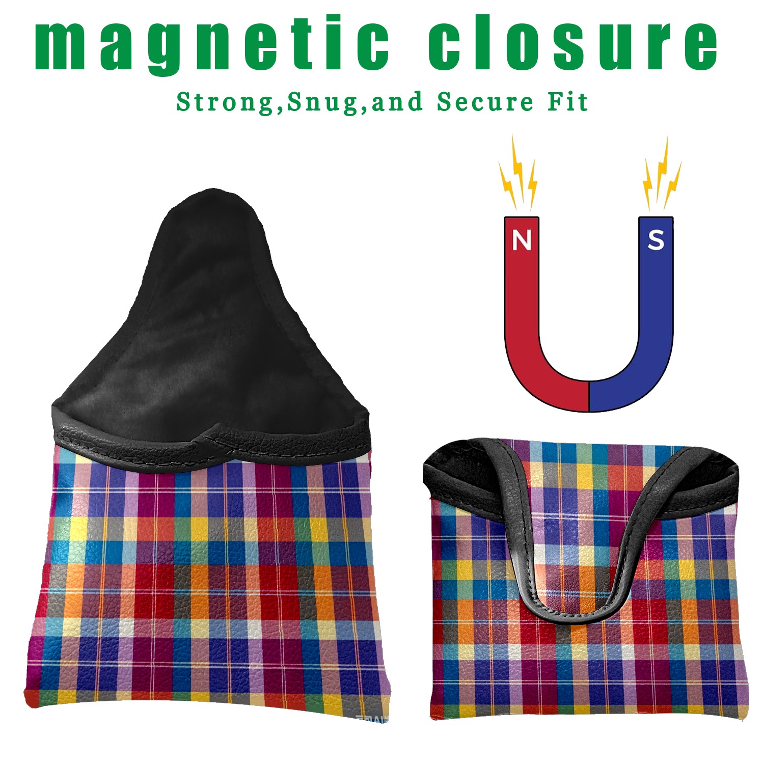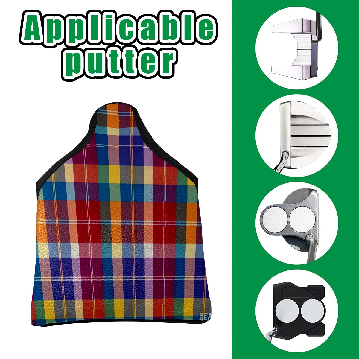Mallet Putter Cover,Golf Club Head Cover, PU Leather Iron Head Covers Set Gift for Travel Cases Protector Fit Most, Easily Slips on and Secures Soft Plaid Purple